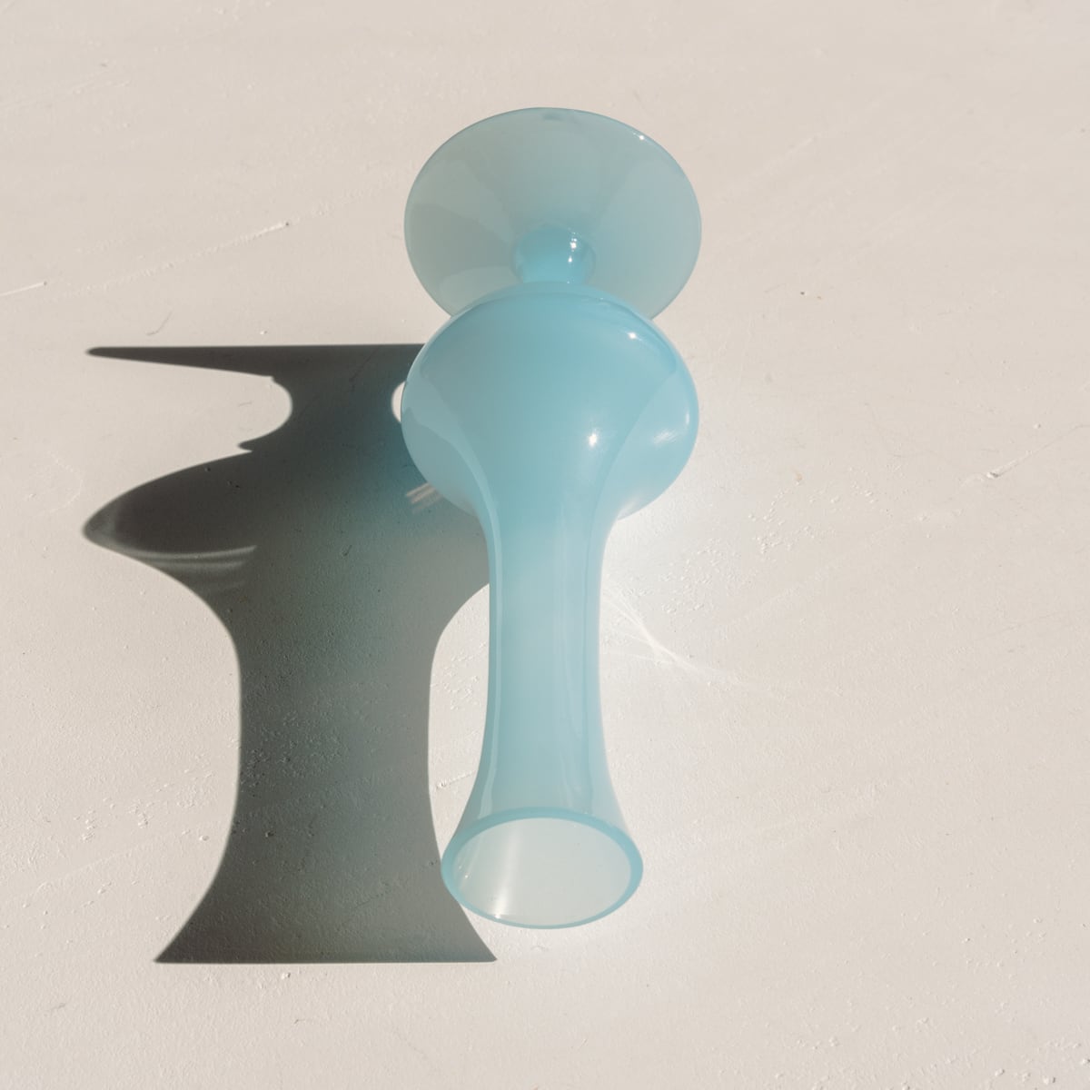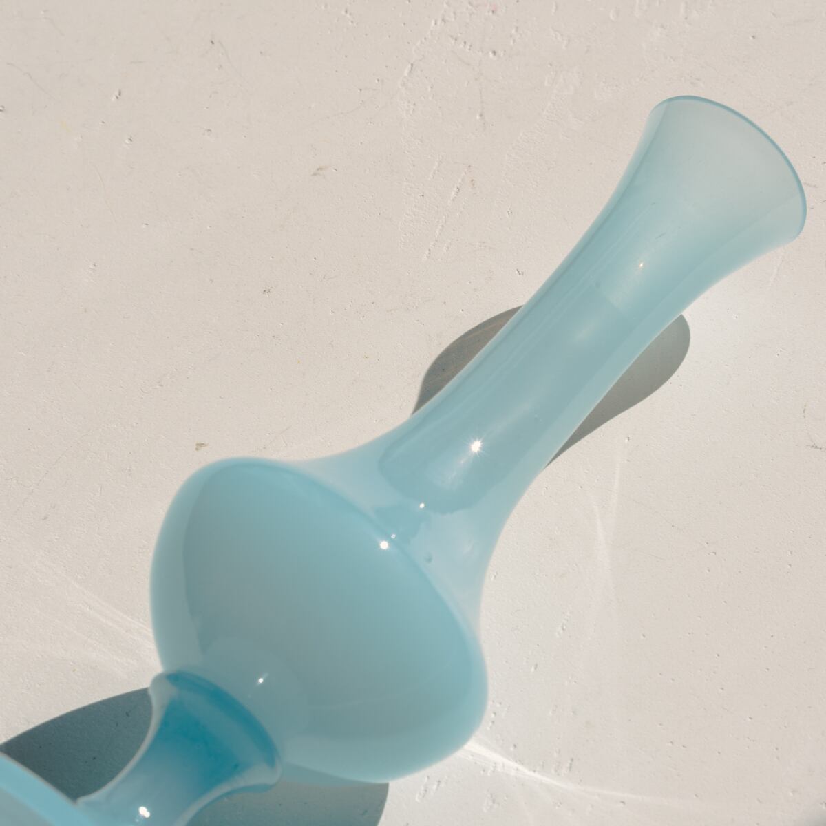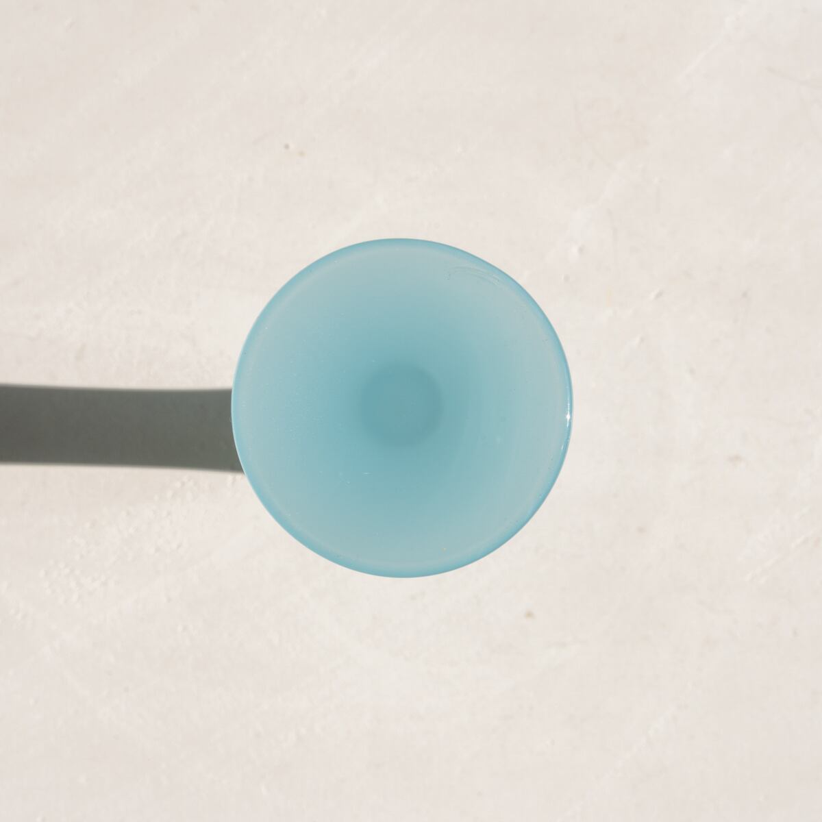 優しいパウダーブルーの色味で、とろみのあるミルキーな質感が美しい花器。