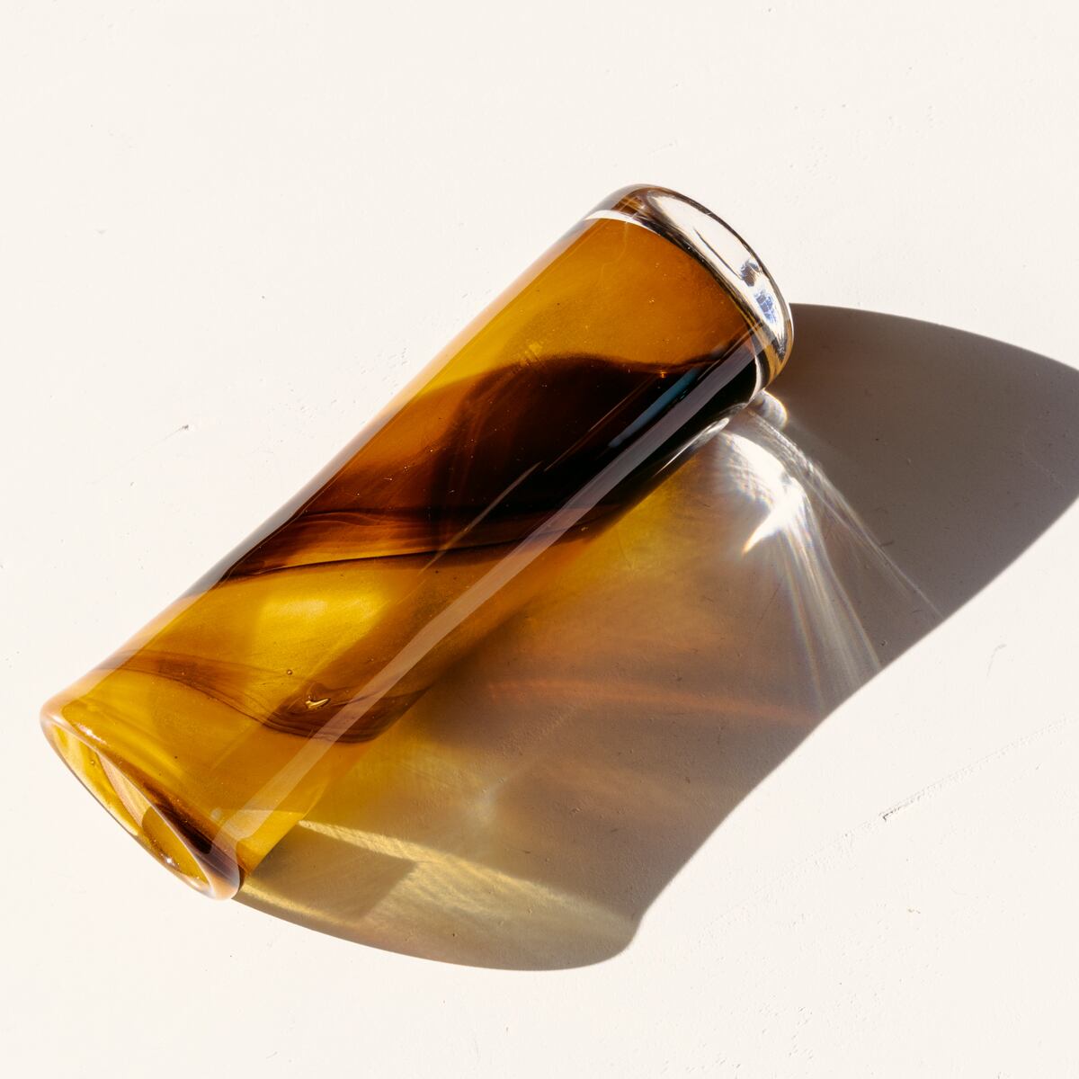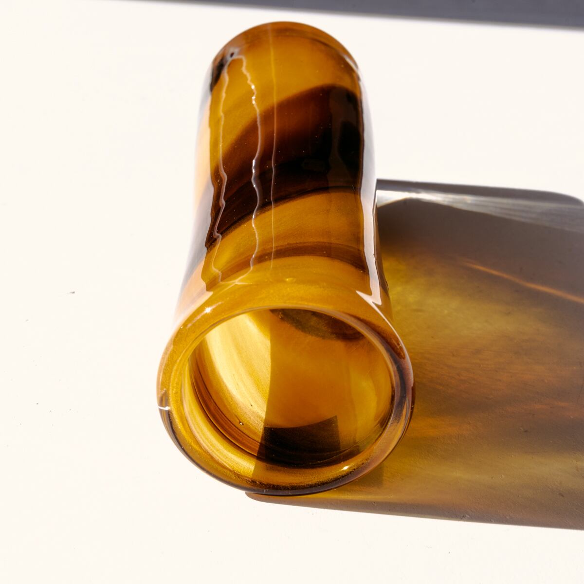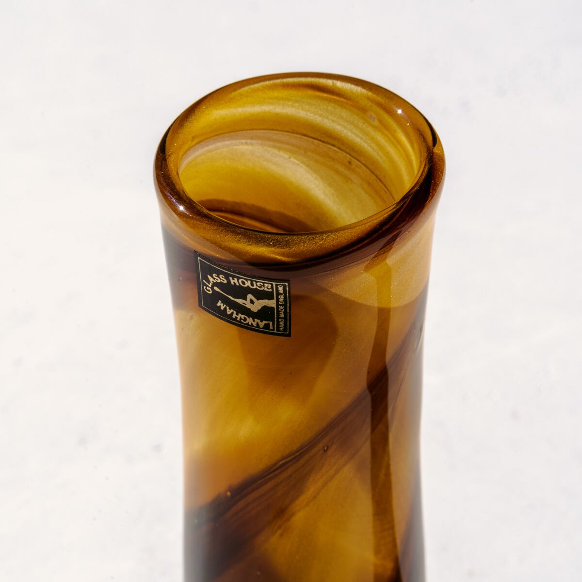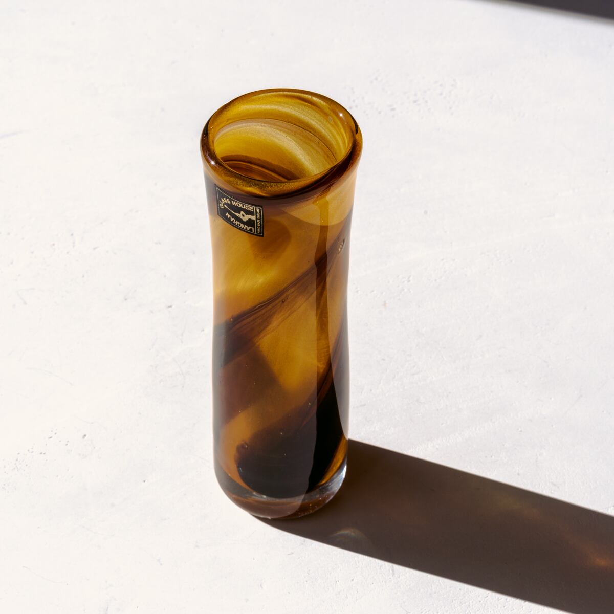 ベッコウ柄のブラウンの縞模様が美しい花器。