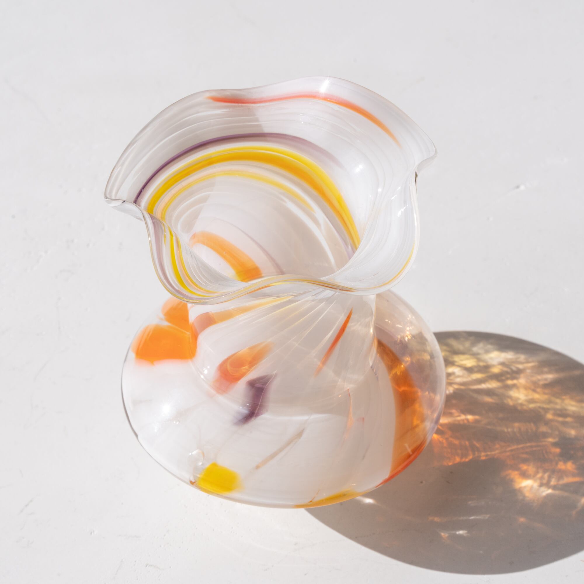 オレンジ、ホワイト、イエローが入り混じった渦巻き模様で彩られています。