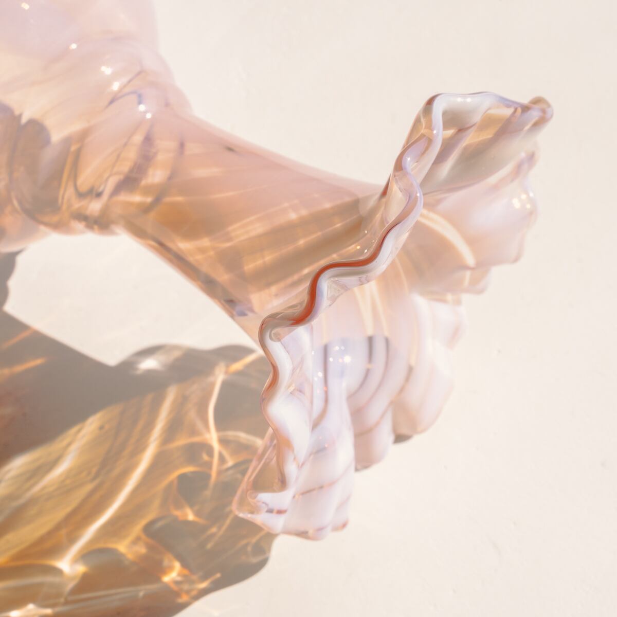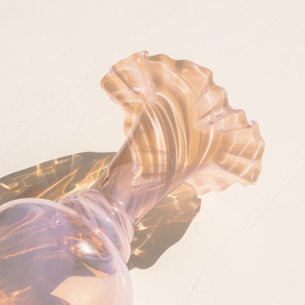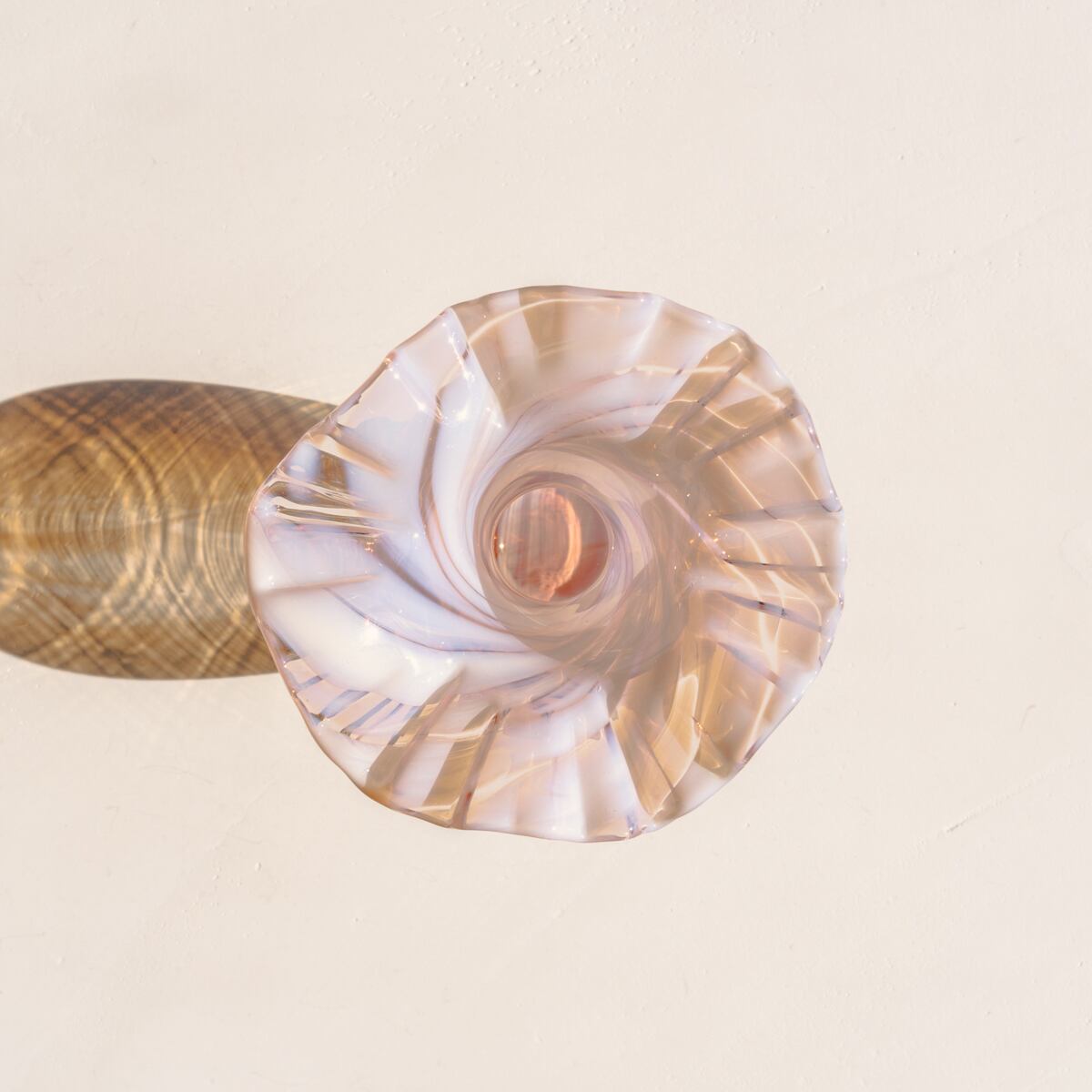 ピンクがかったクリアなガラスに、ホワイトのマーブル模様が広がる美しいデザイン。