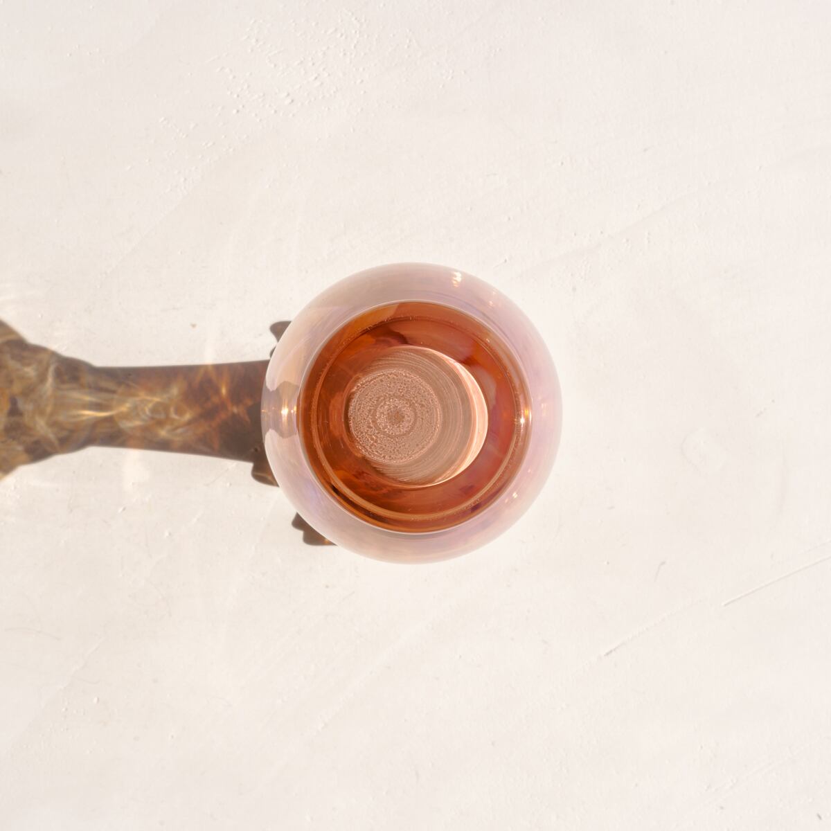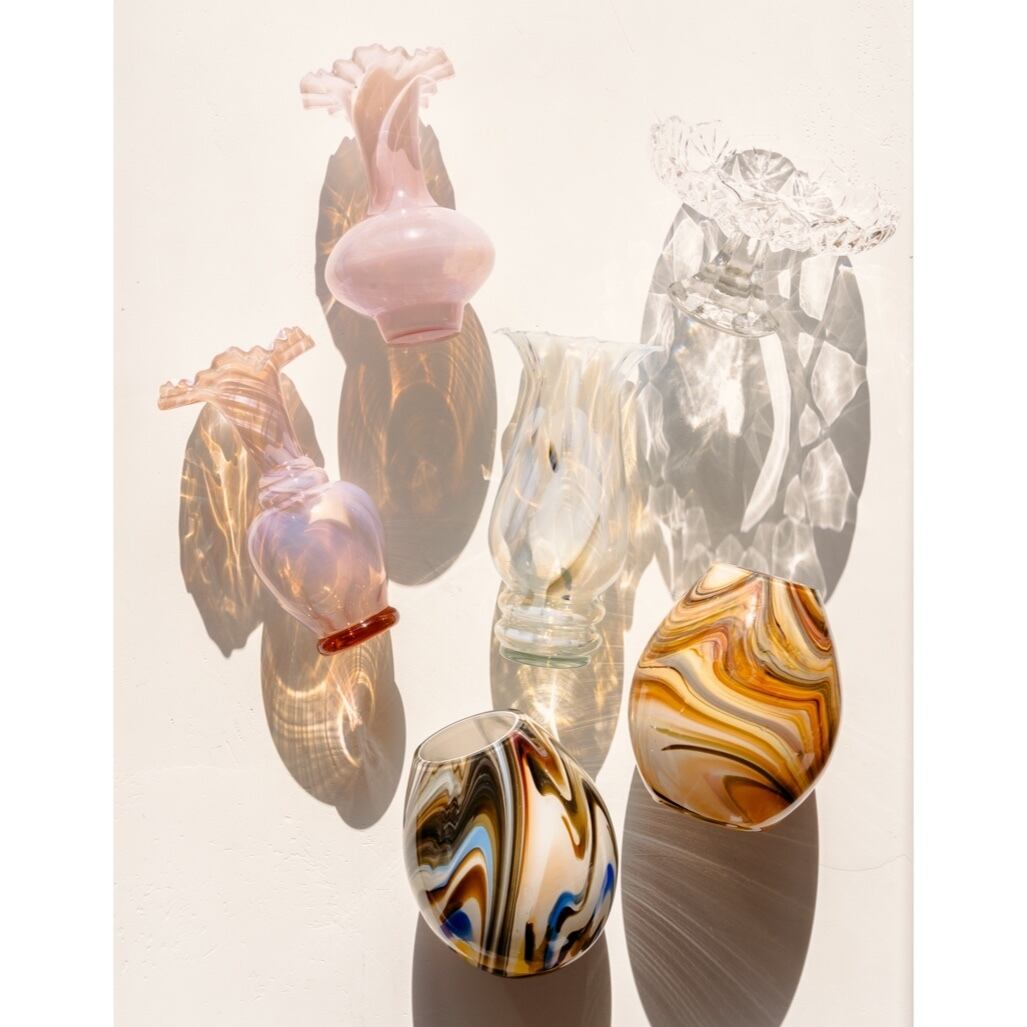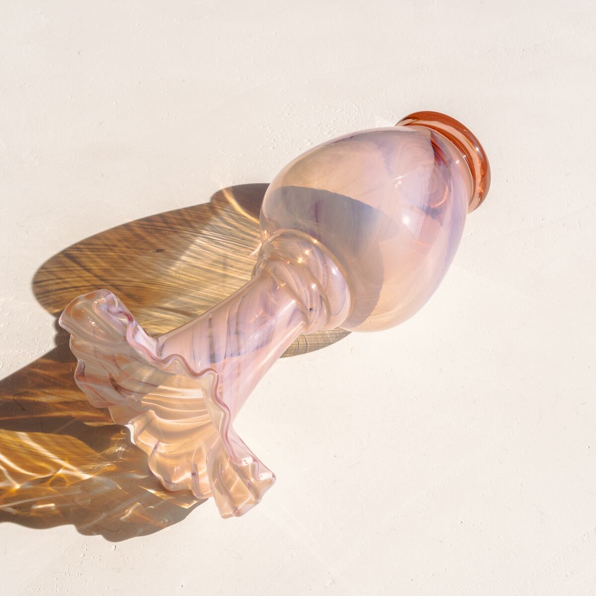 ピンクがかったクリアなガラスに、ホワイトのマーブル模様が広がる美しいデザイン。