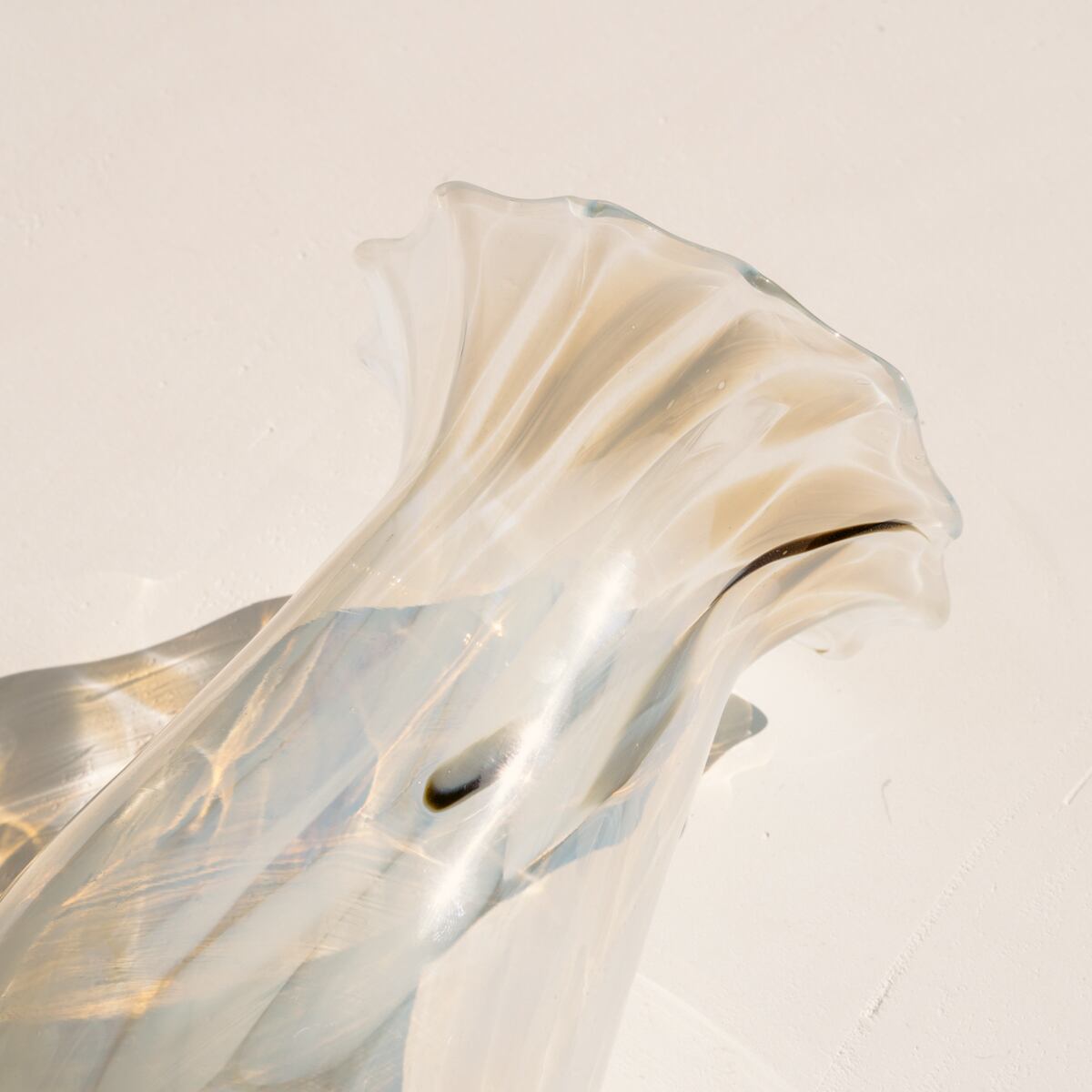 クリアガラスに、少しブルーがかったホワイトと、グレー〜ブラックのラインがランダムに広がる美しいデザイン。