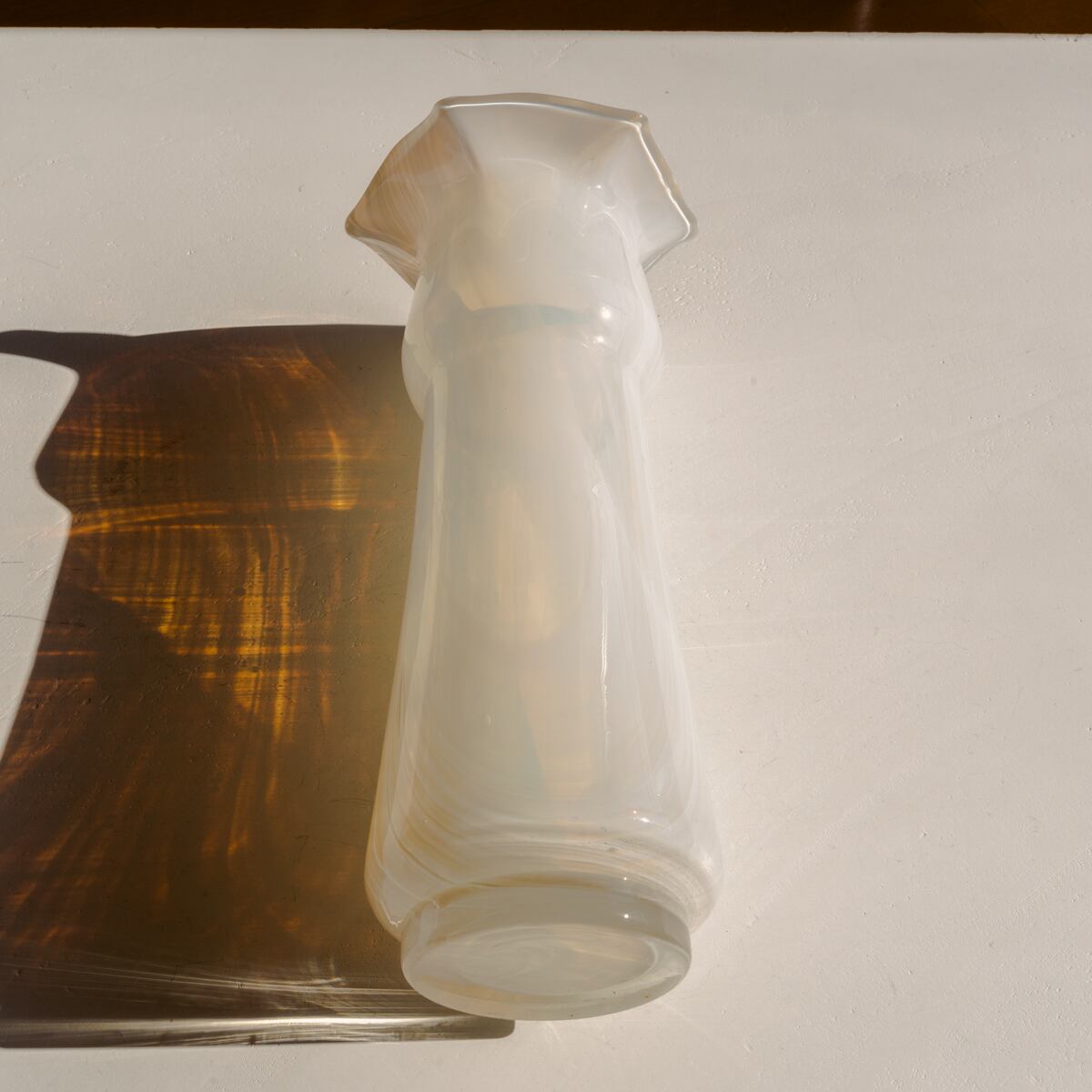 ミルキーホワイトの色味で、光が当たるとパールのような輝きをまといます。