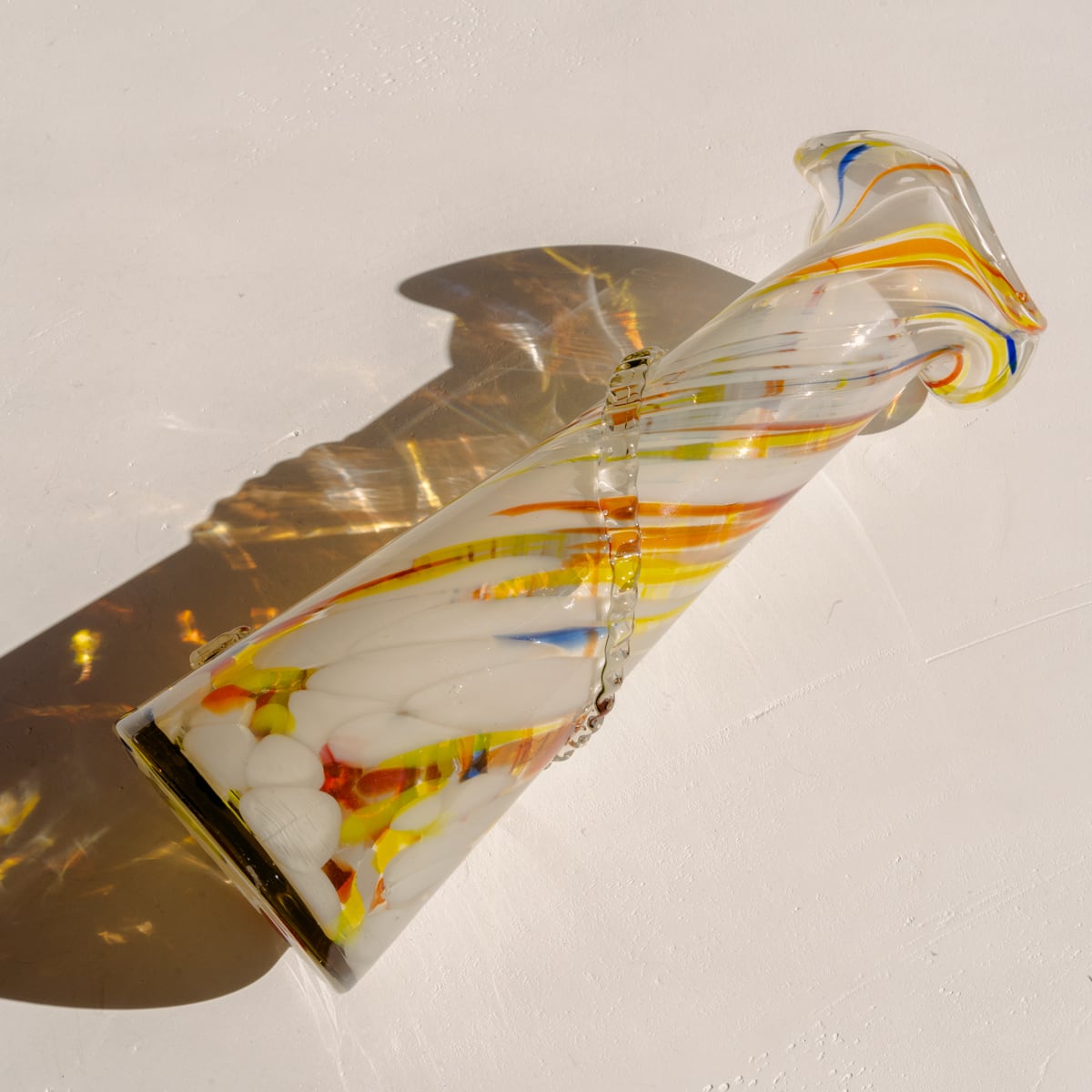 絶妙な色彩感覚で、ホワイトをベースに、オレンジ、イエローが入り混じり、キャンディーのようなマーブル模様に彩られています。