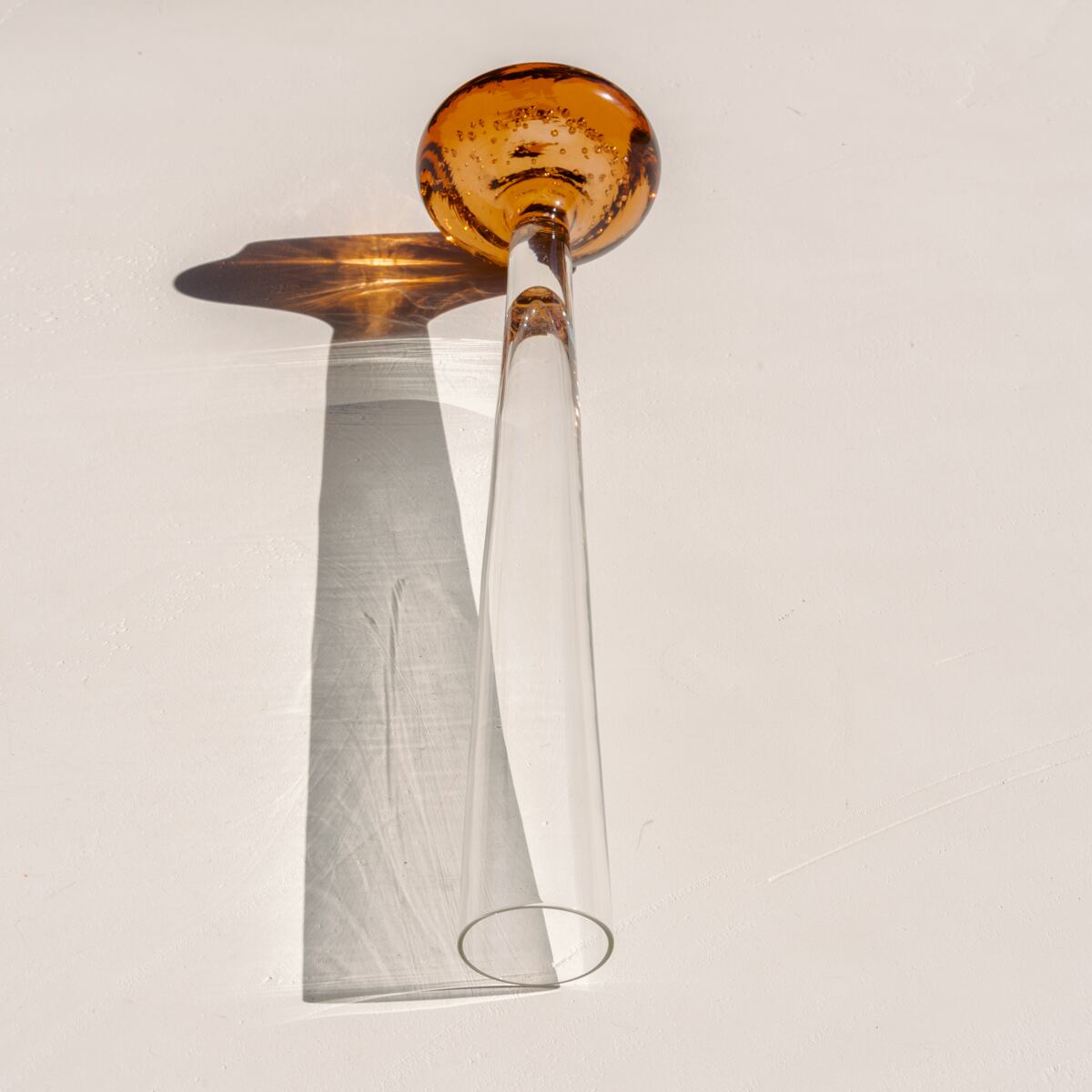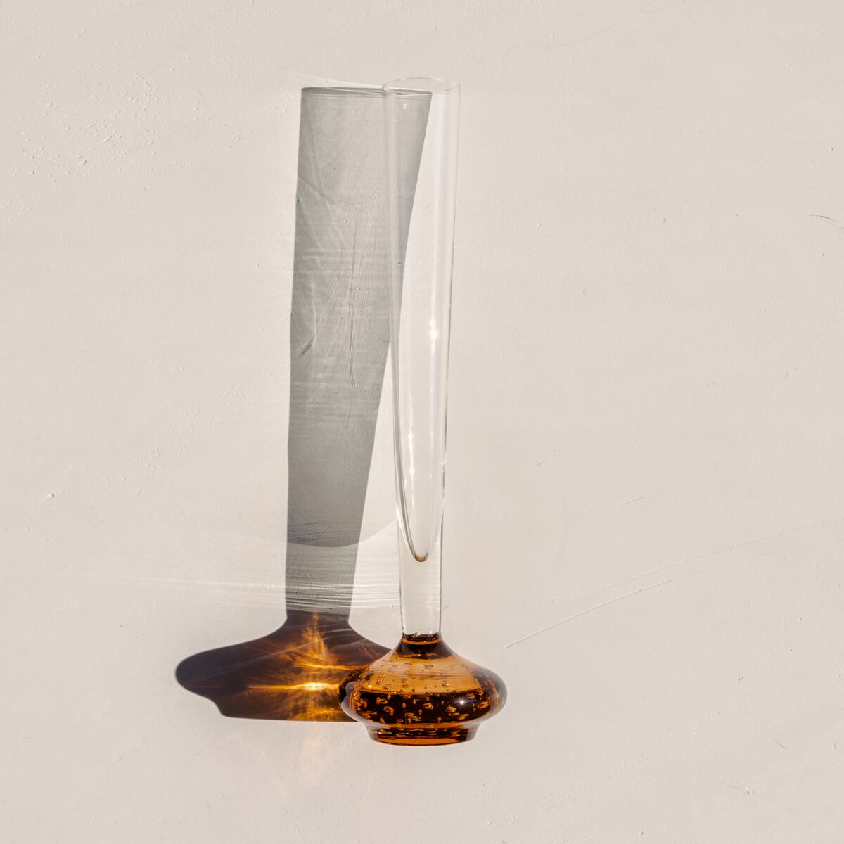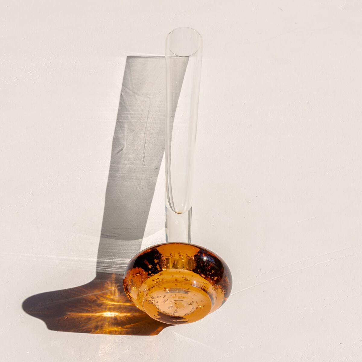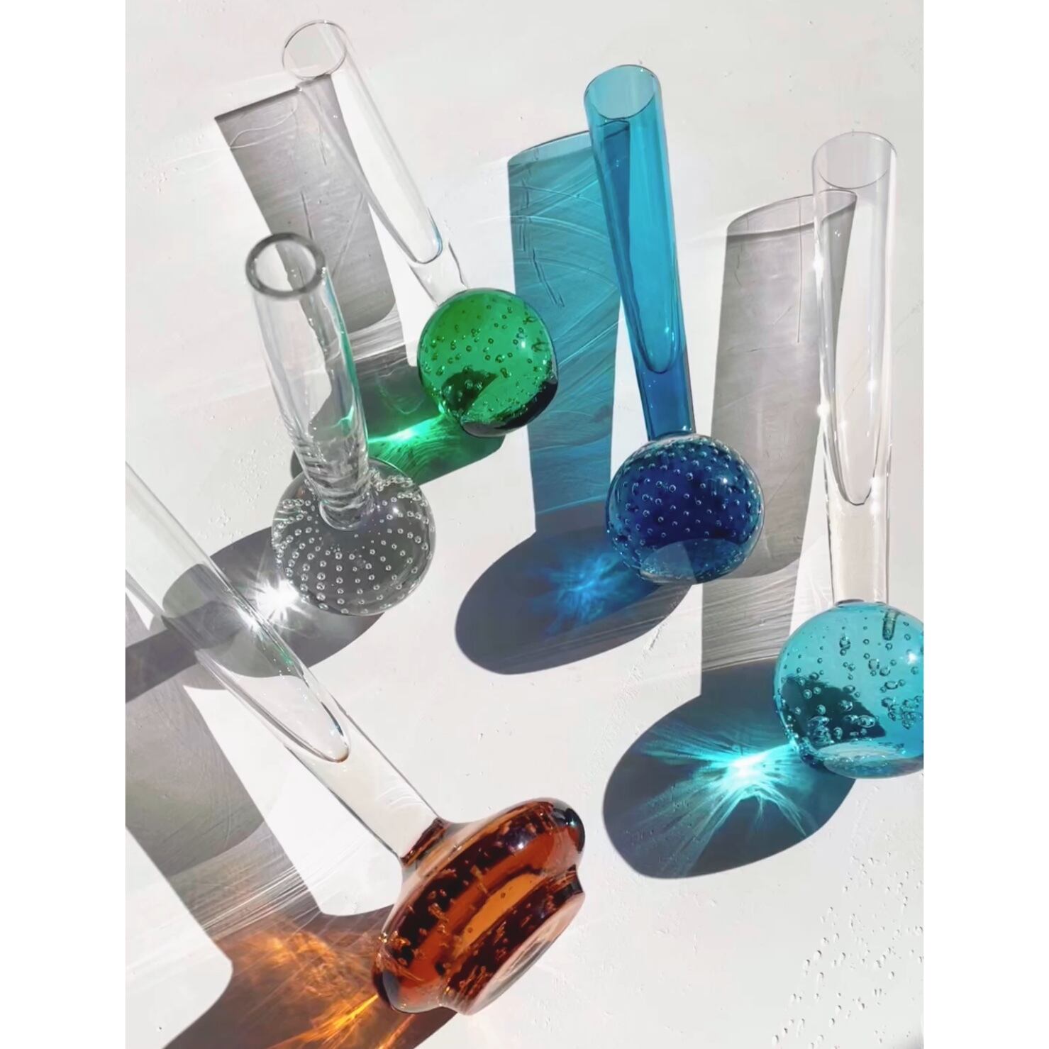 筒部分はスリムな一輪挿し、ボール部分はバブル(気泡)の入ったガラスでできており、ぽってりとしたデザイン。