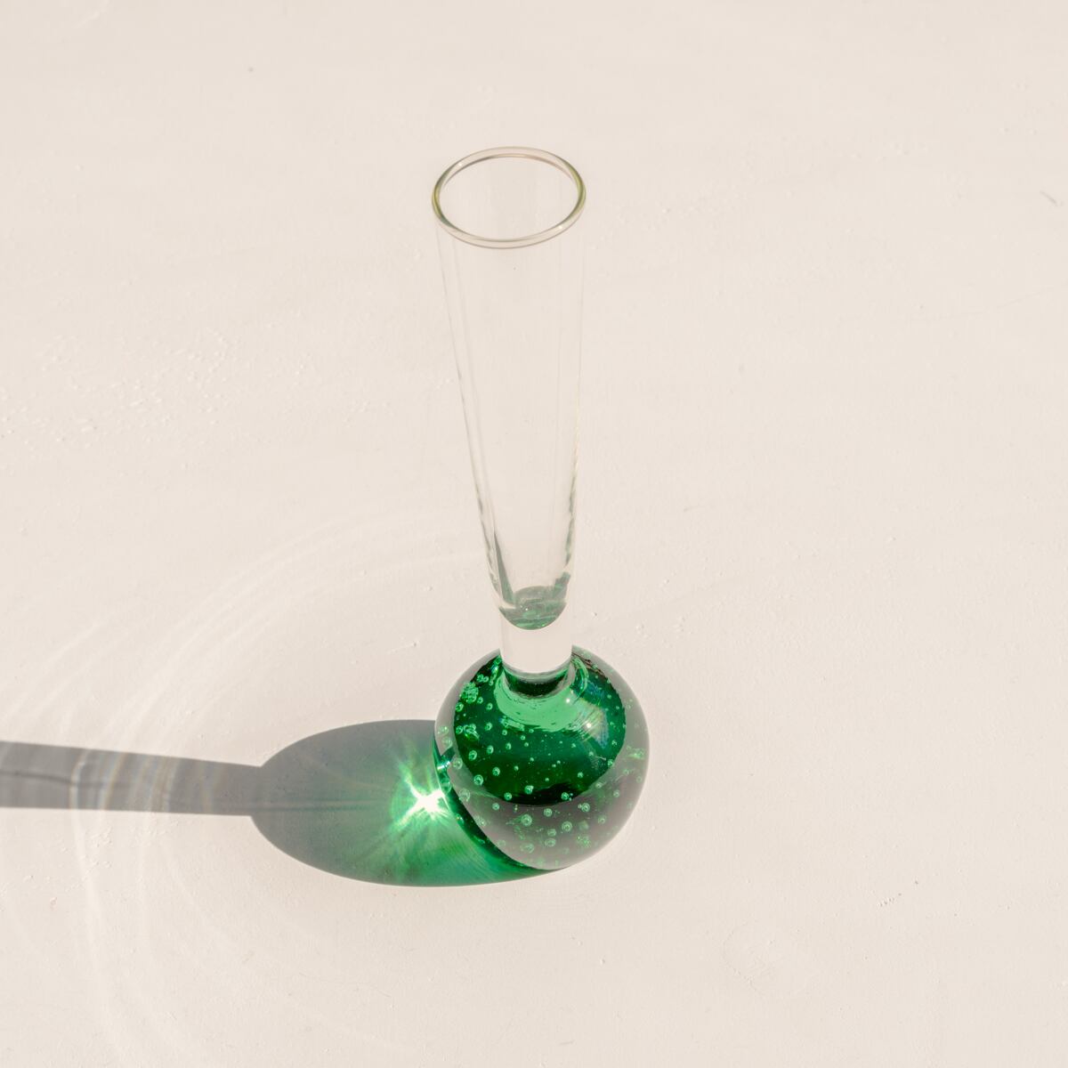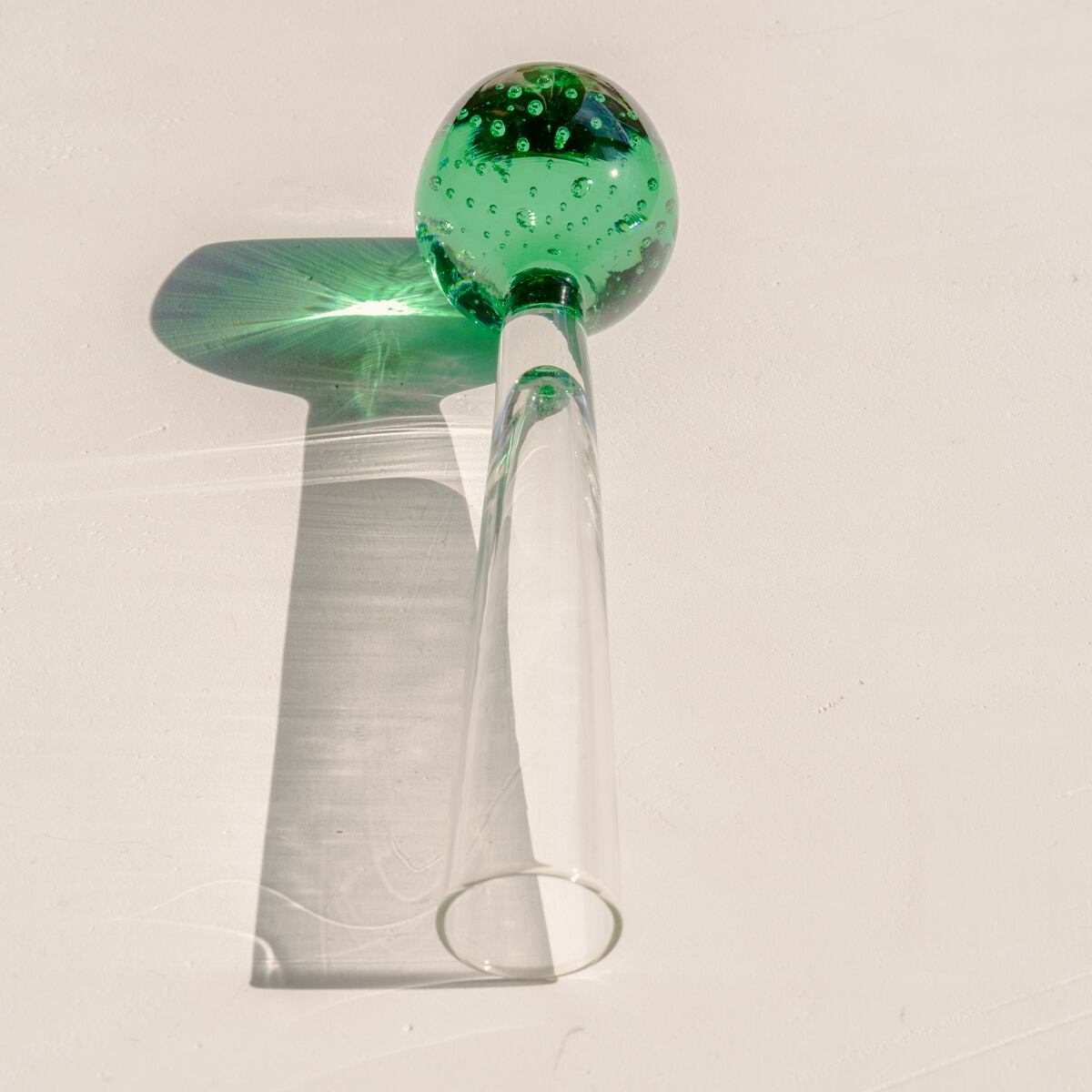 筒部分はスリムな一輪挿し、ボール部分はバブル(気泡)の入ったガラスでできており、ぽってりとしたデザイン。