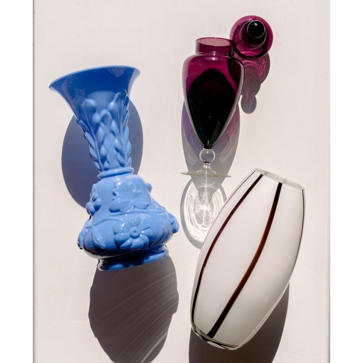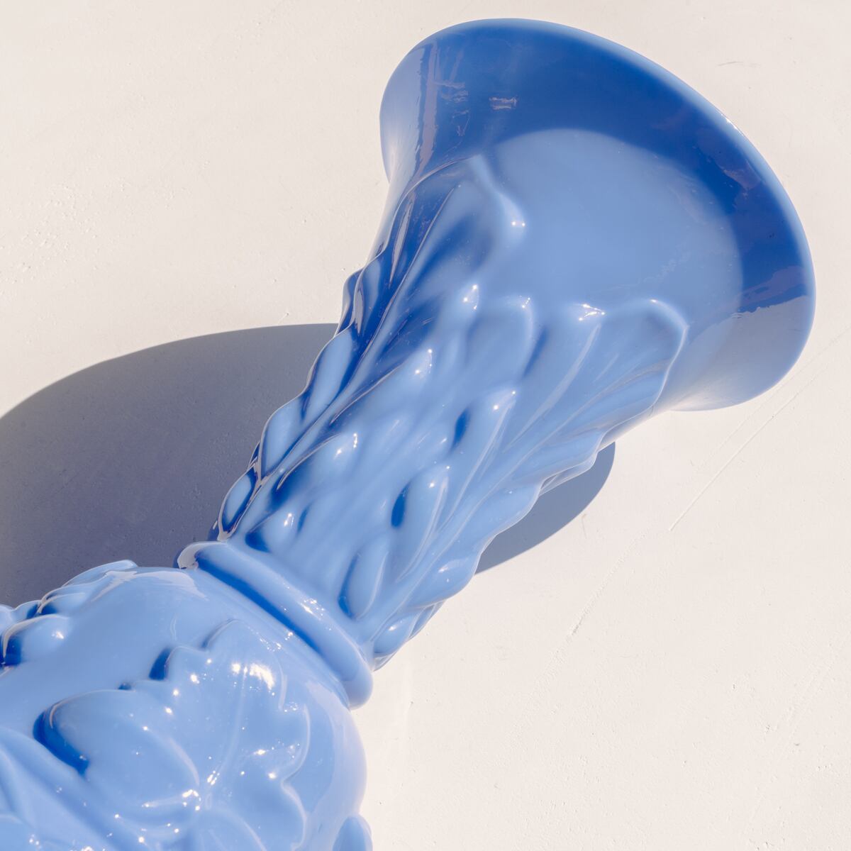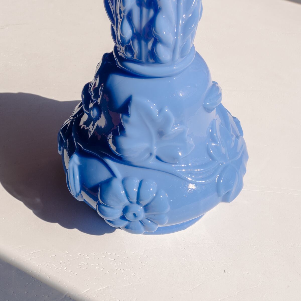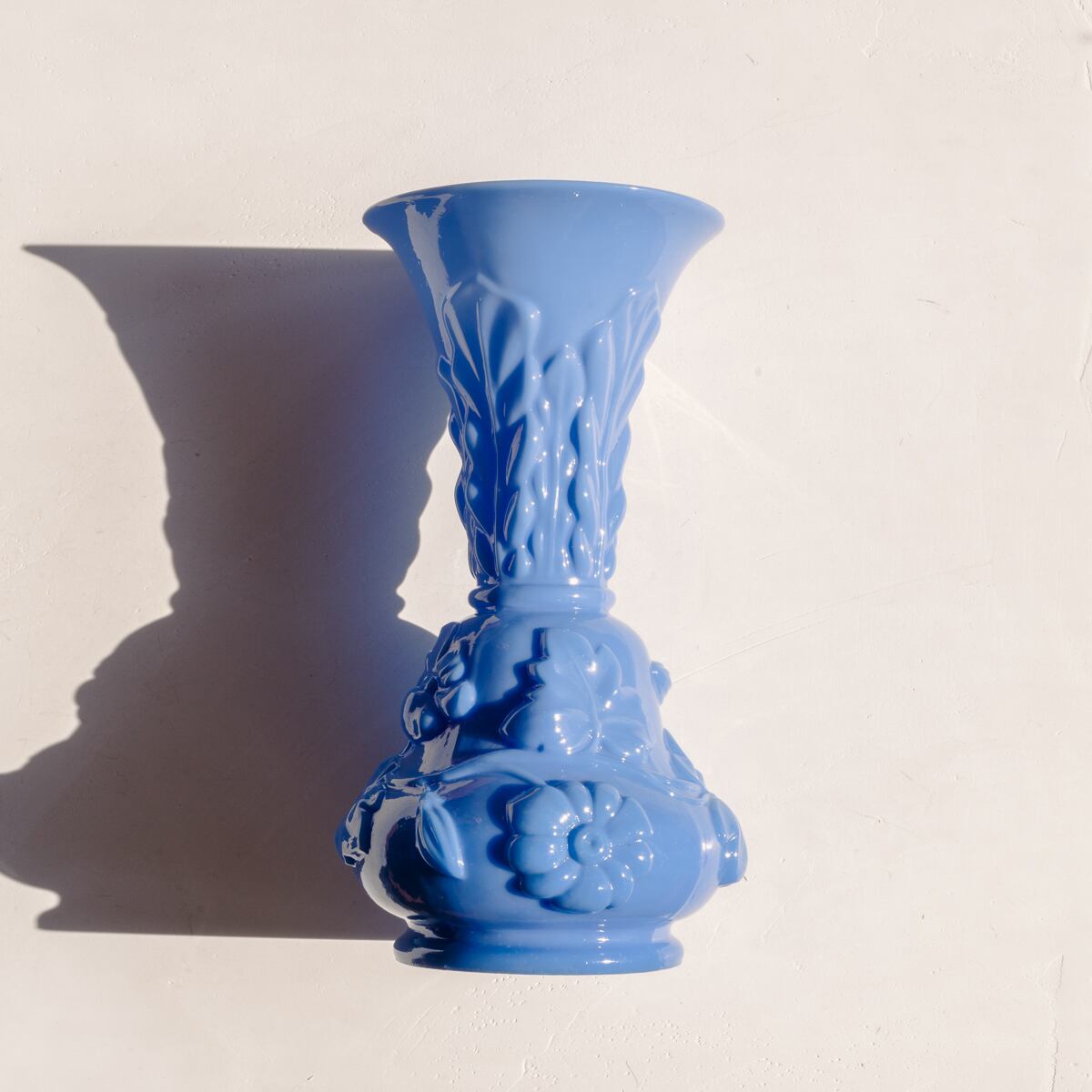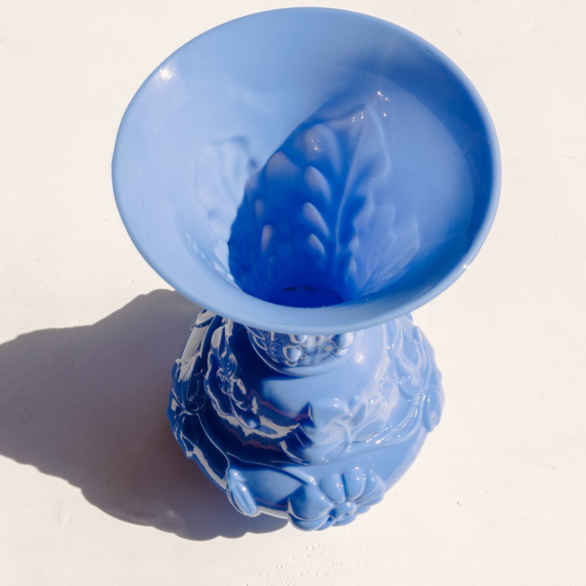 ラベンダブルーの絶妙な色味、とろみのあるミルキーな質感が美しい花器。