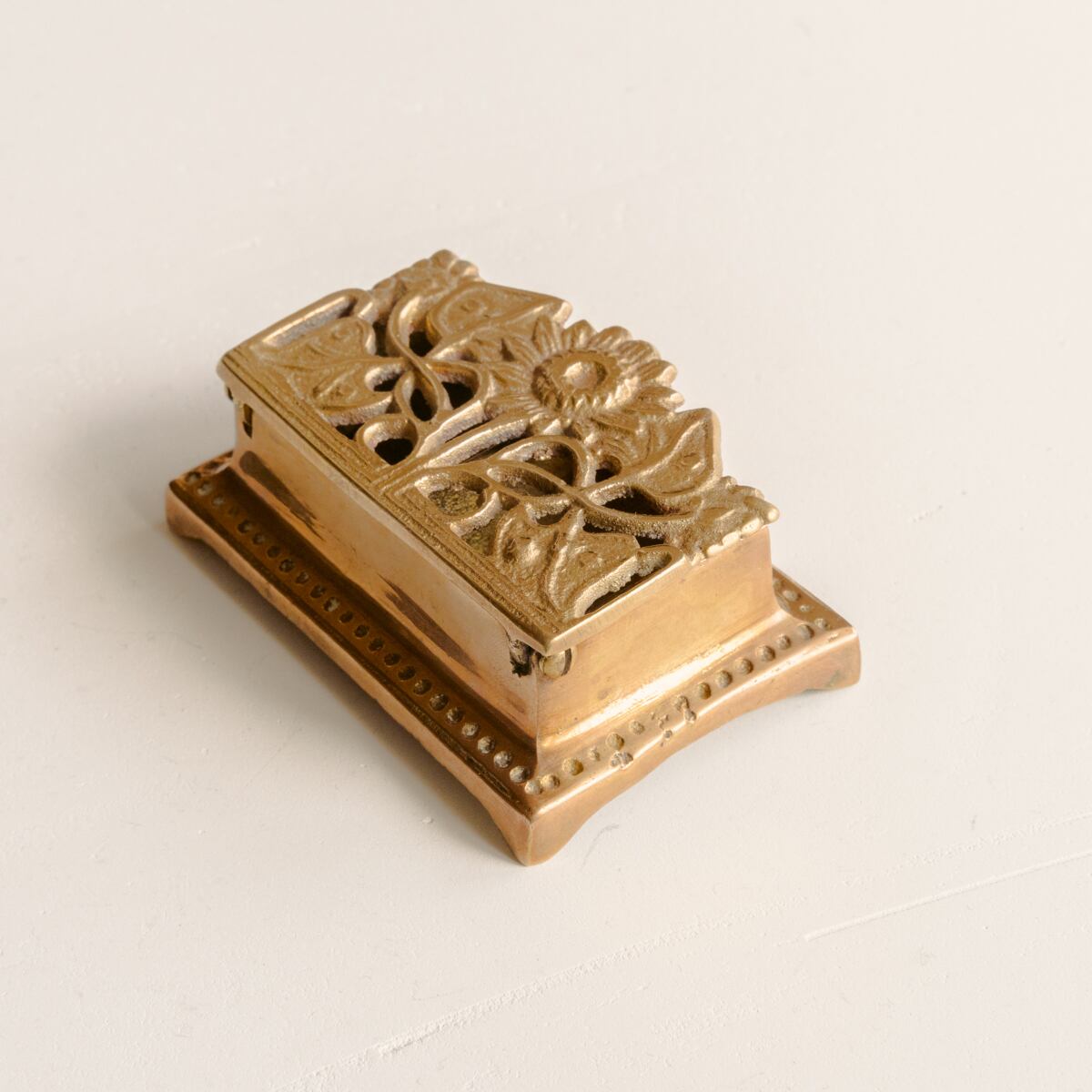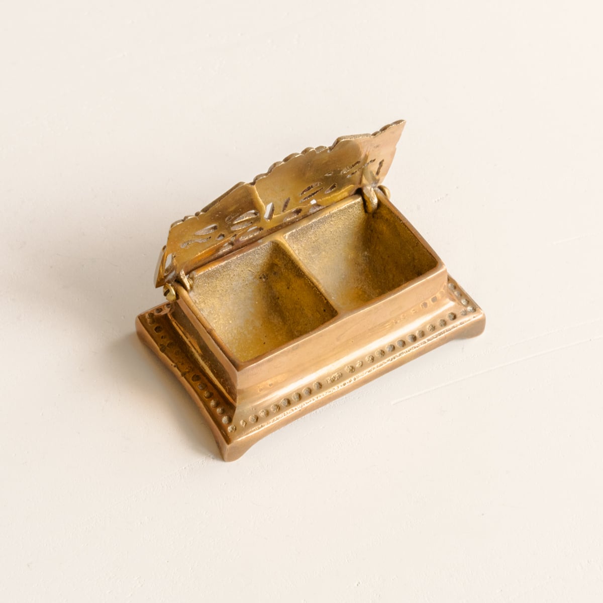 目立つ傷等はなく、全体的には良好なヴィンテージコンディションです。真鍮の経年変化はありますが、国や時代を越えて受け継がれてきた年代物として、お楽しみください。蓋の開閉は少し固めです。詳しくは写真をご確認ください。アルコール除菌、清掃済みです。