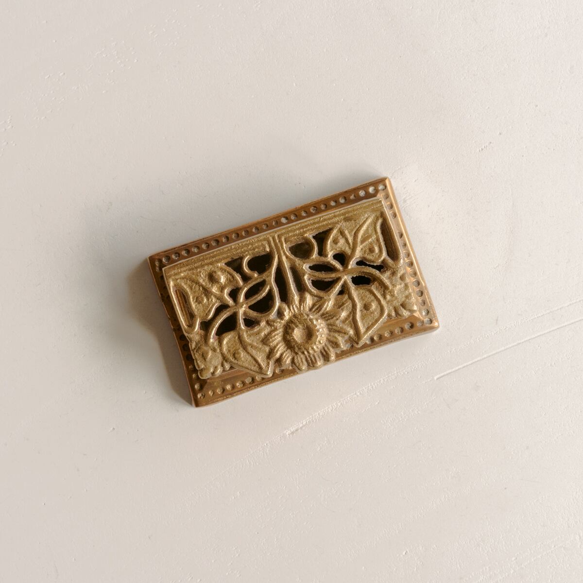 ひまわりの花をモチーフにつくられた、真鍮の味わい深さが魅力的なアイテム。