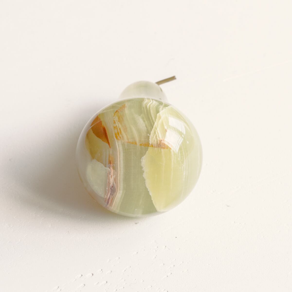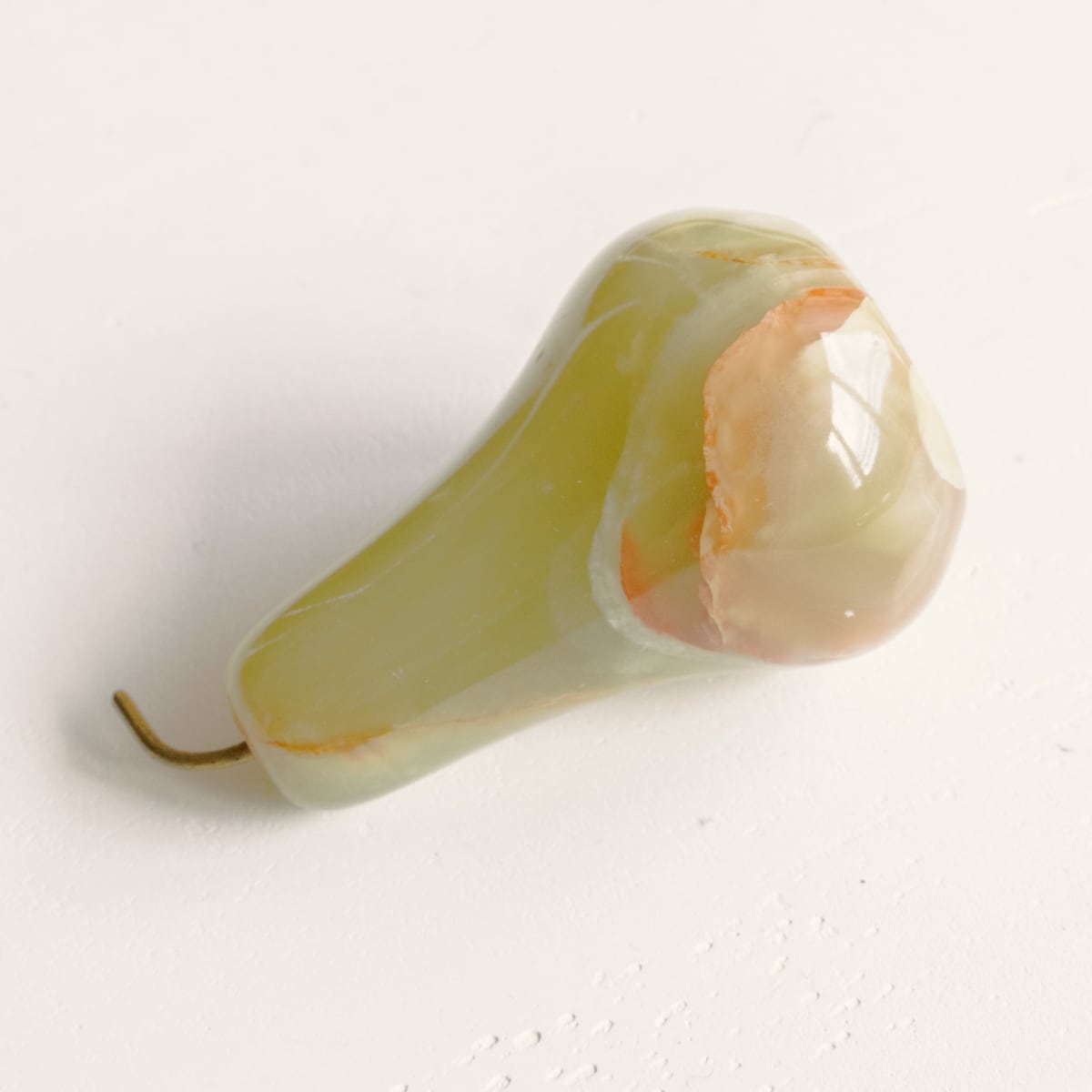 真鍮製の果梗(梨の上部についている枝から果物までの部分)も、石の素材とのコントラストが美しいです。