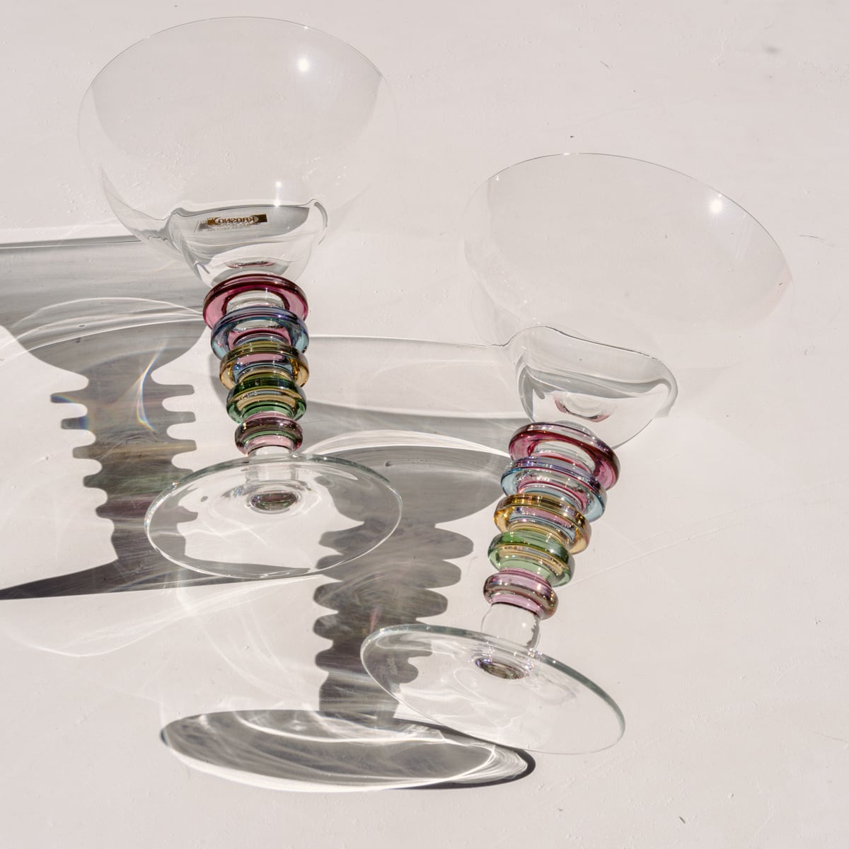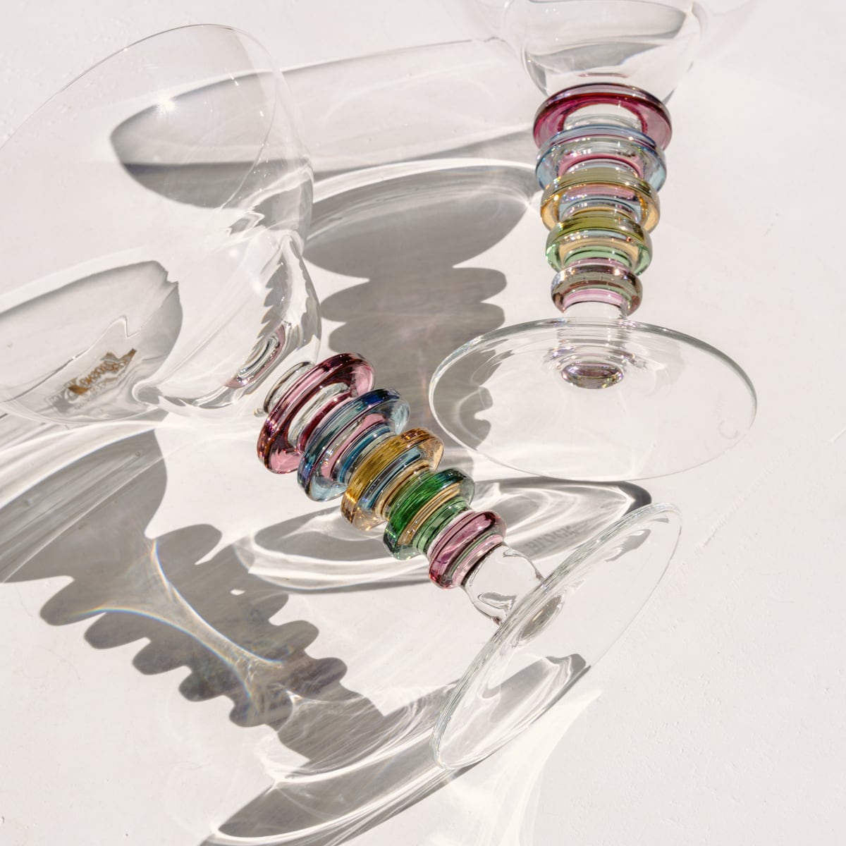 マティーニカクテルグラスのようなシルエットのデザインで、5色のリングステムがアクセントになっています。