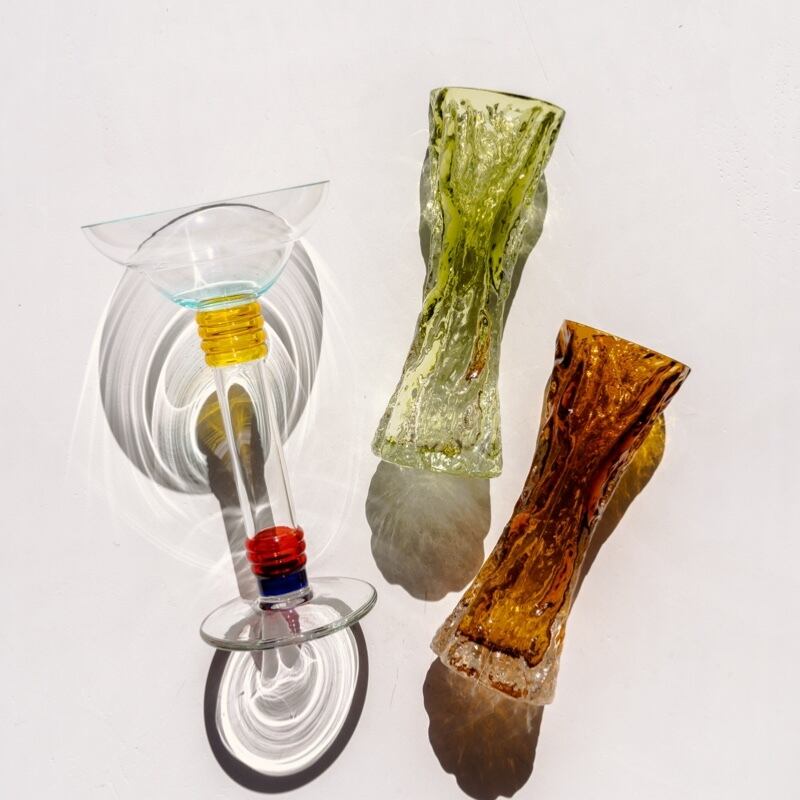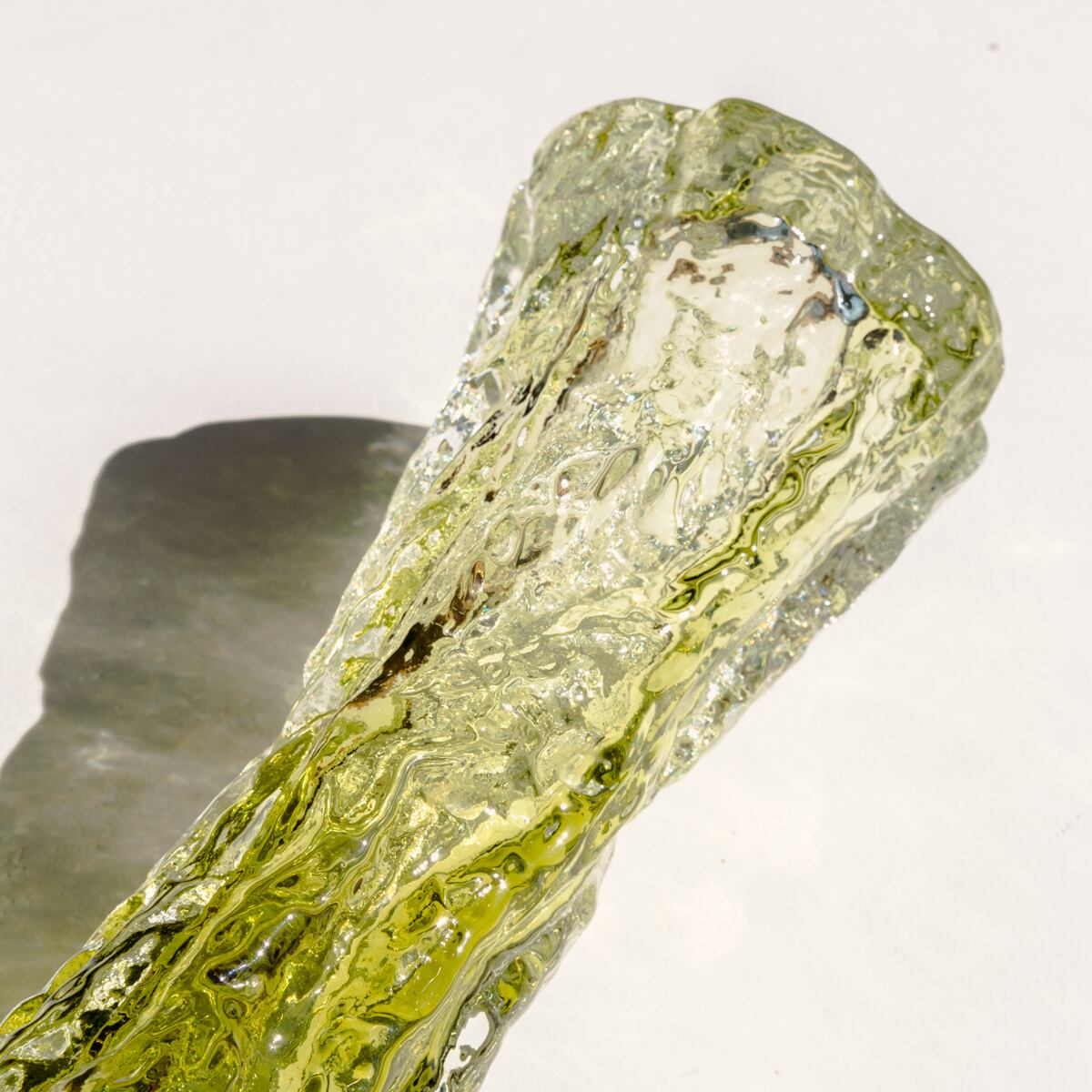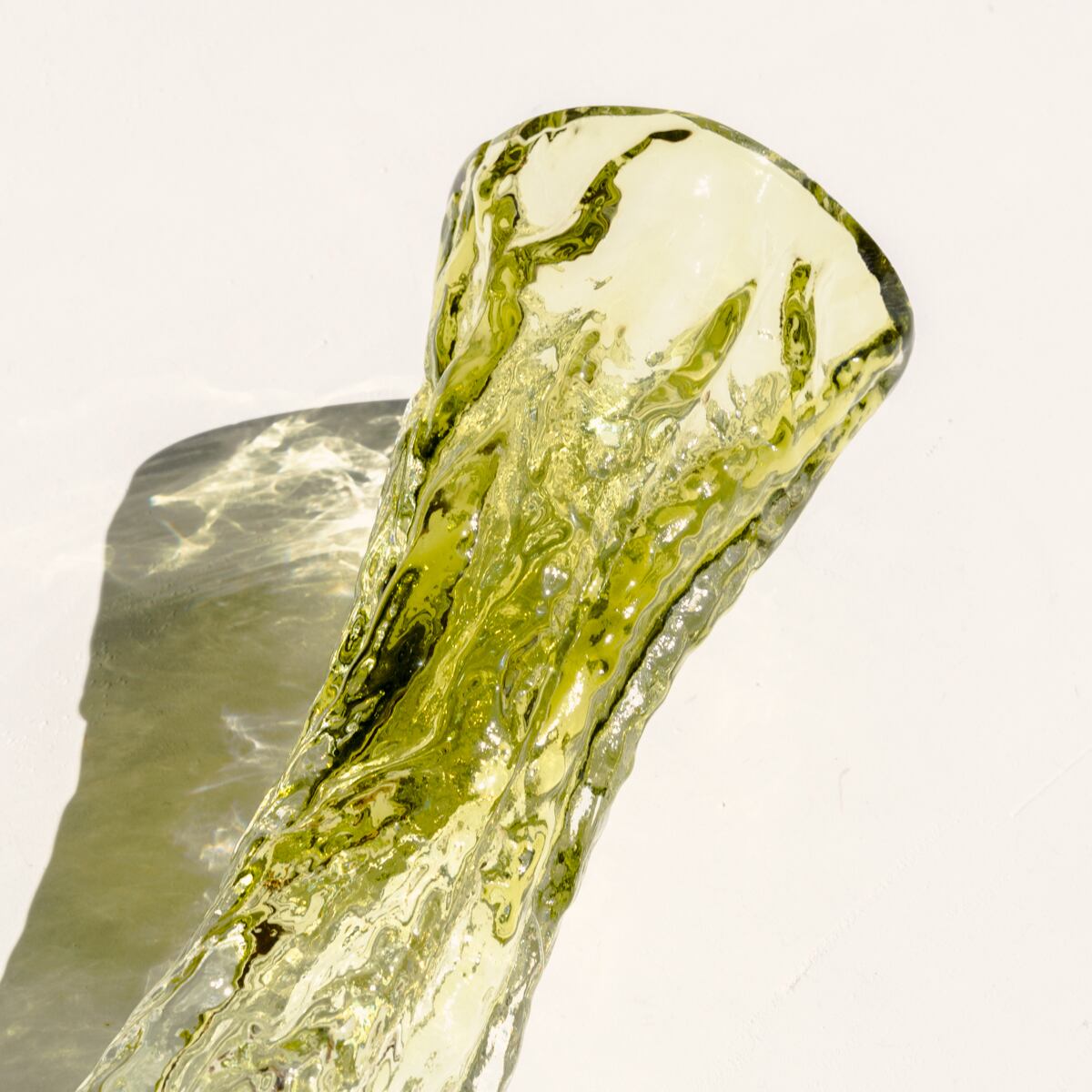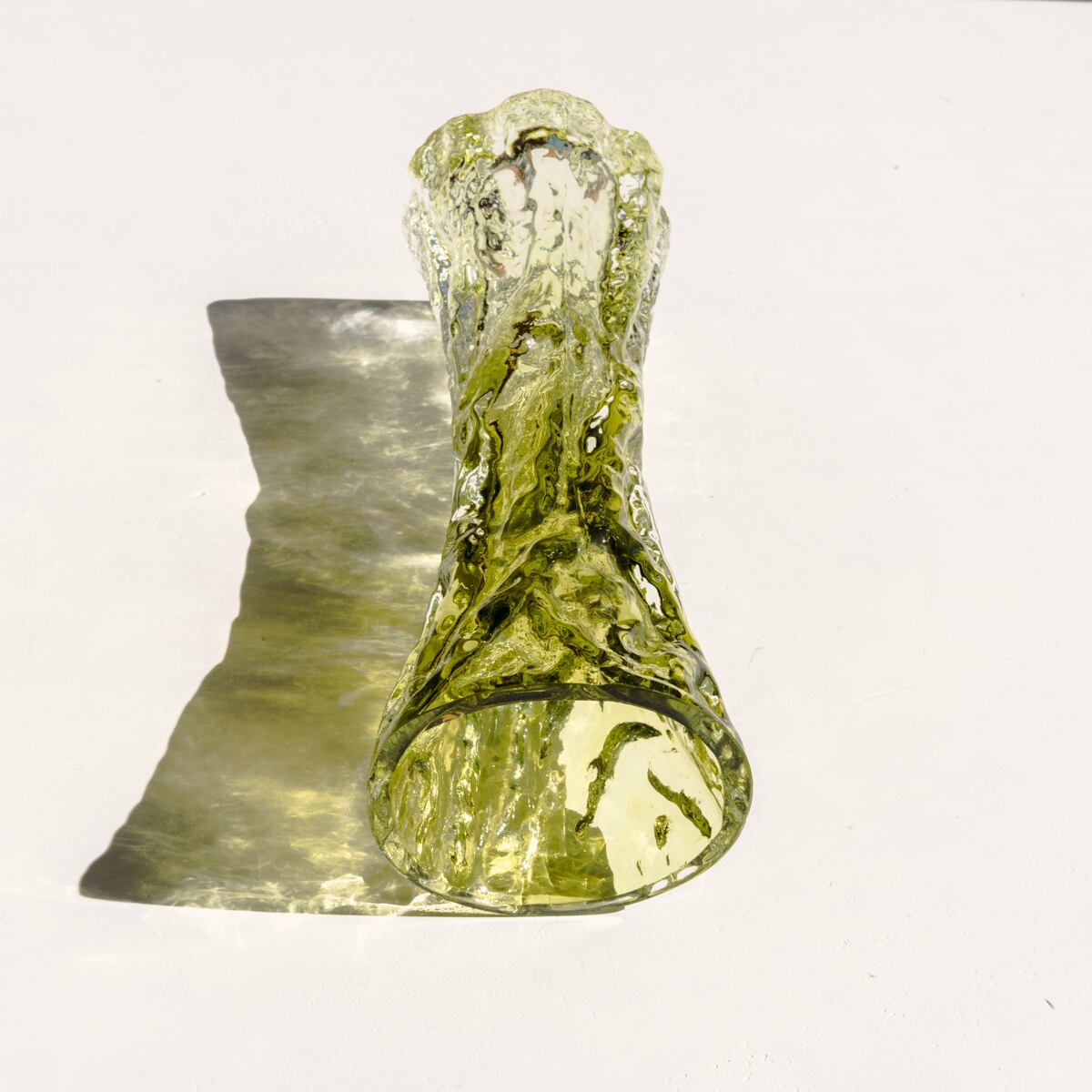 アイスのお抹茶のようなクリアガラスが美しい花器。