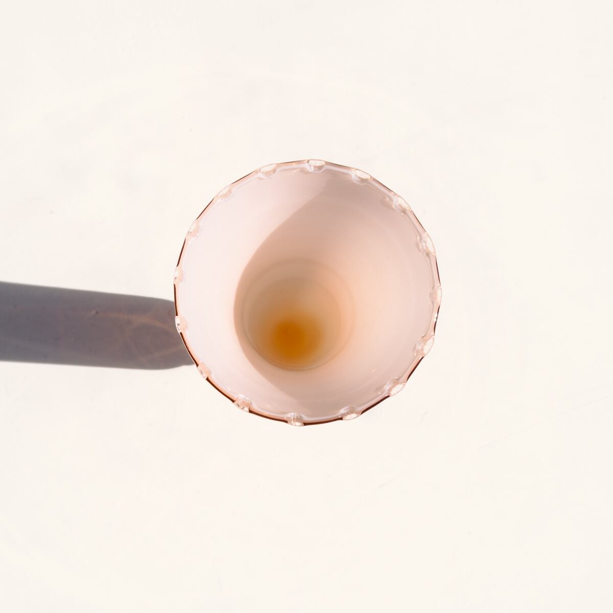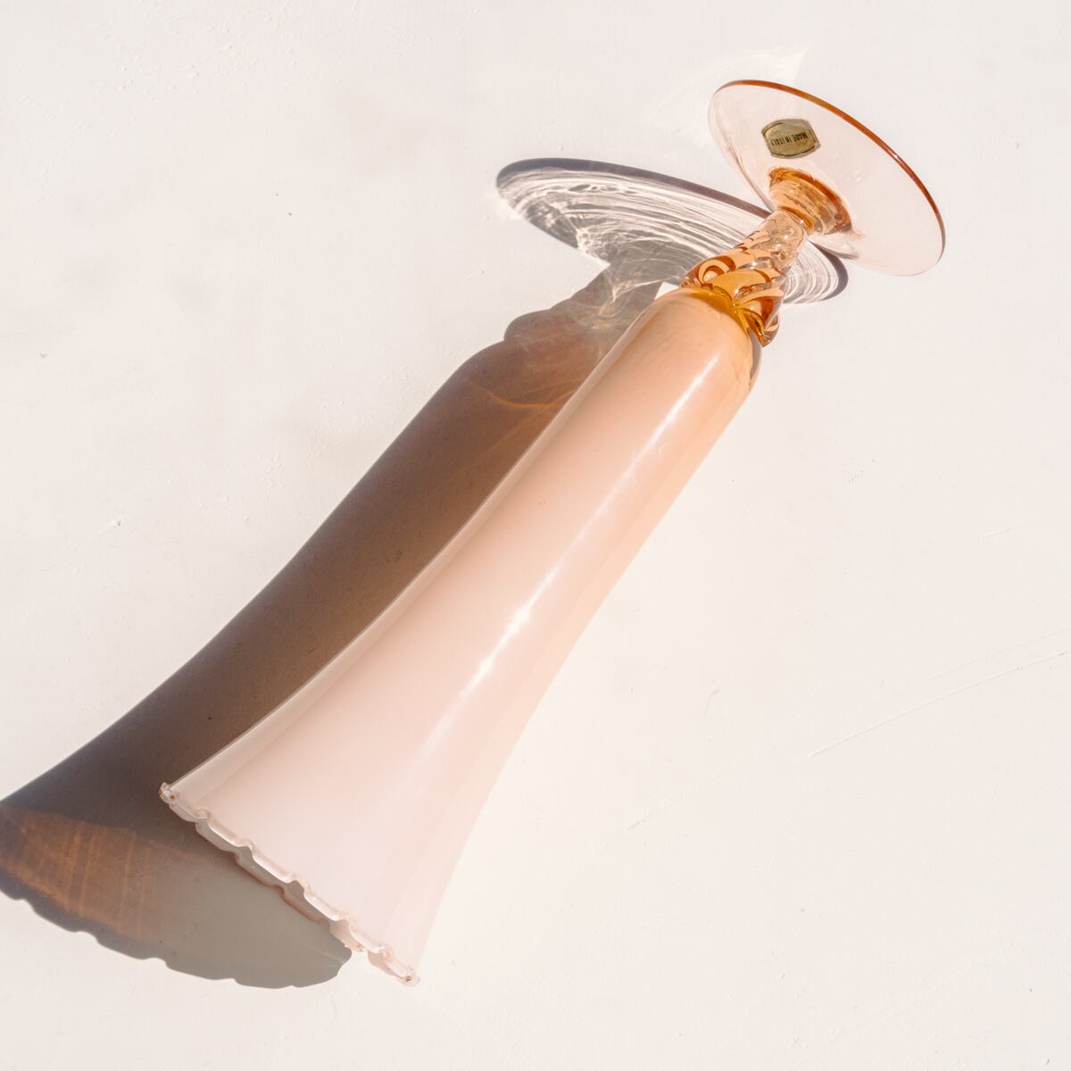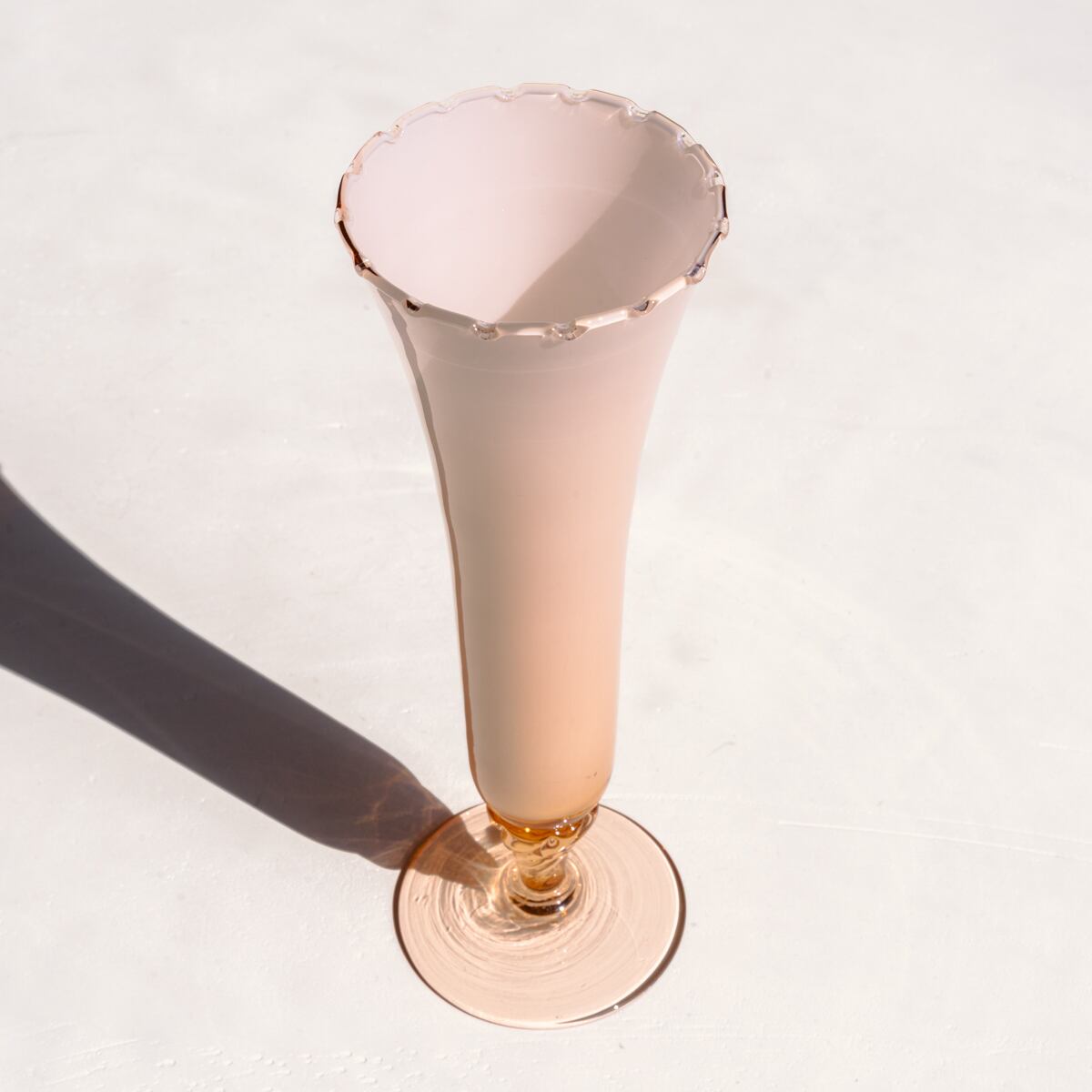 ホワイト〜サーモンピンクのグラデーション、とろみのあるミルキーな質感が魅力的な花器。