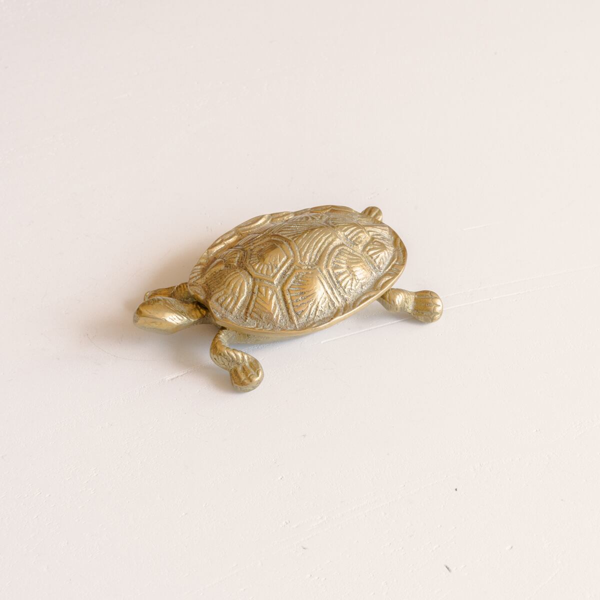 ゆっくりと歩いているような愛嬌あるカメのモチーフ、真鍮の味わい深さが魅力的。