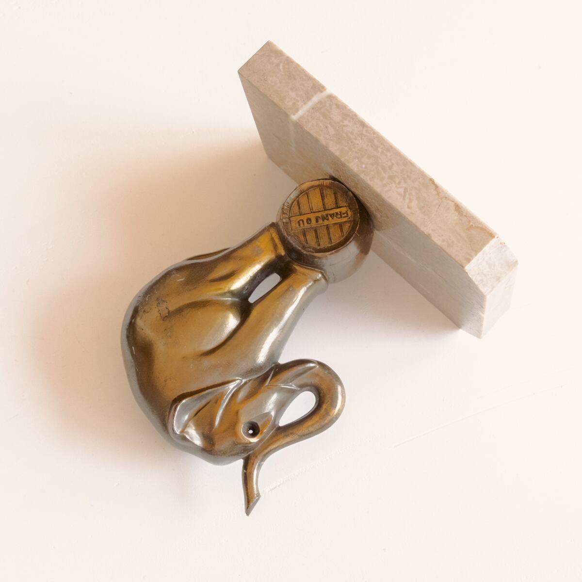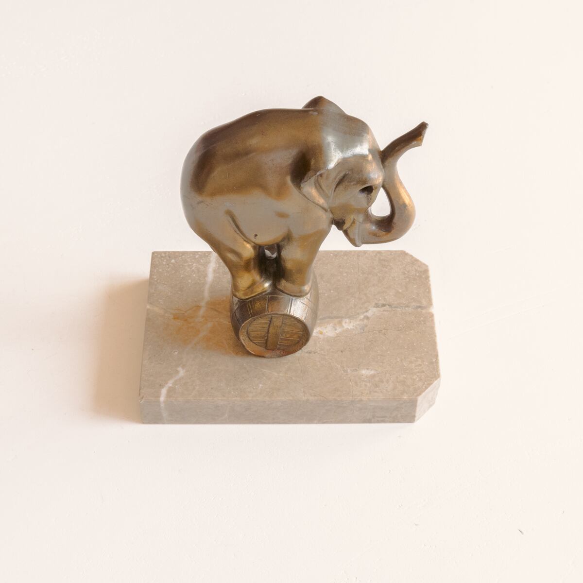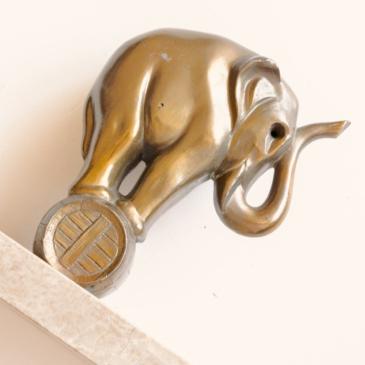 樽の上に立つゾウをモチーフにつくられたブックエンド。