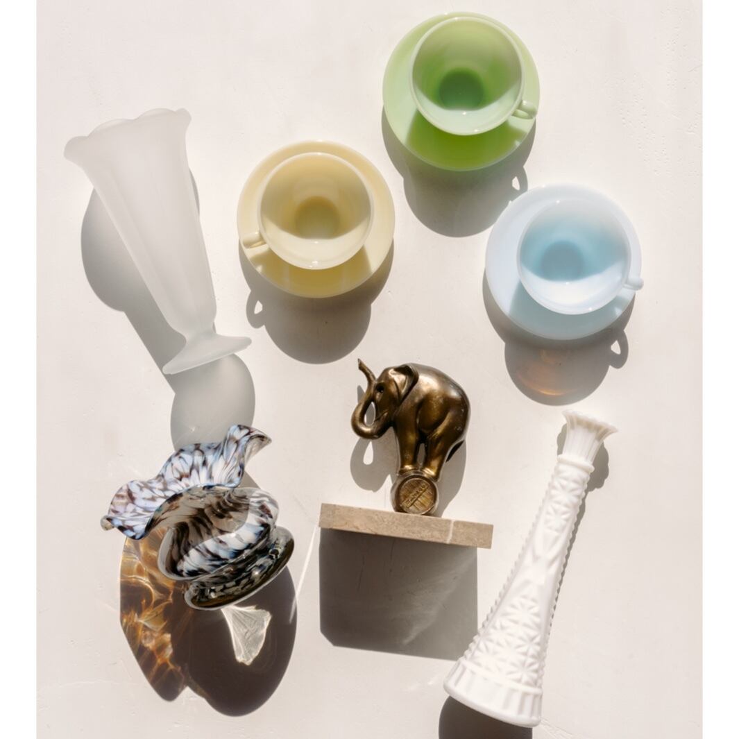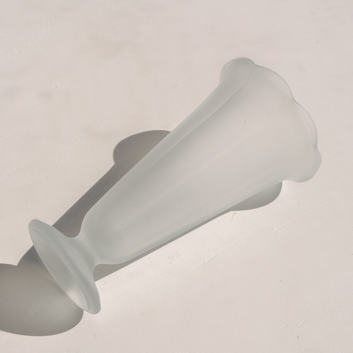 マットなガラスの質感、縁のフリルが魅力的なアイテム。