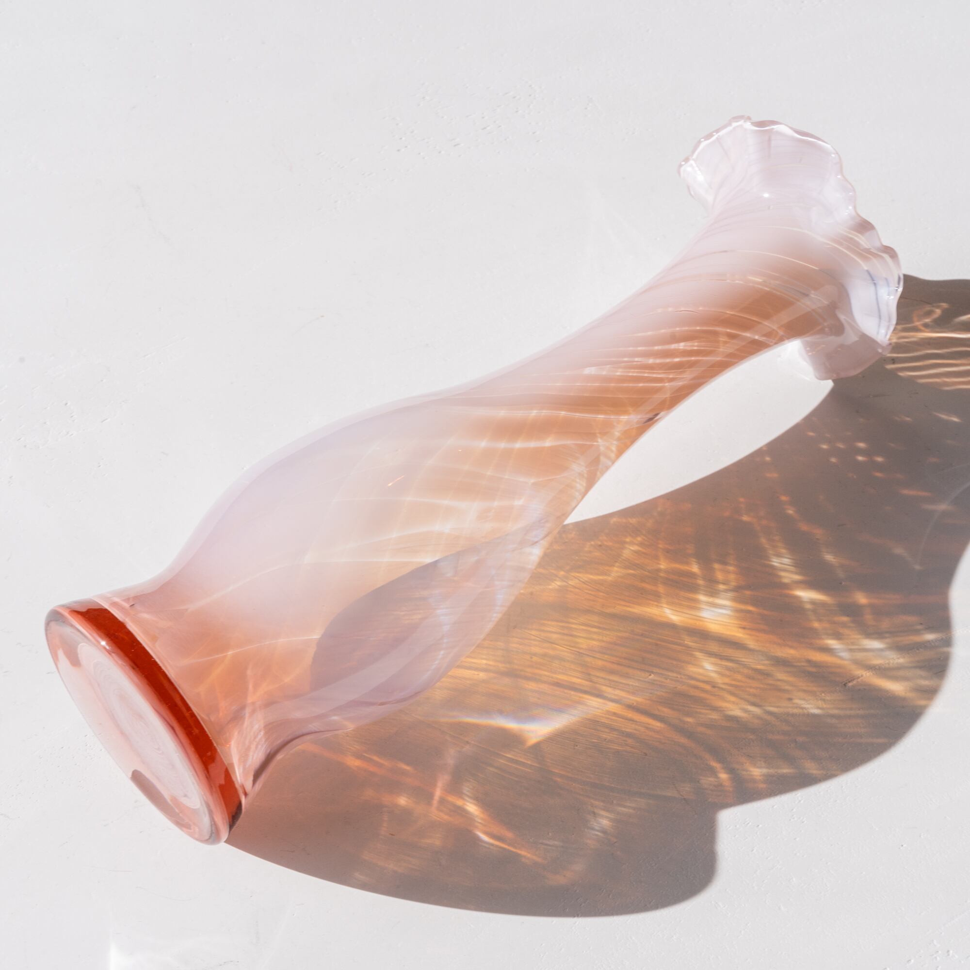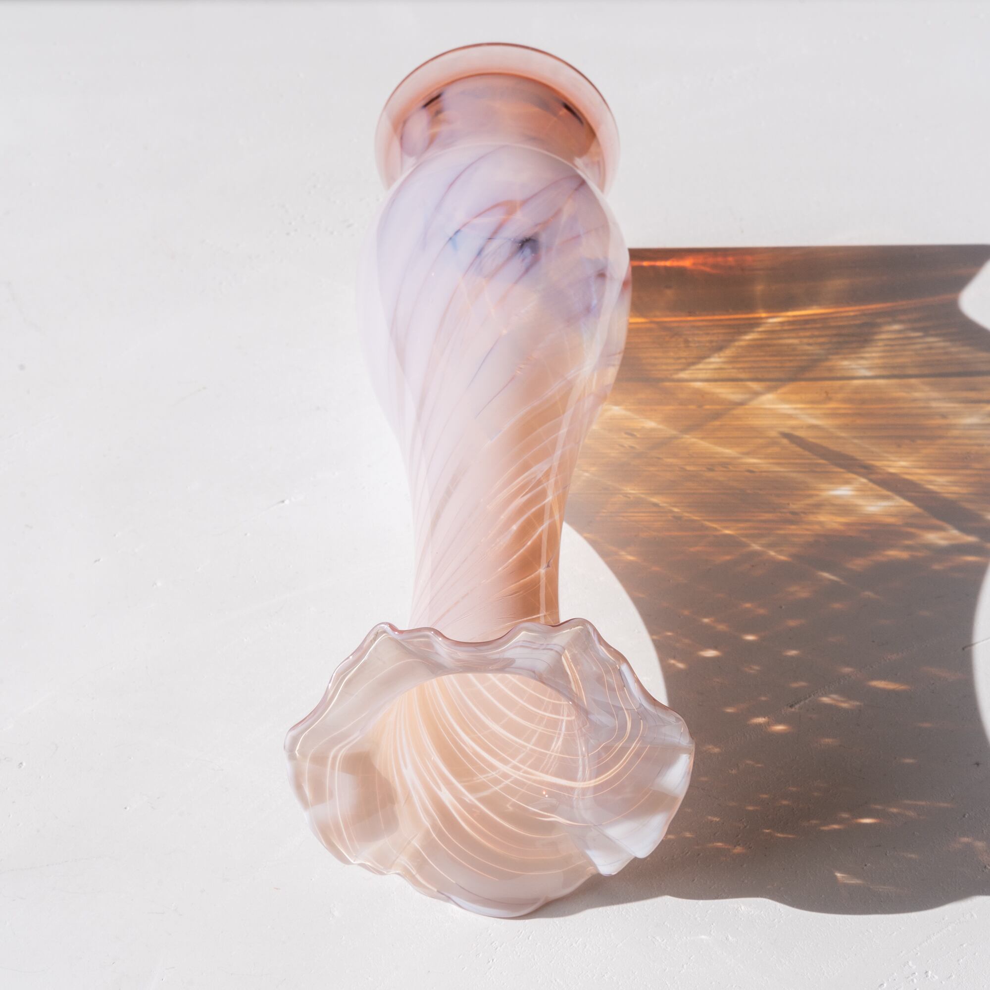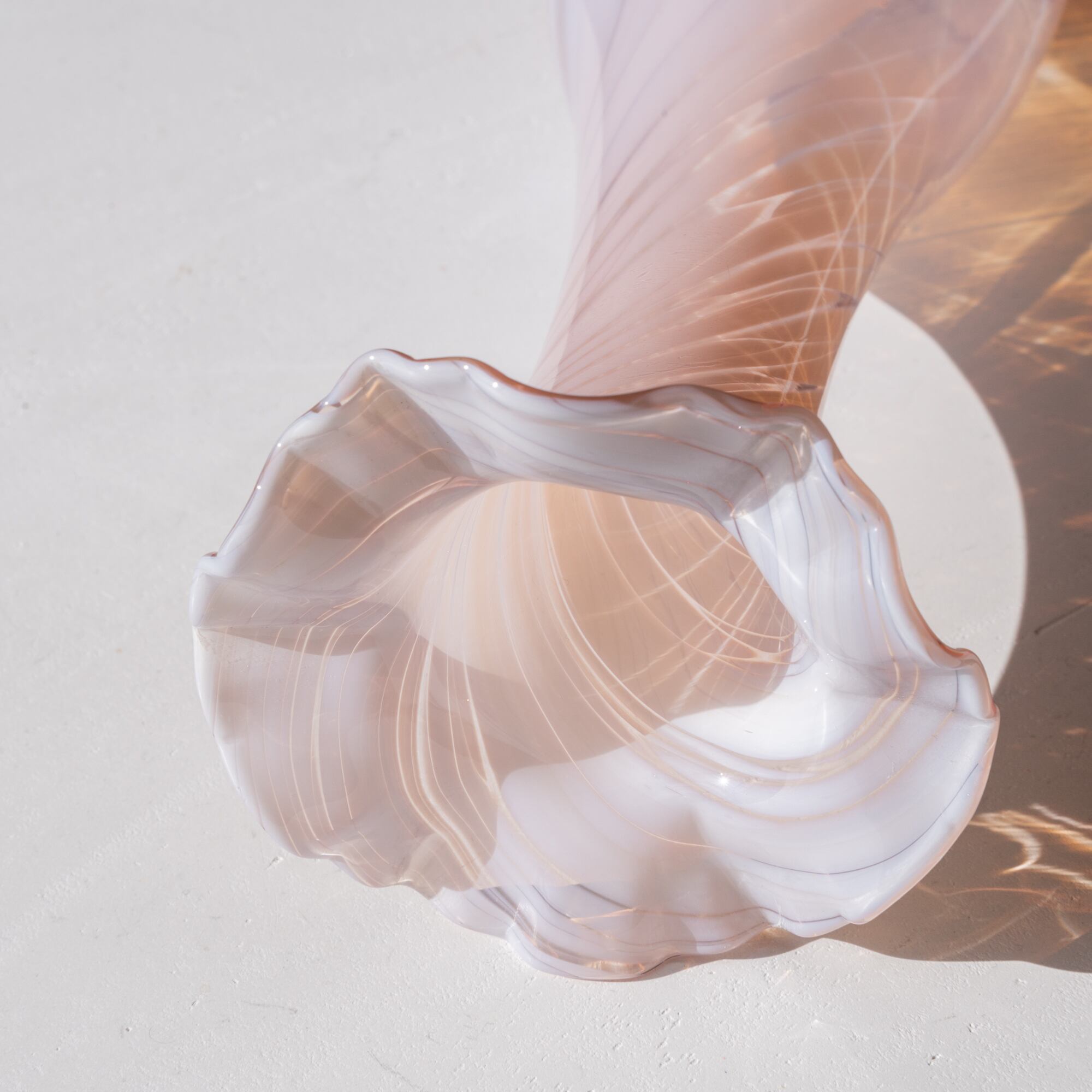 ピンクがかったクリアなガラスに、ホワイトのマーブル模様が広がる美しいデザイン。