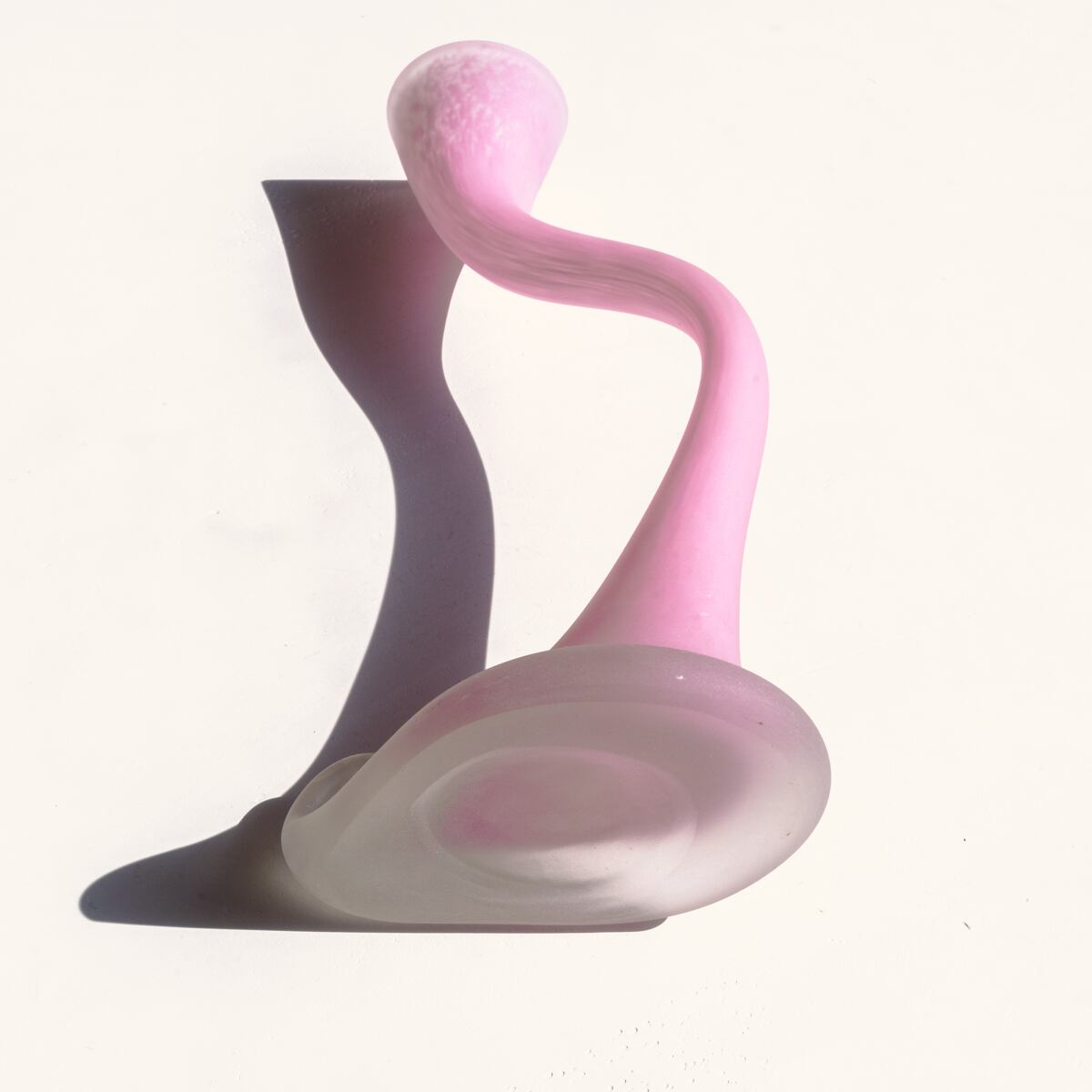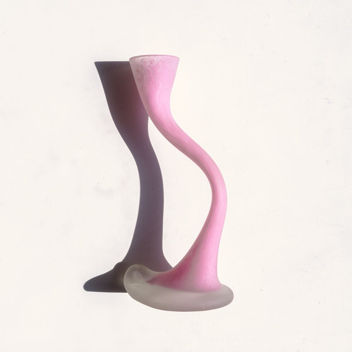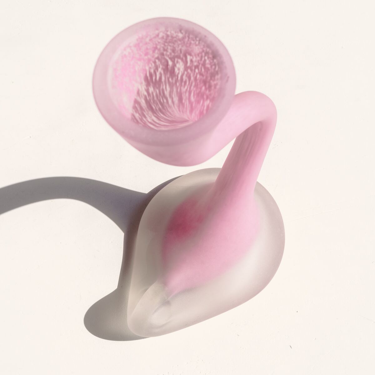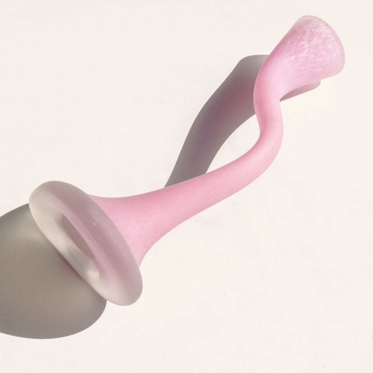 マットなクリアガラスに、ピンクのマーブル模様が広がっています。