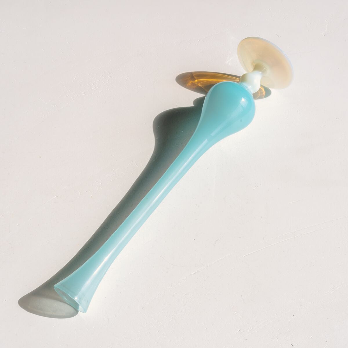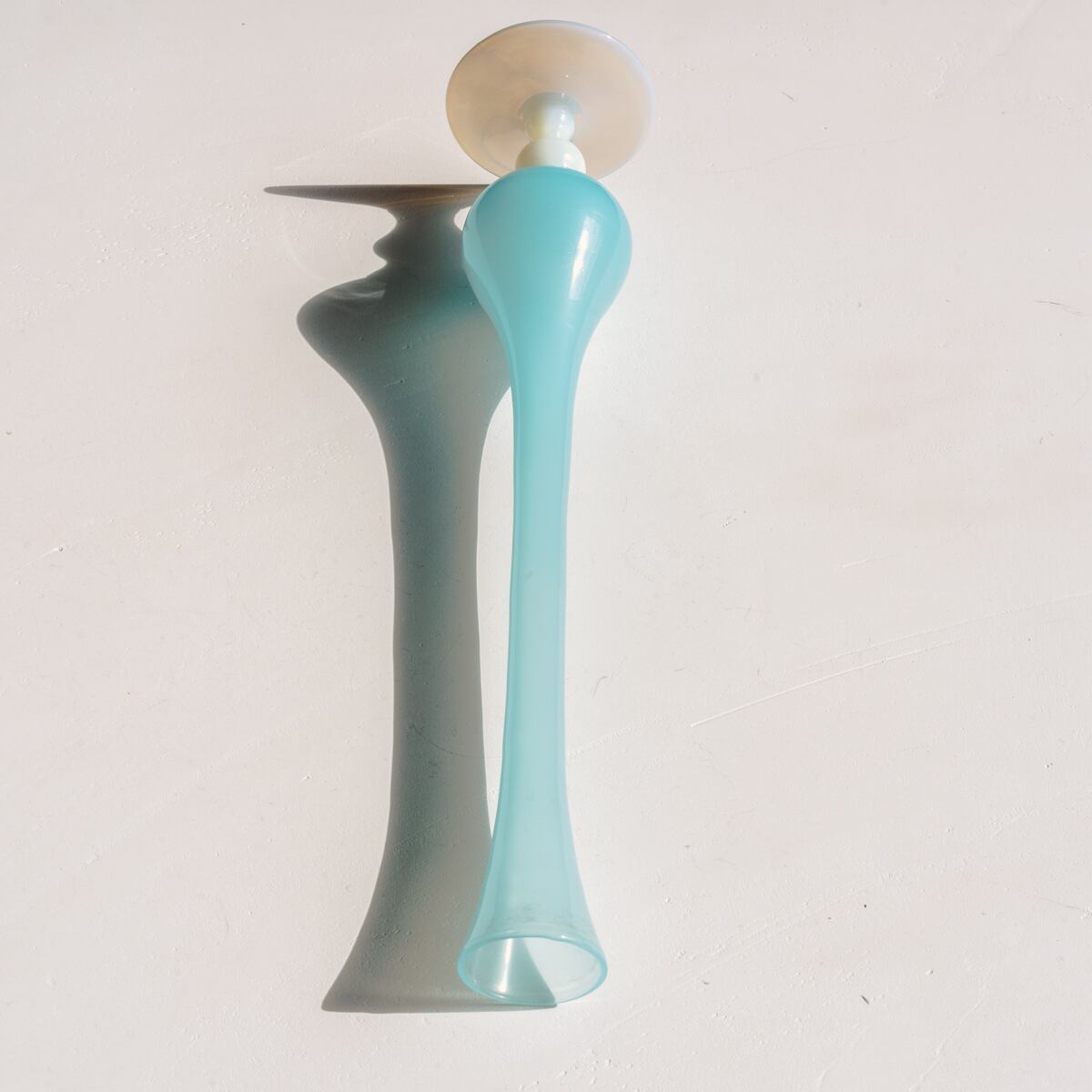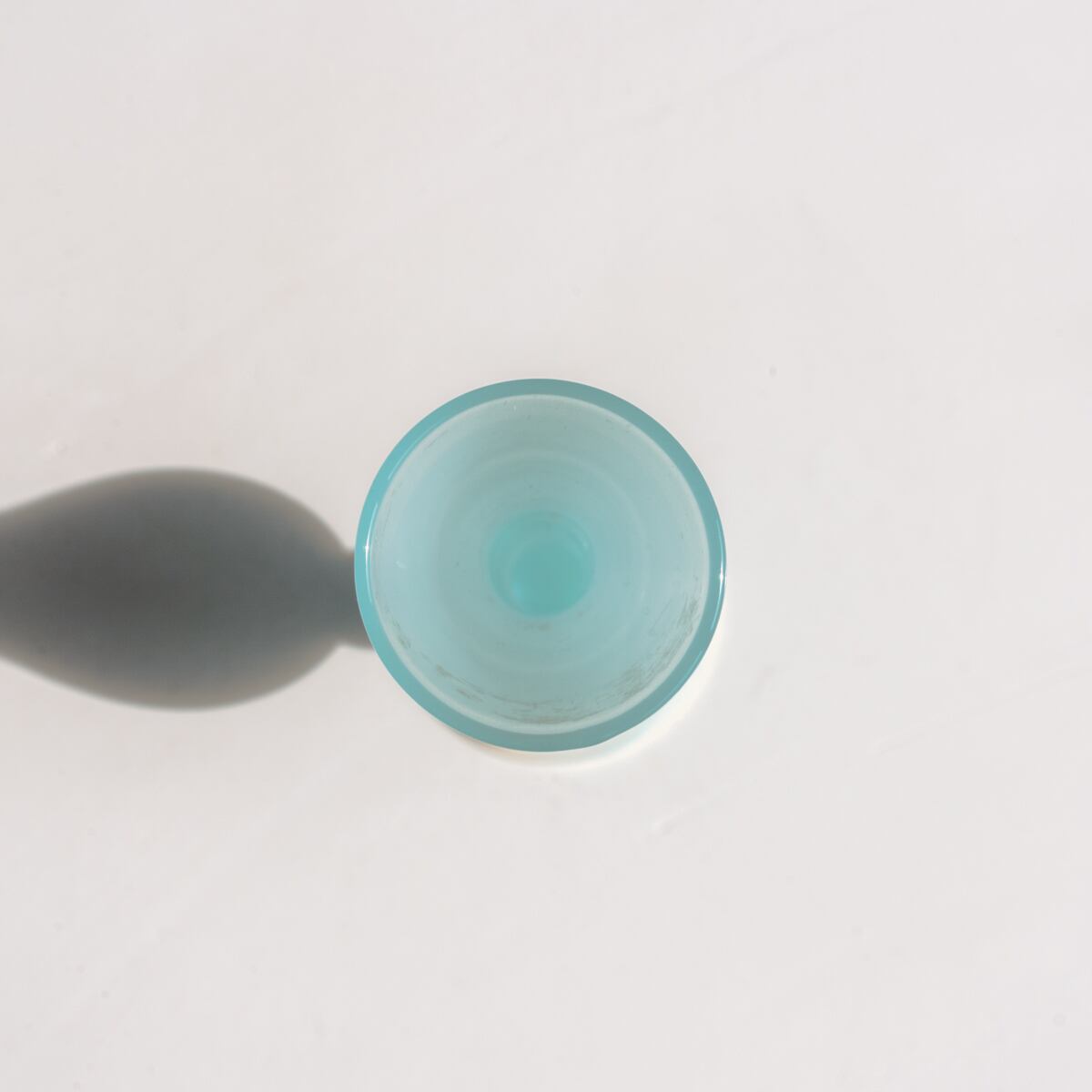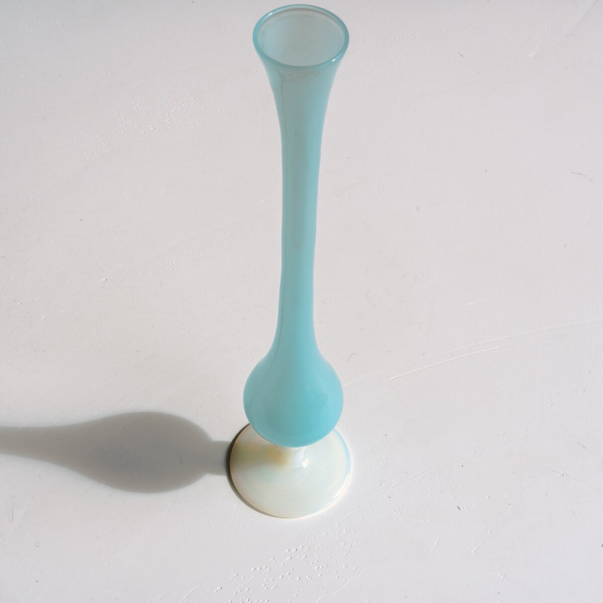 優しいペールブルーとホワイトのツートンカラー、とろみのあるミルキーな質感が魅力的な花器。