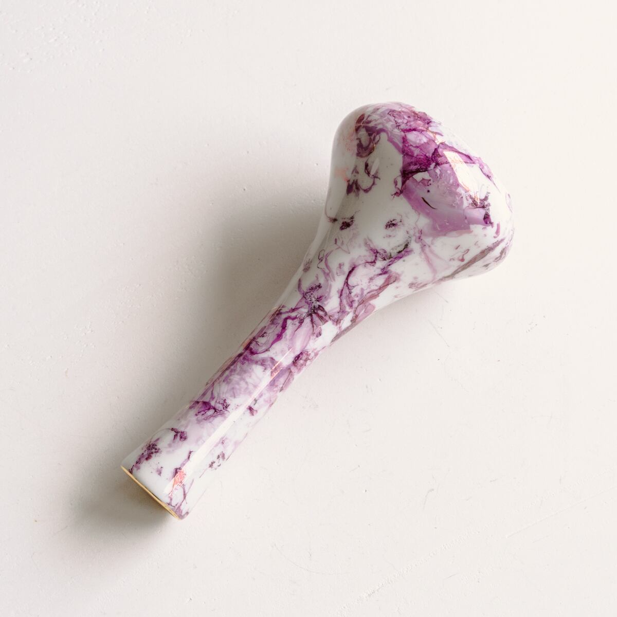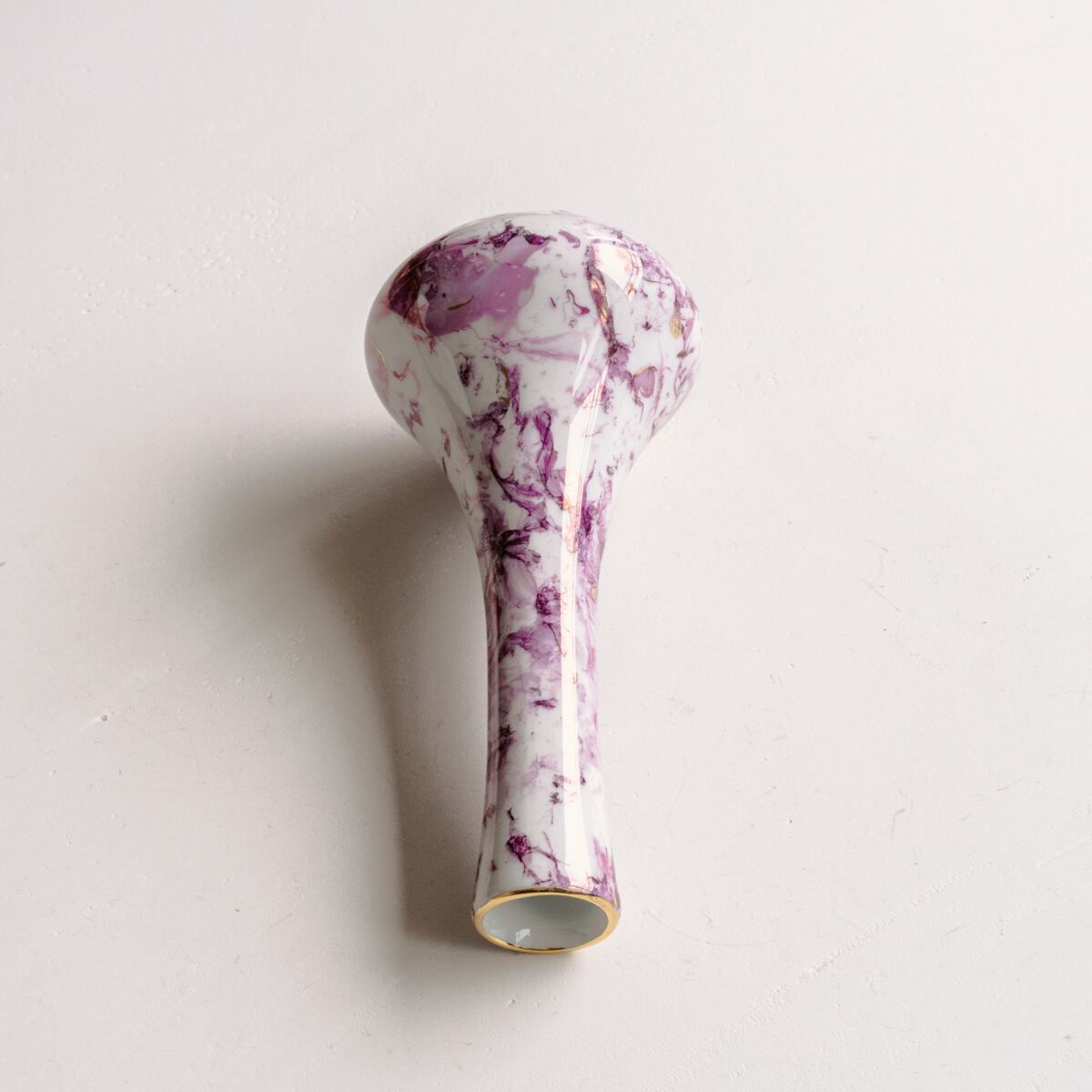 ホワイトとピンクパープルのマーブル模様、ところどころに散りばめられたゴールドが美しいデザイン。