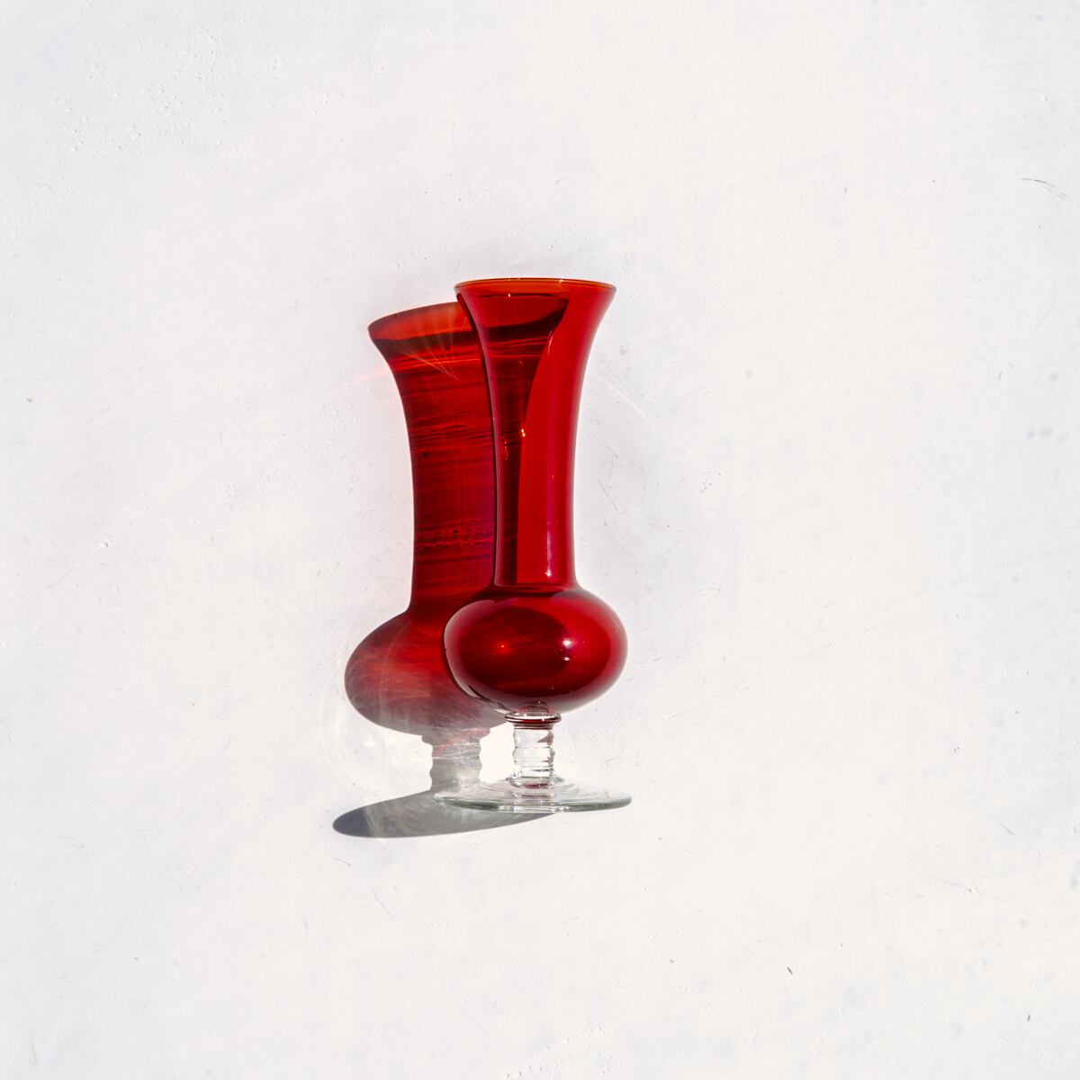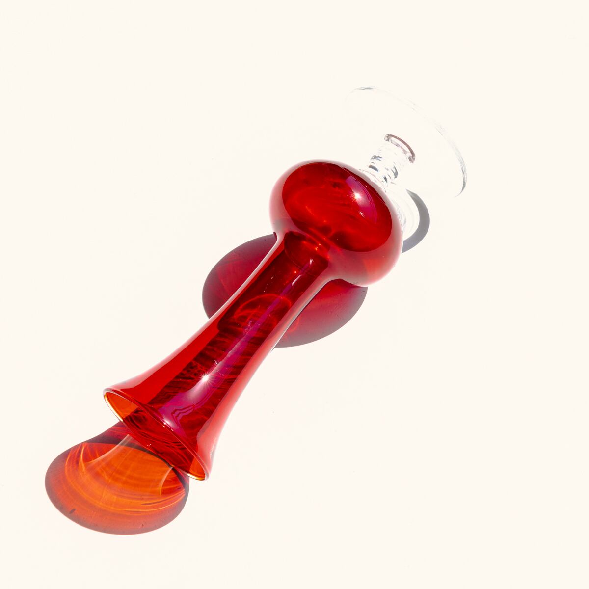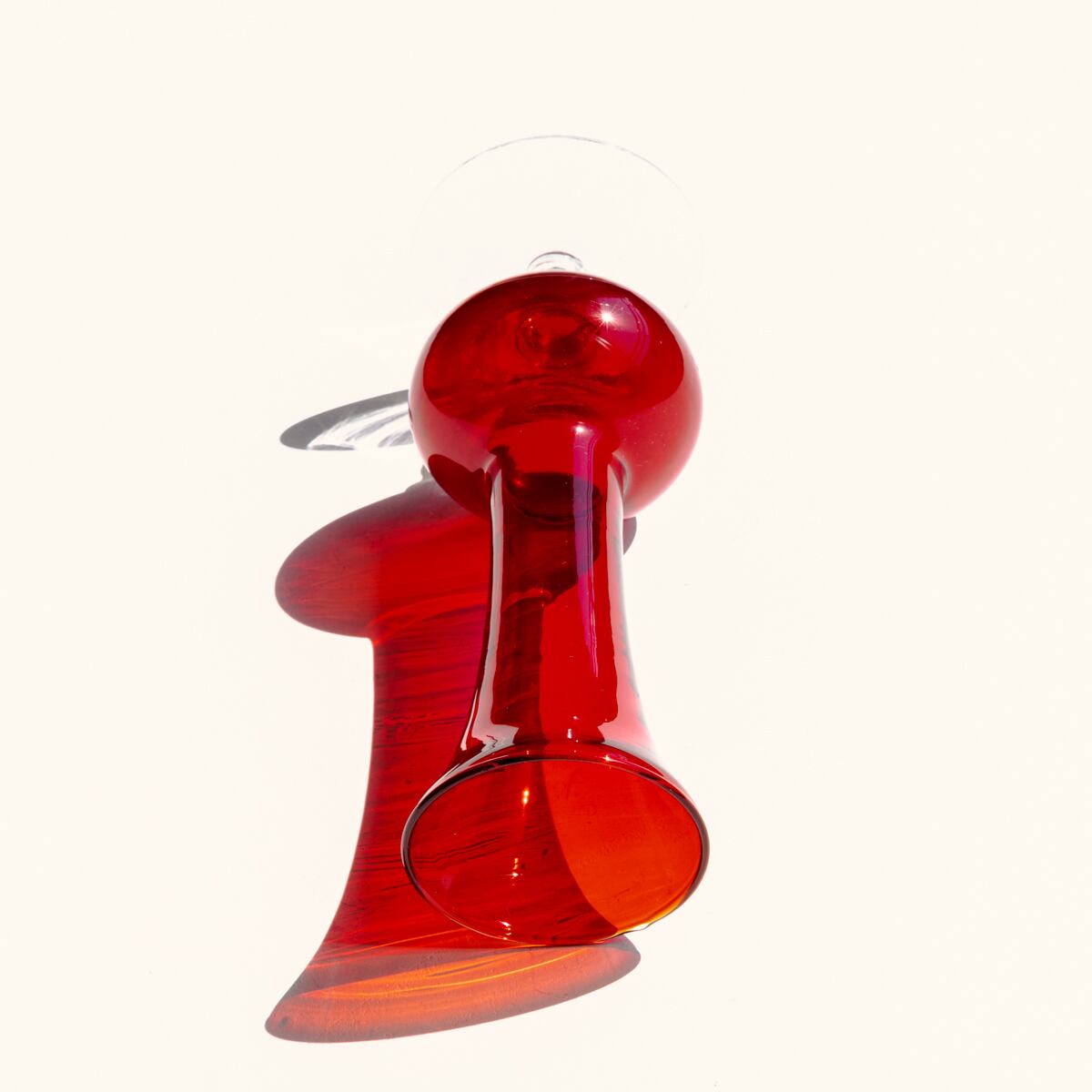 クリアガラスなので、光の当たり方によって渋めの赤〜鮮やかな赤に表情をかえて楽しませてくれます。