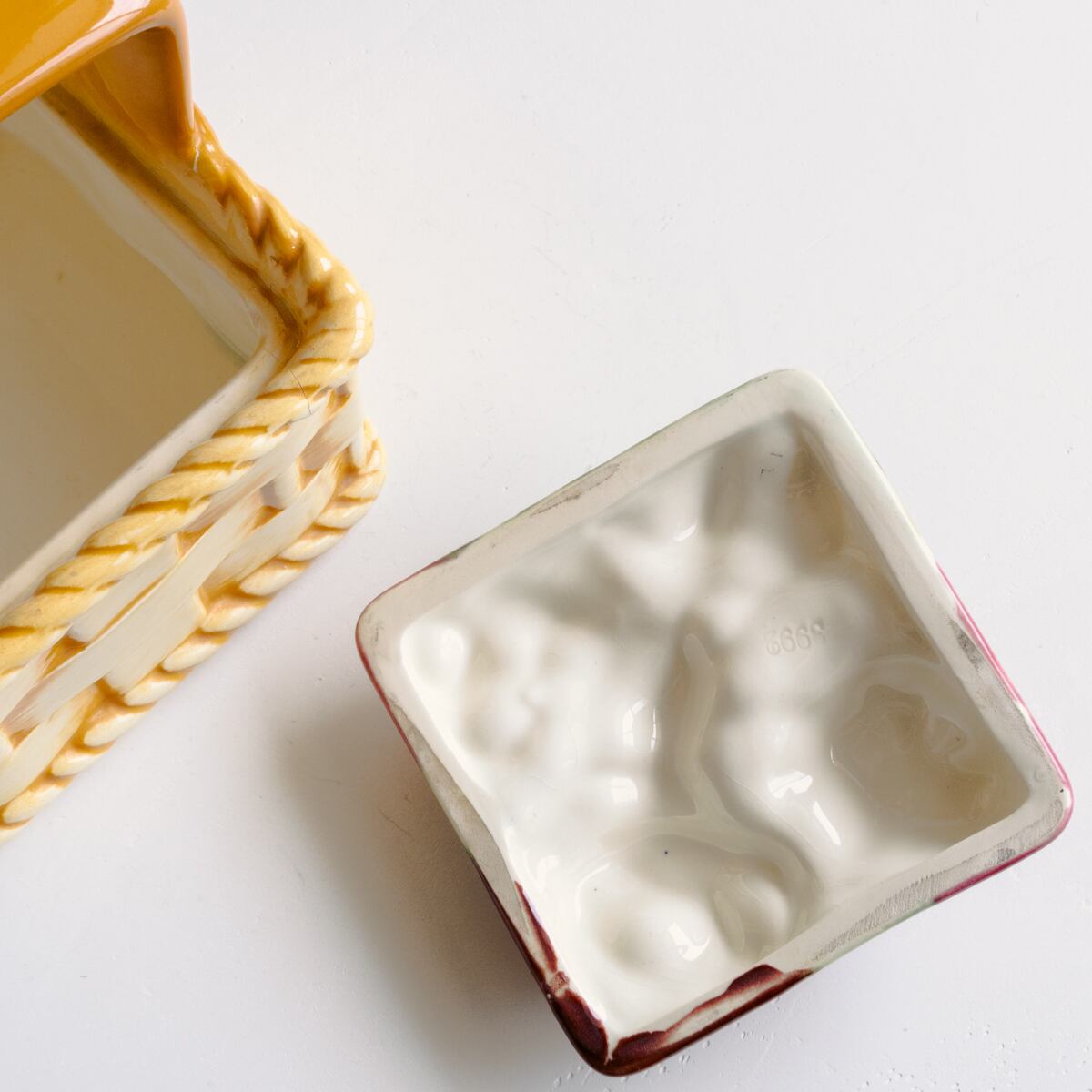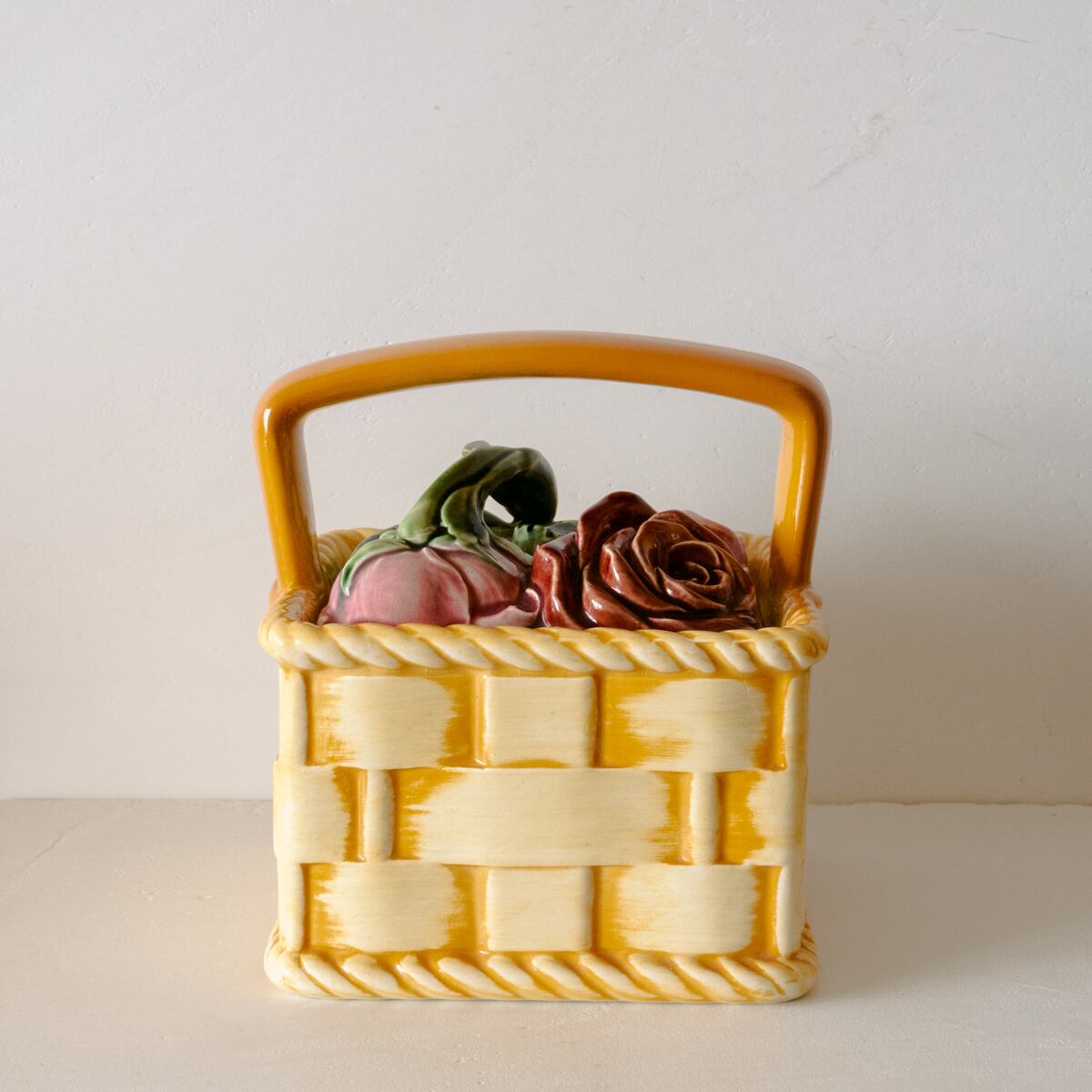 バスケットに薔薇がいっぱいに詰まったデザインで、蓋部分は取り外せるので、中に小物を入れることができます。