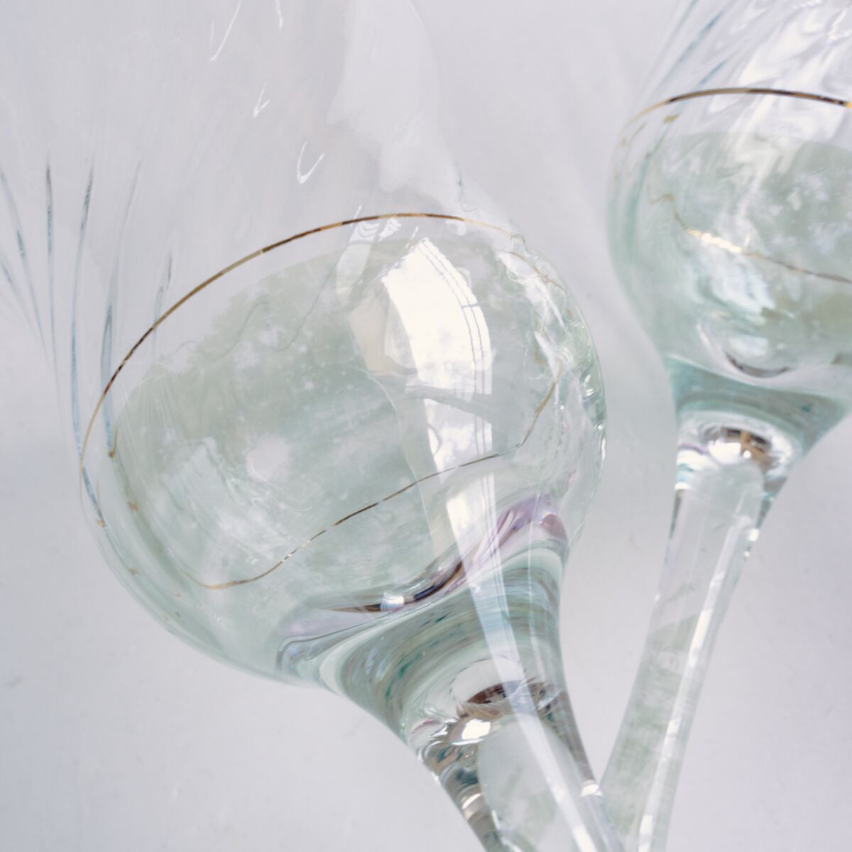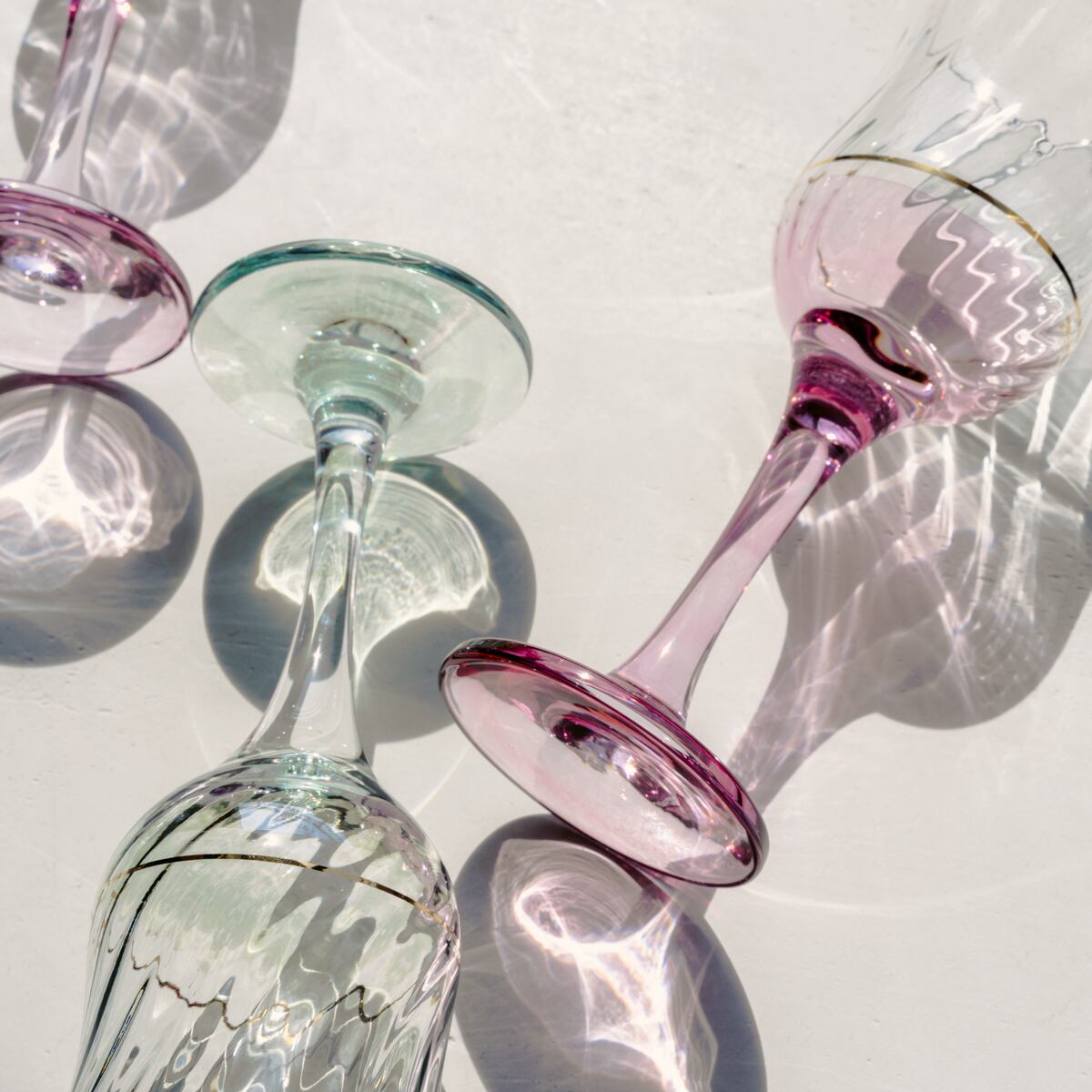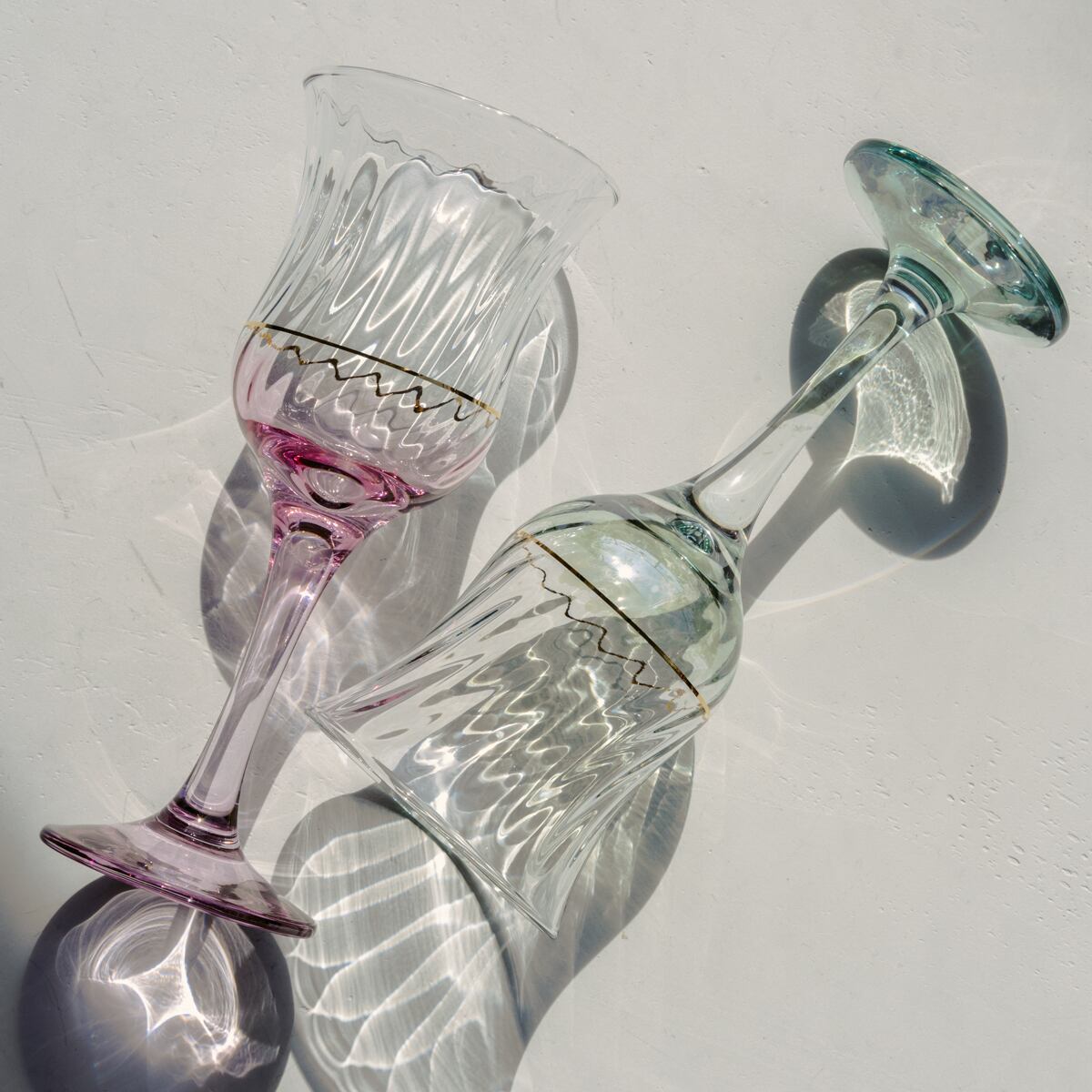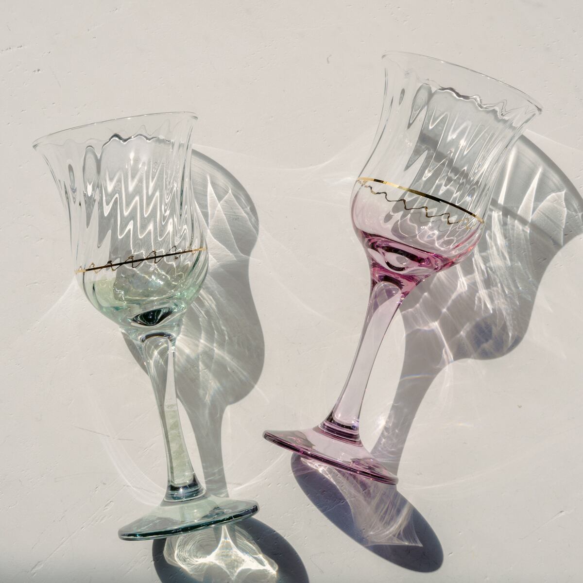 渦巻くようなガラスのデザインやグラス部分に入ったゴールドのラインが、光に当たると美しく煌めきます。