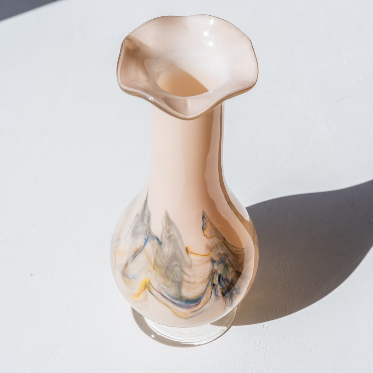 流れるように描かれた水彩模様は、イエロー・ブルー・グレーなど、様々な色に変化しながら、花器全体を彩ってくれています。