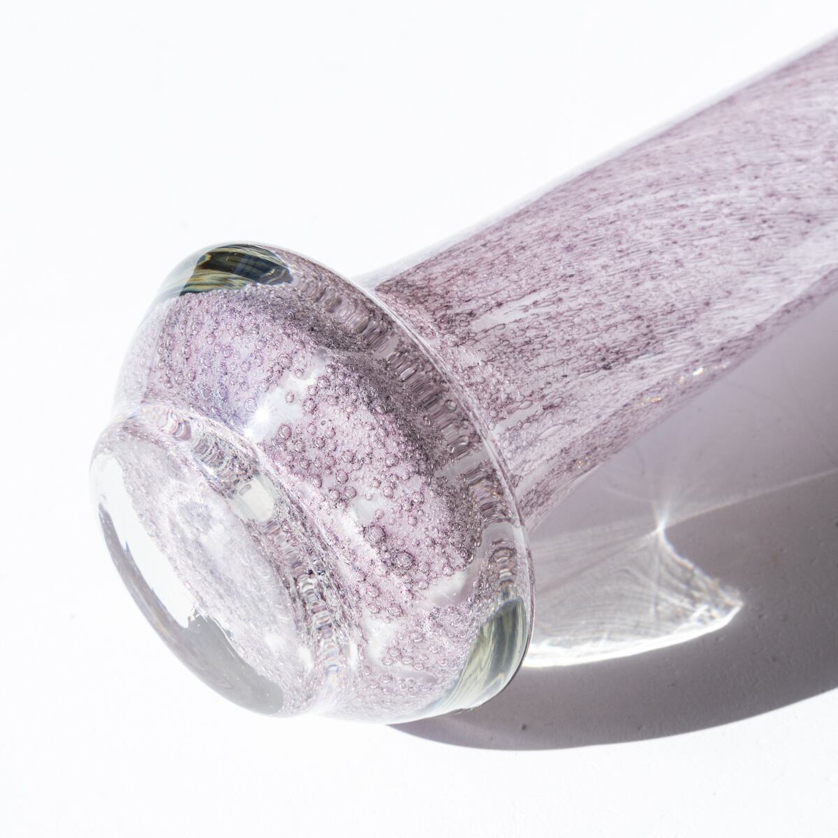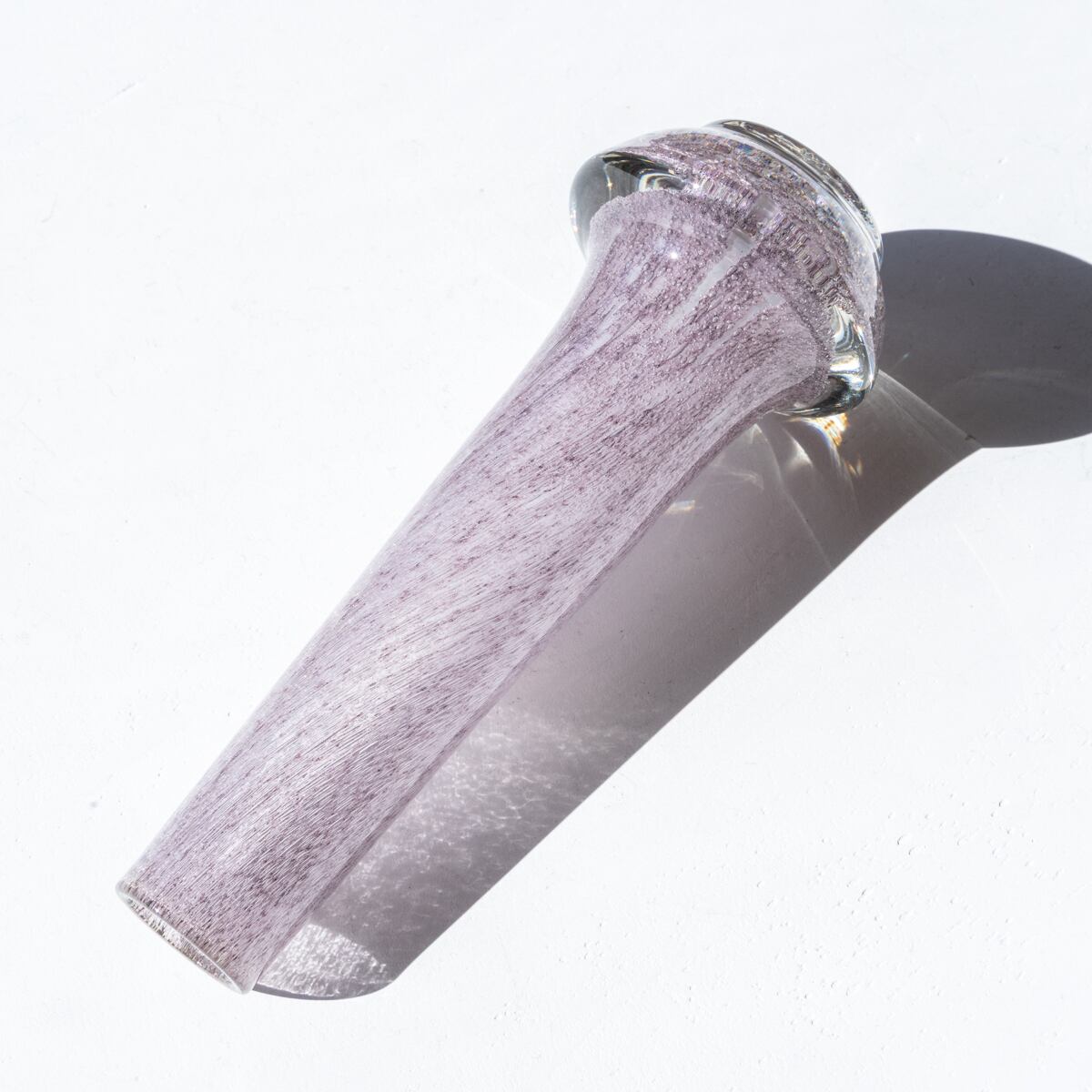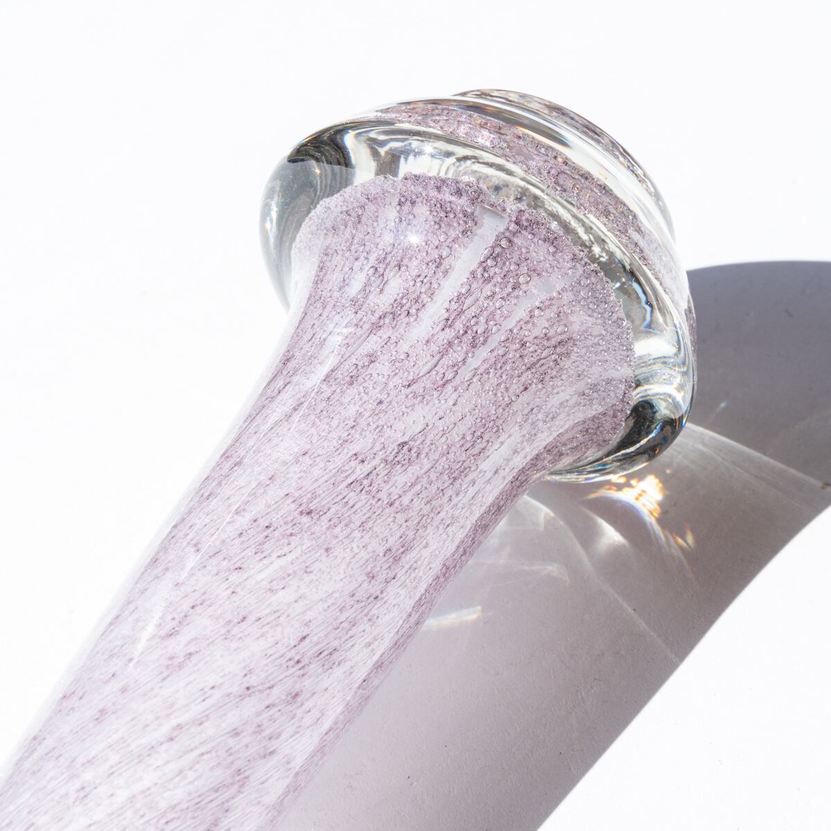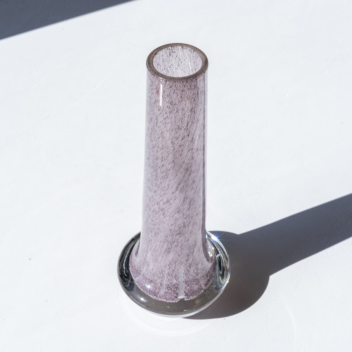 バブルとパープルの繊細な模様に彩られたスリムな花器。
