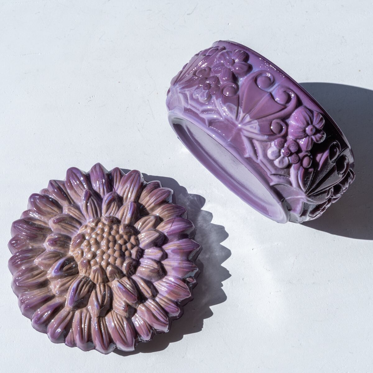 ダリアの花をモチーフにしたようなデザインで、とろみのあるミルキーパープルの色味がなんとも魅力的。