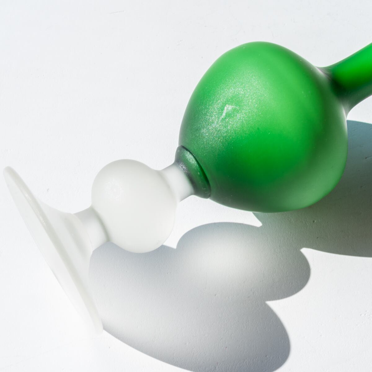 グリーンのサテンをまとったような、マットなガラスの質感が魅力的。