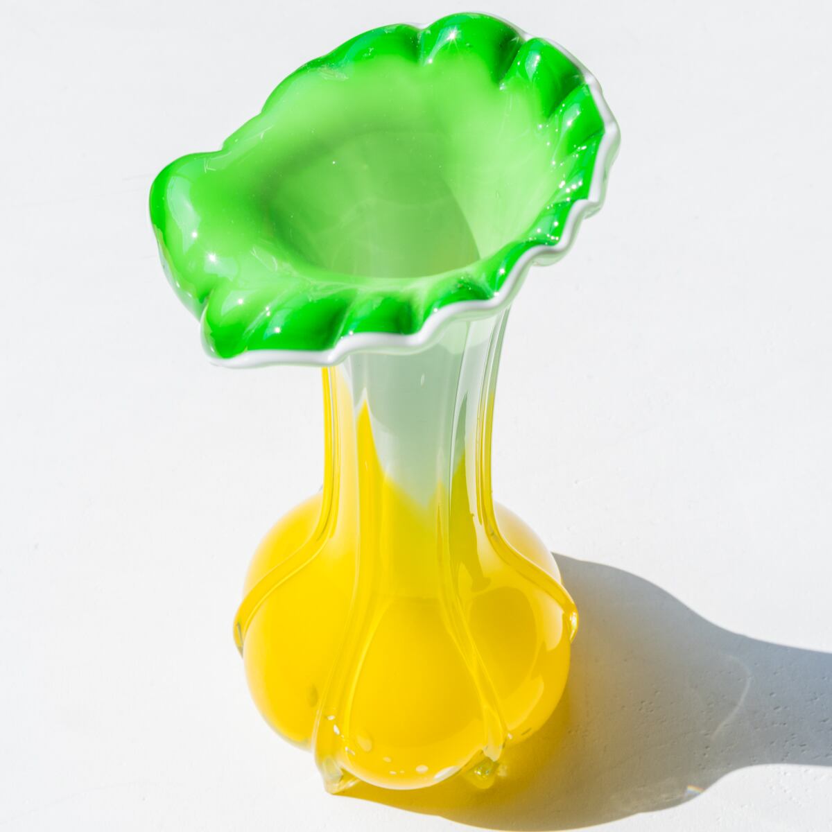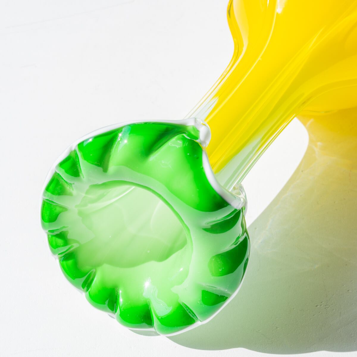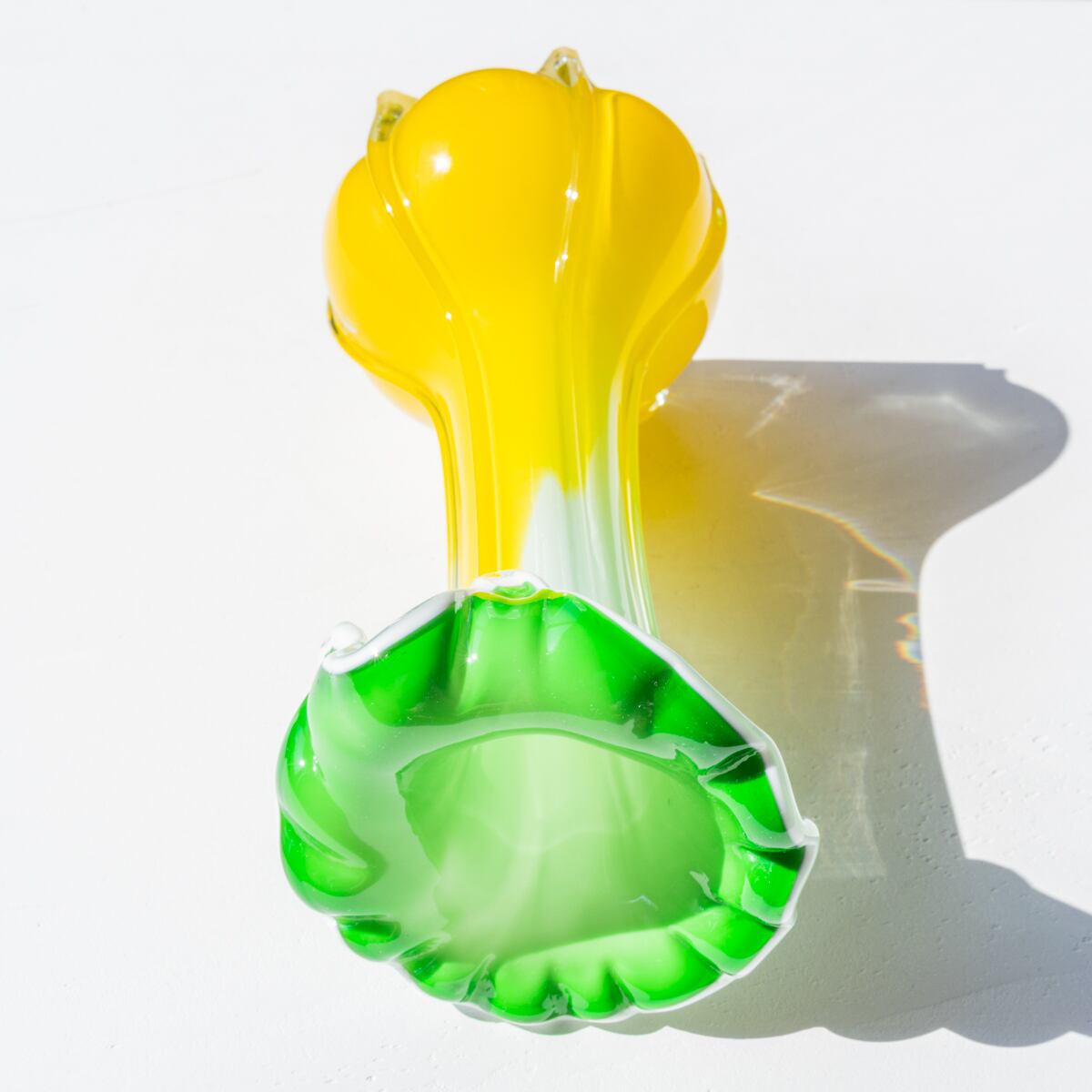 ユリの花びらのようにくるんと丸まった装飾、グリーン、ホワイト、イエローのカラーリングなど、細かなところまでこだわりが詰まっています。