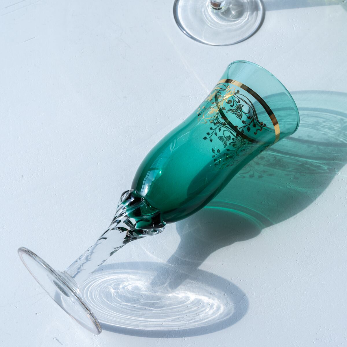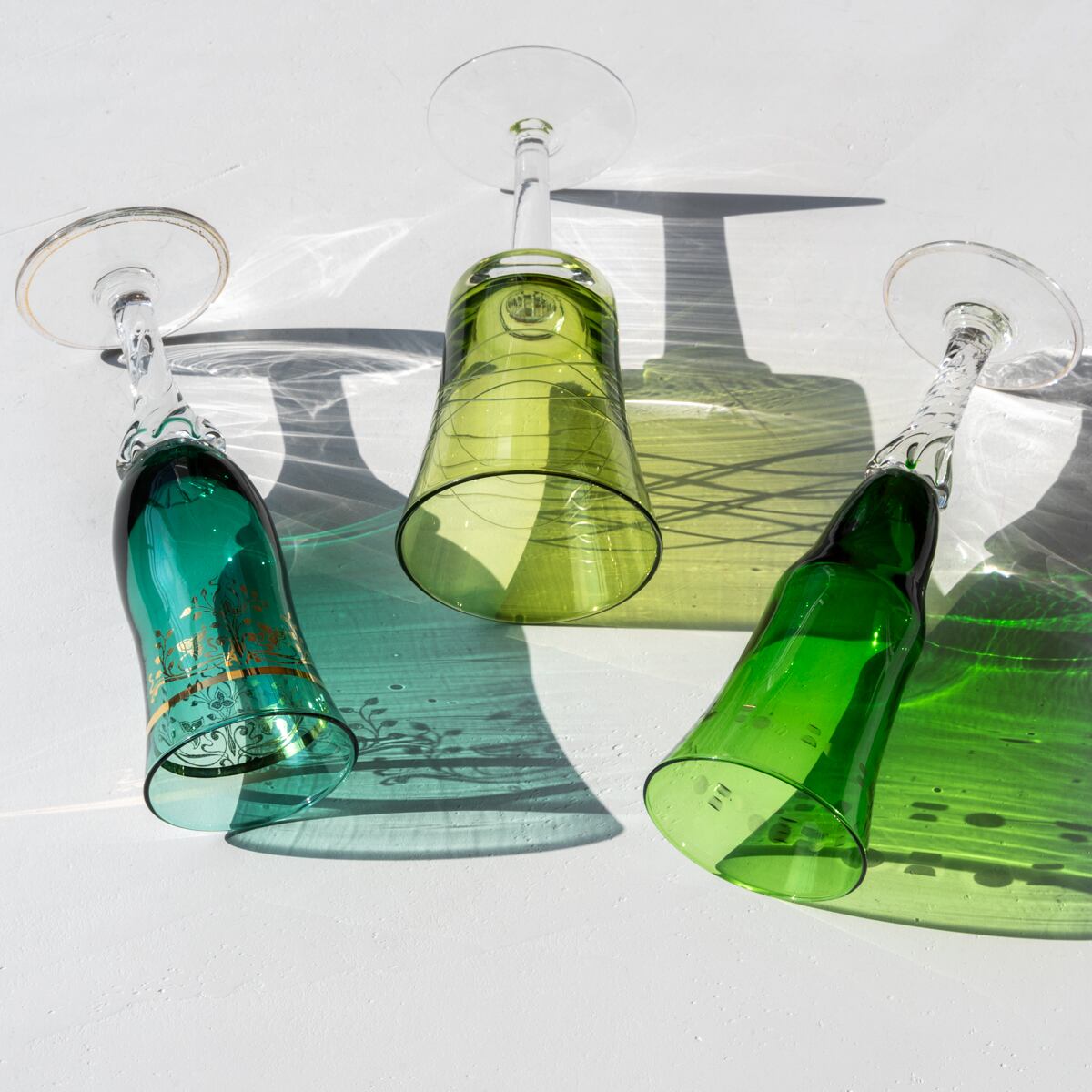 エメラルドグリーン、イエローグリーン、フォレストグリーンと、緑の色合いがどれも印象的なグラスたち。