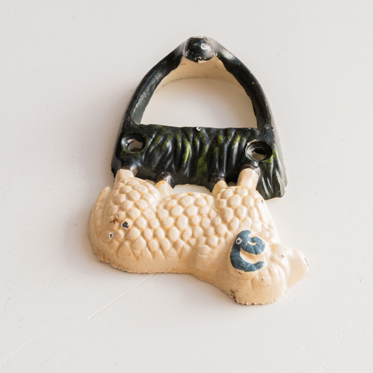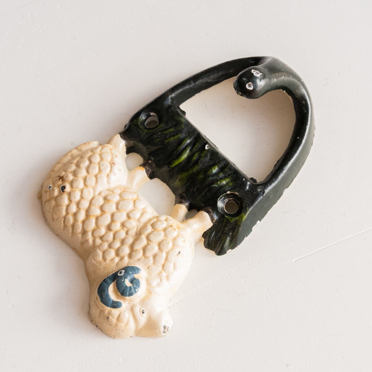 ひつじをモチーフにした鋳鉄製の壁付けフック。