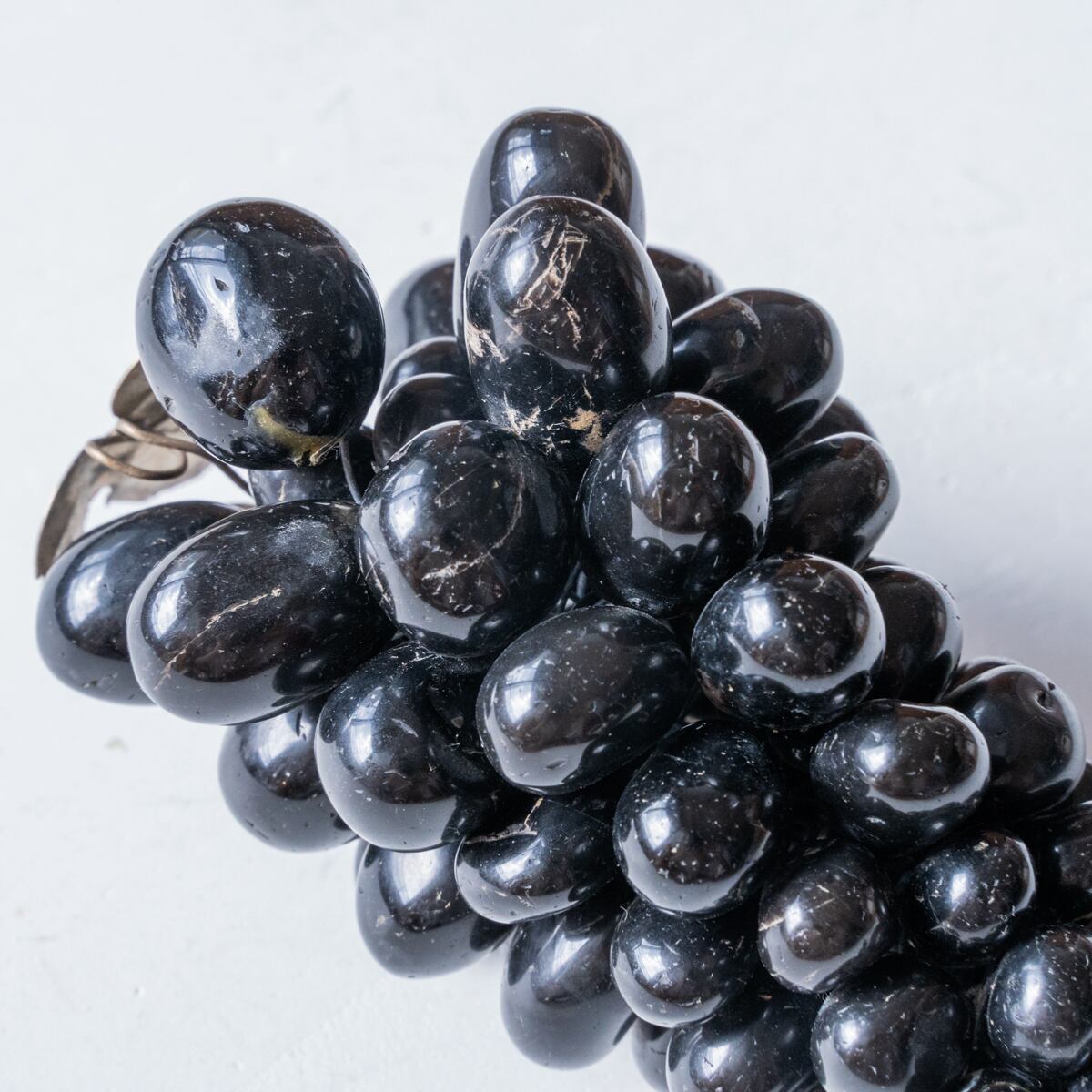 葡萄の粒はブラックのオニキスの美しさを生かしてみずみずしく表現され、葉は葉脈の表情まで彫り込まれています。