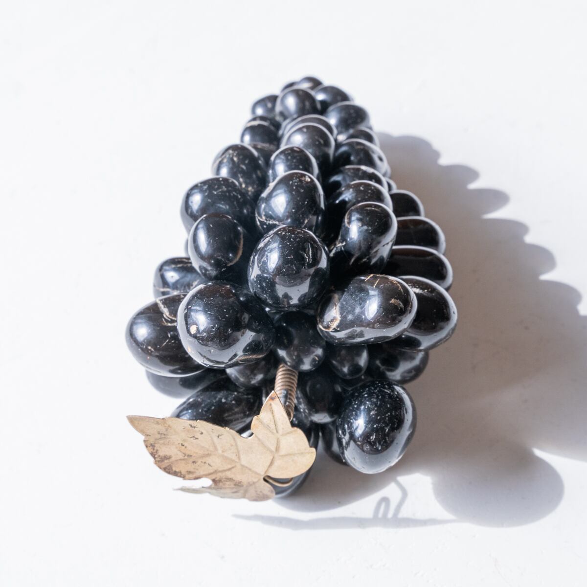 石の一つひとつが、針金でつくられた房に固定されて、この素晴らしい葡萄の形を保っています。