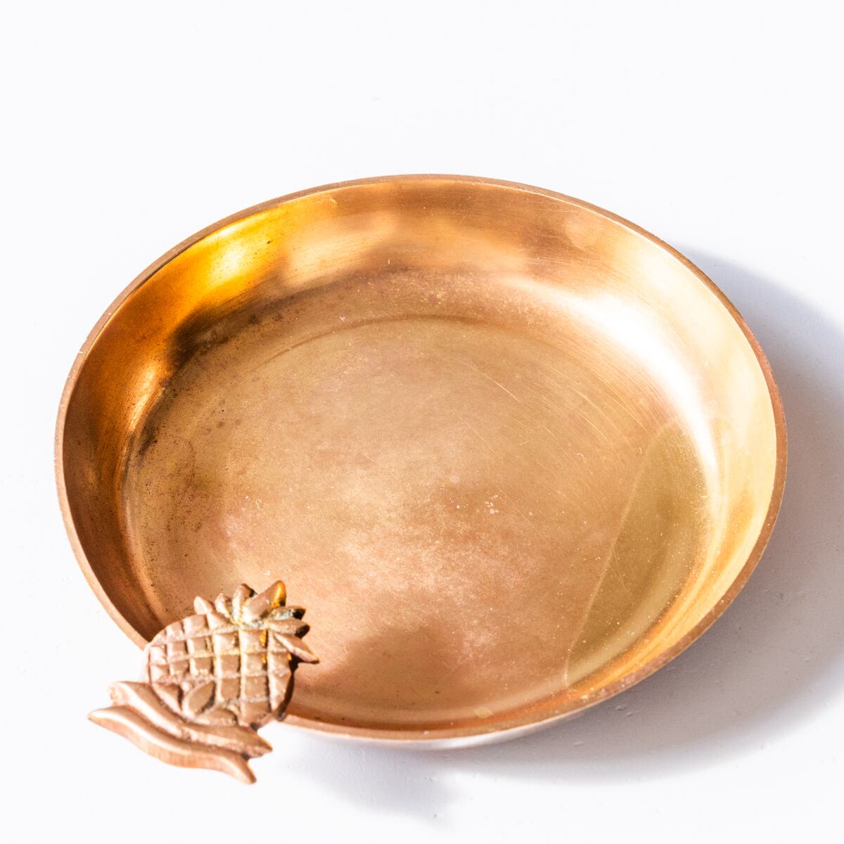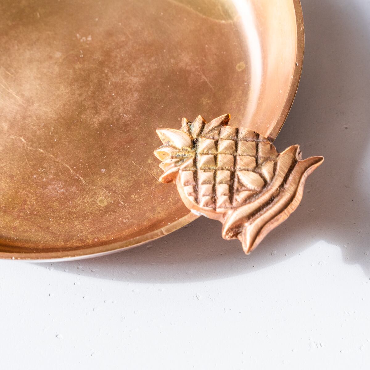 パイナップルがのっている円形のデザインで、真鍮の味わい深さが魅力的なアイテム。