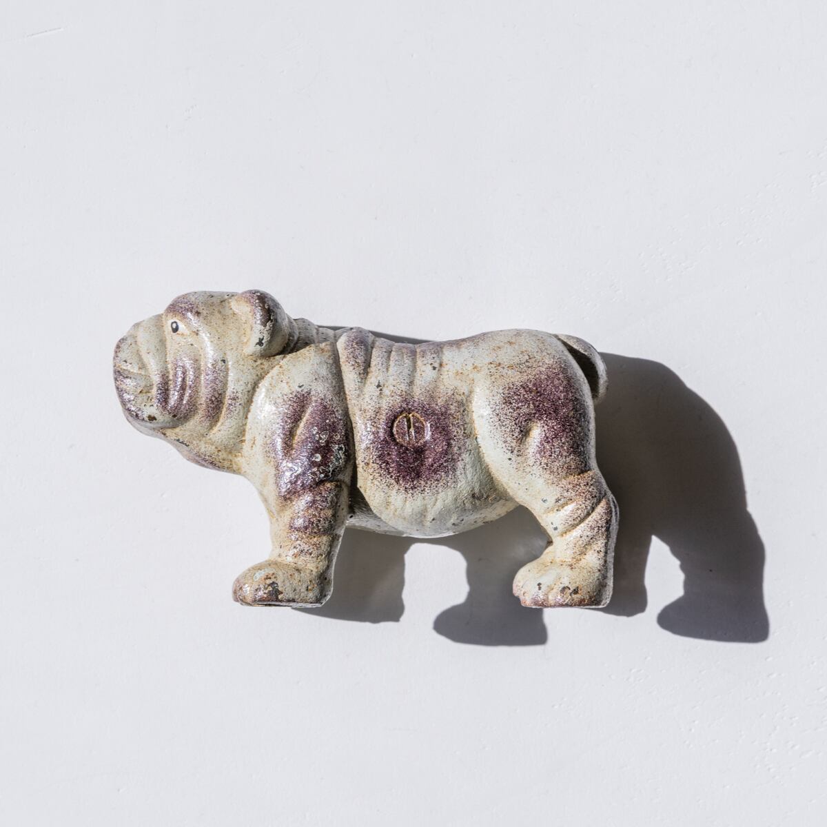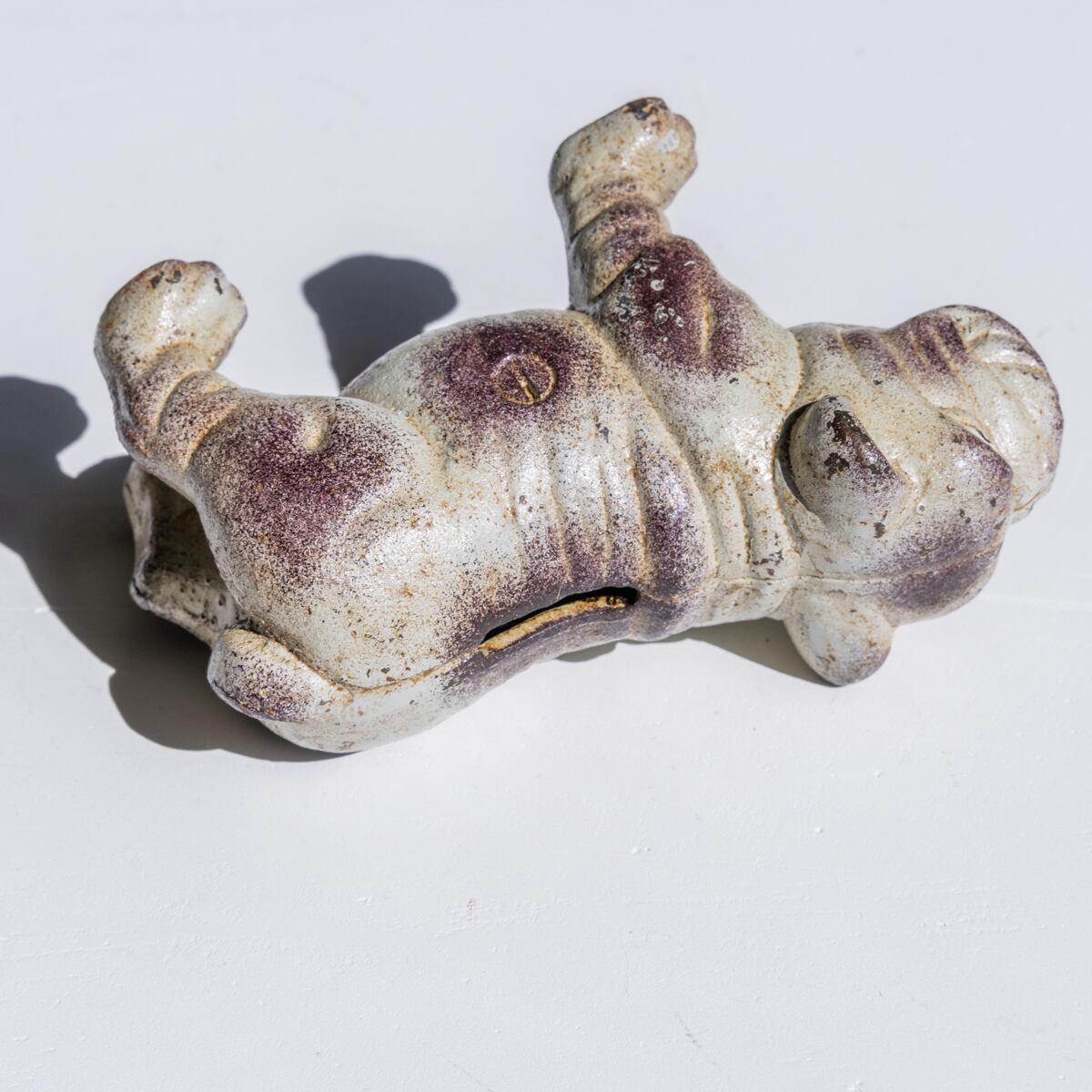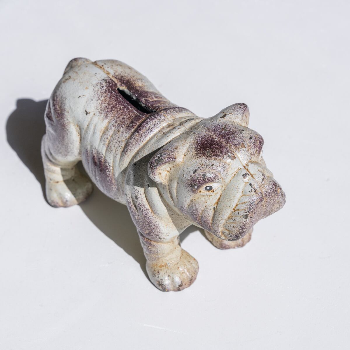 フランスから届いた1980年代頃の鋳鉄製ブルドッグ貯金箱。