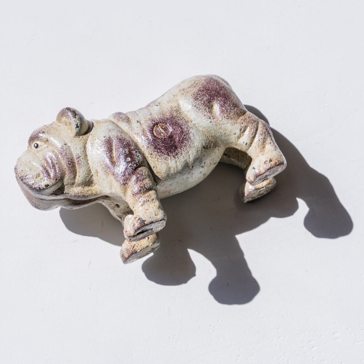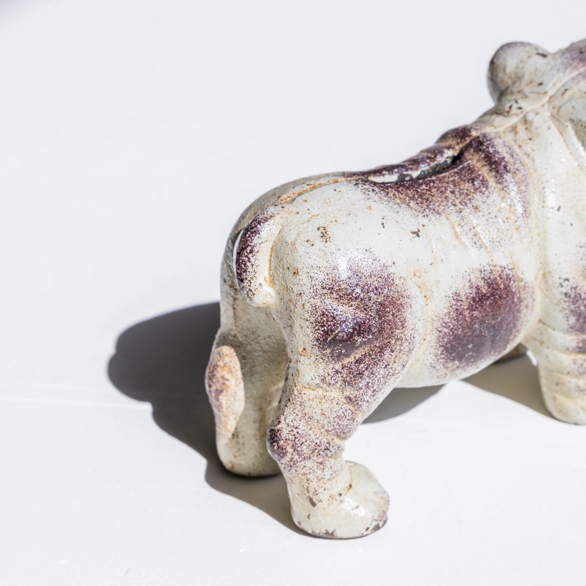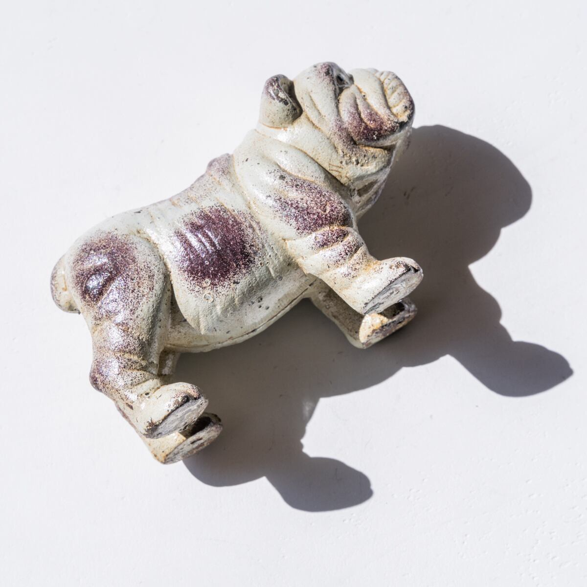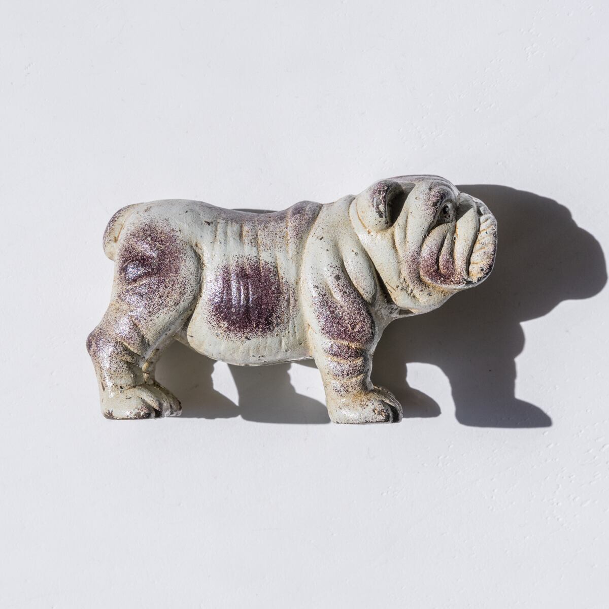 フランスから届いた1980年代頃の鋳鉄製ブルドッグ貯金箱。