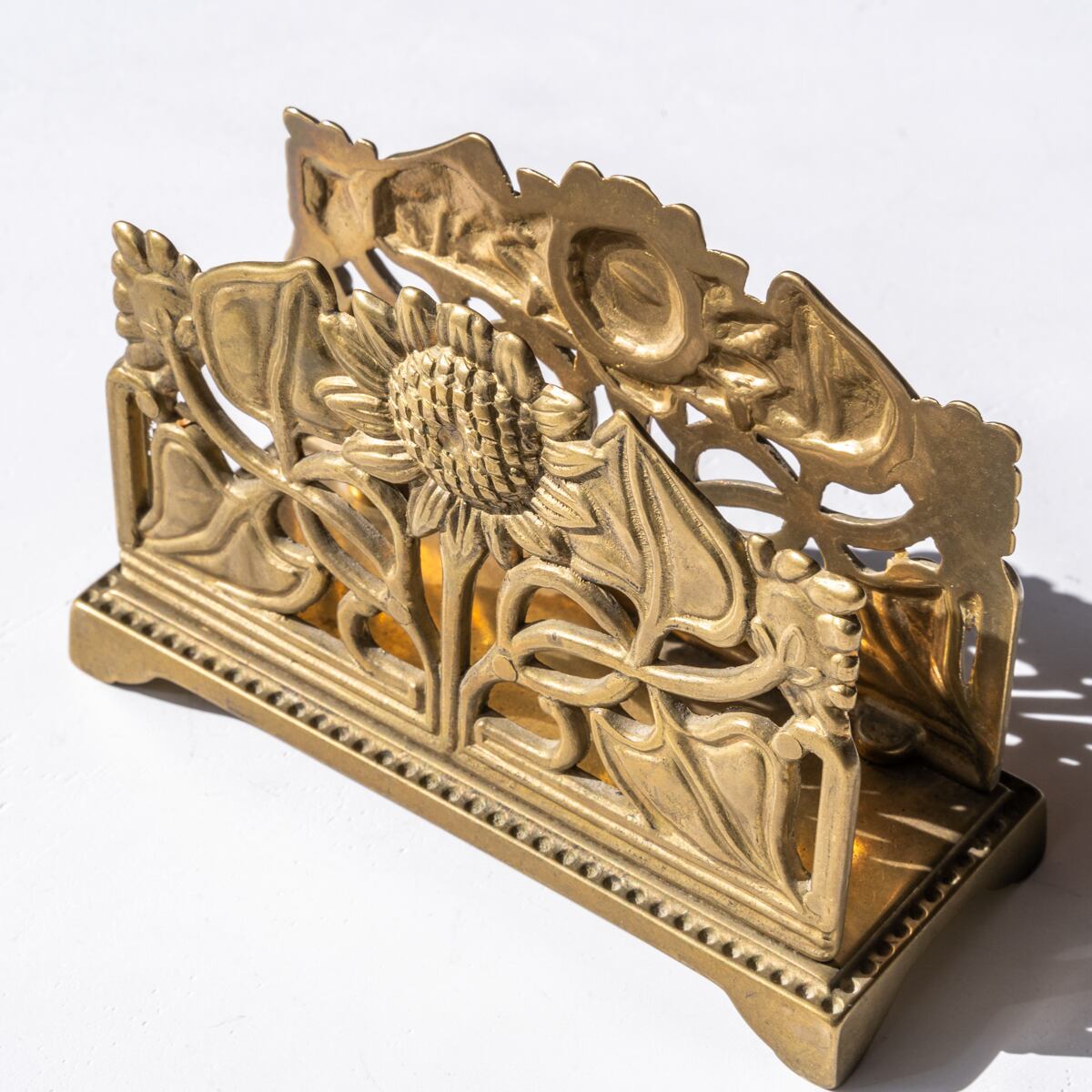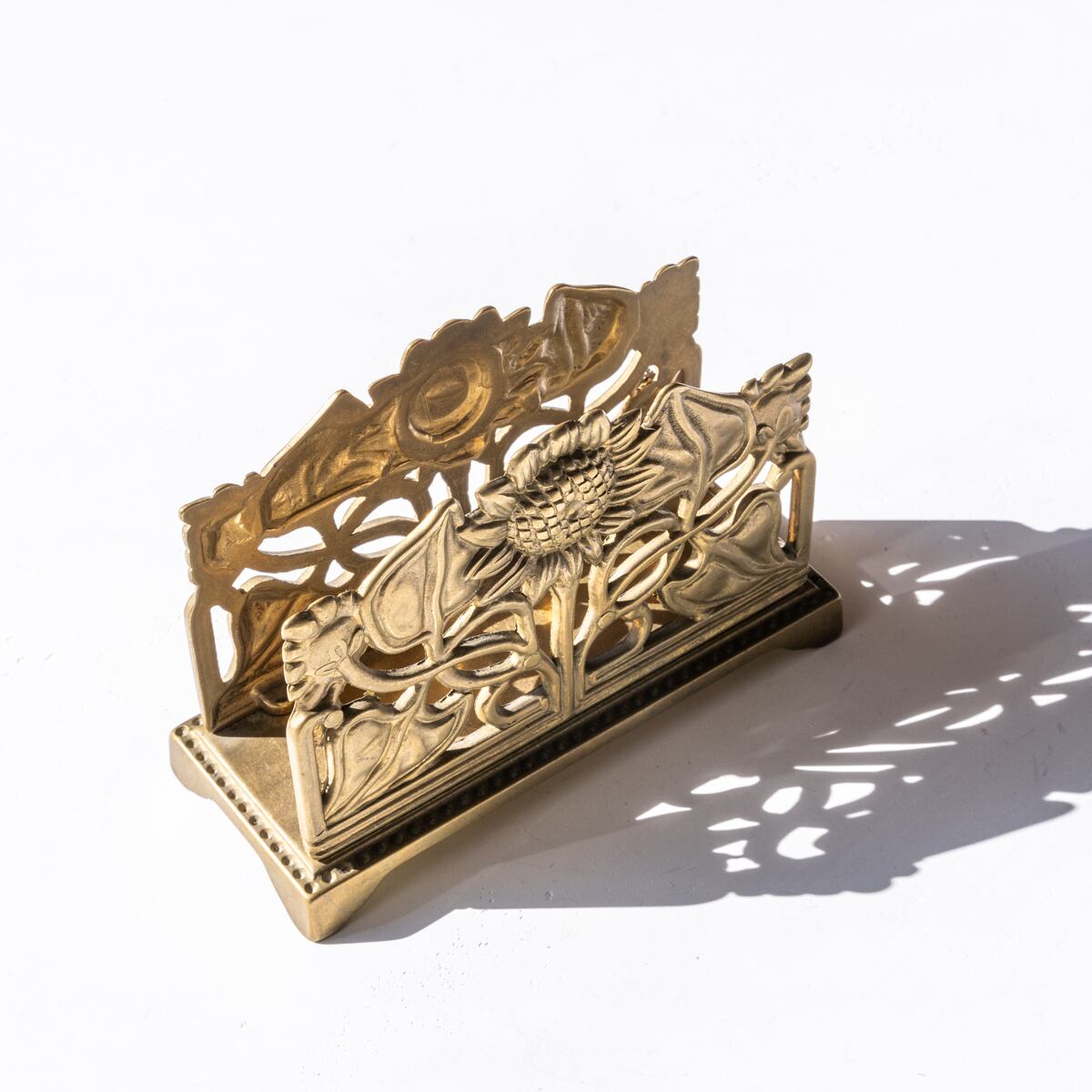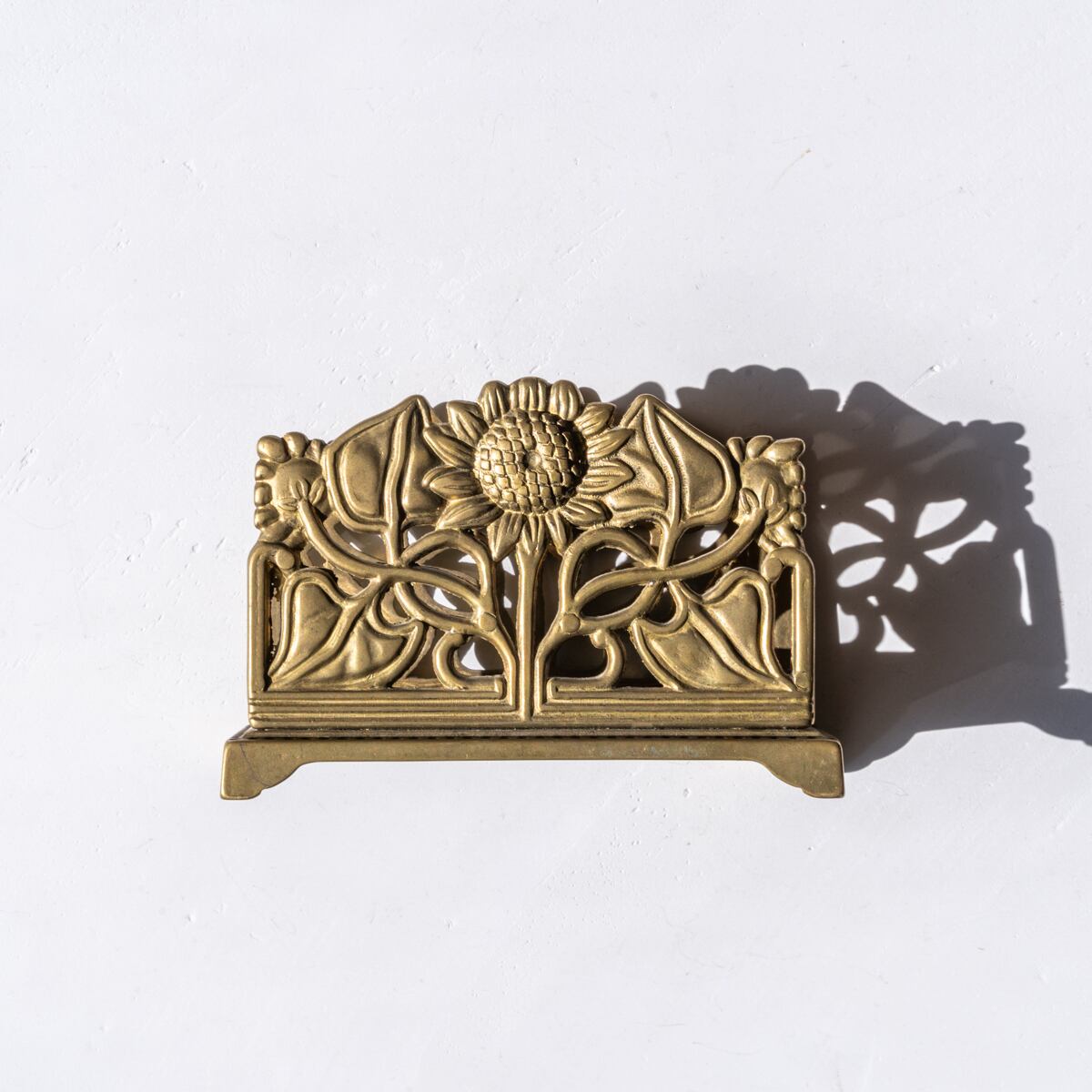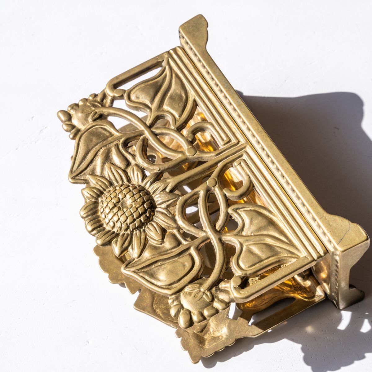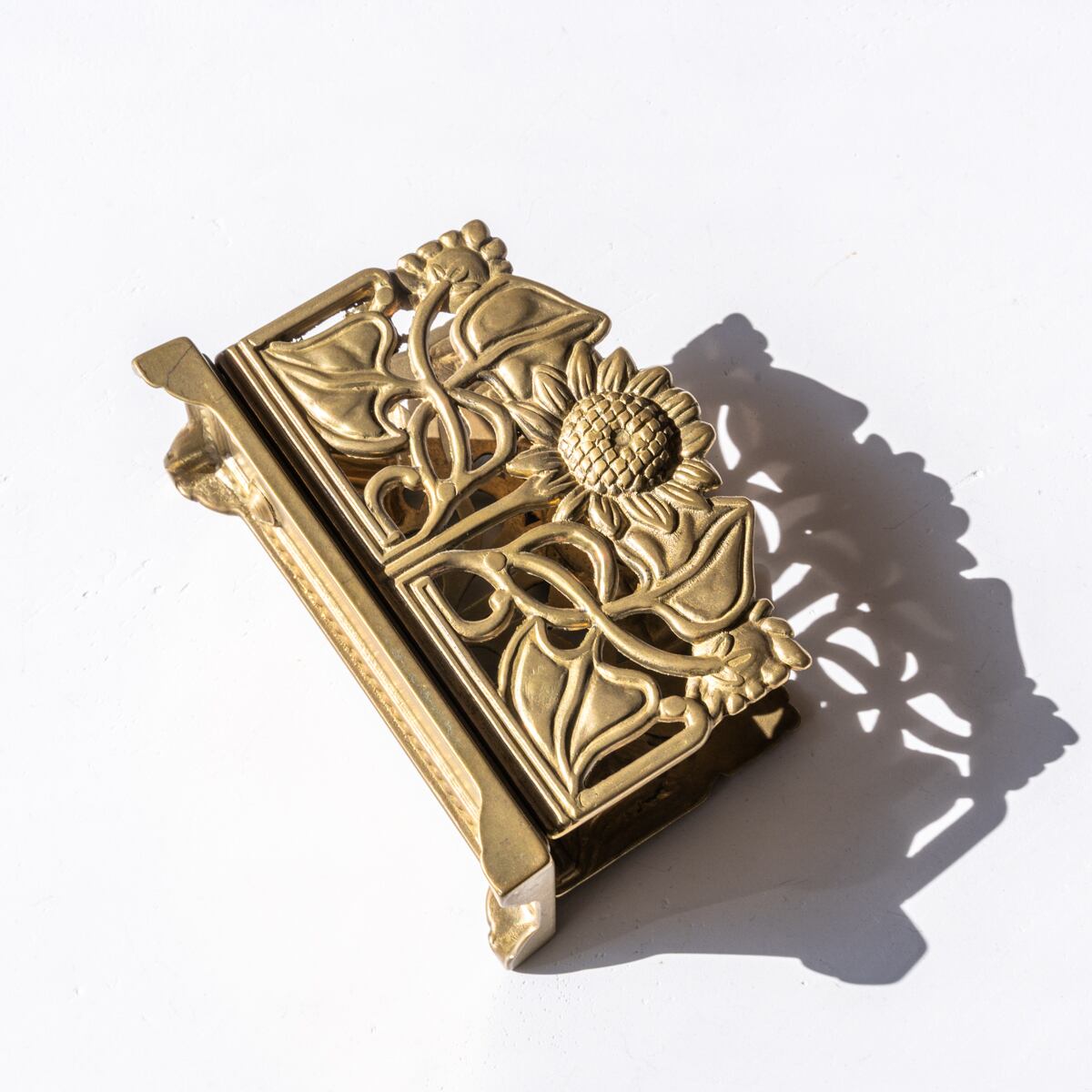 ひまわりの花をモチーフにつくられた、真鍮の味わい深さが魅力的なアイテム。