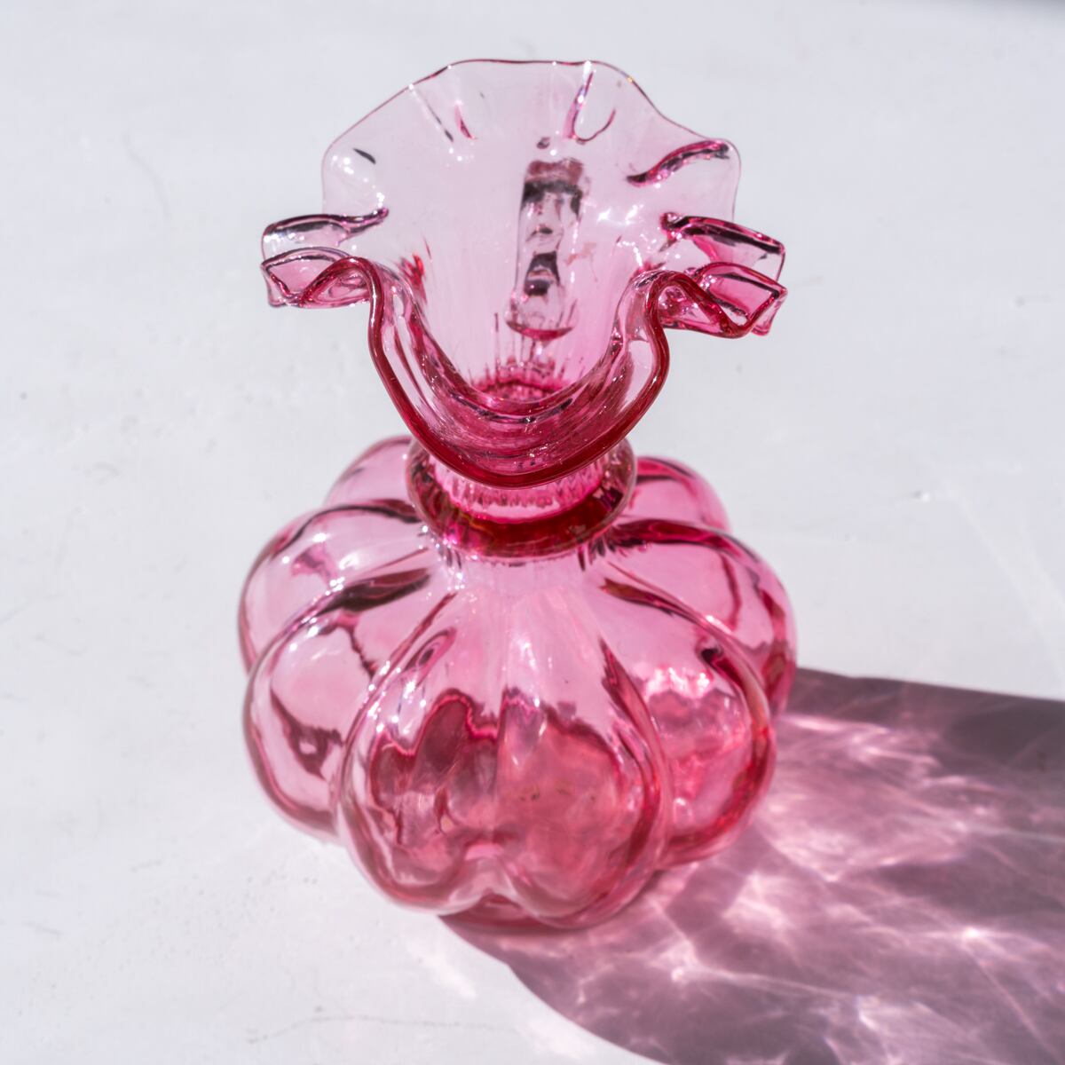 フェントンらしいクランベリーカラーが目を惹く、美しいアートガラス。
