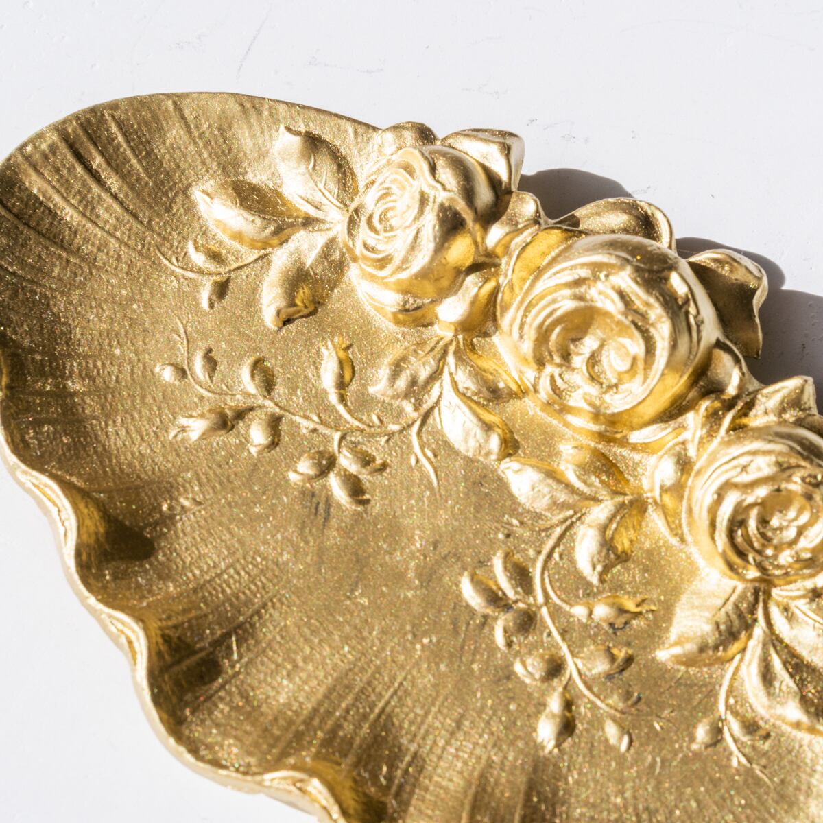 貝殻のようなシルエットに、ぷっくりと立体的な薔薇の装飾が印象的なアイテム。
