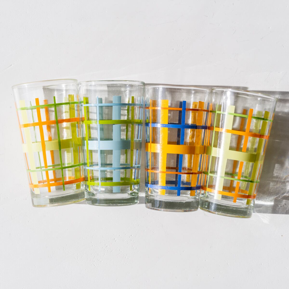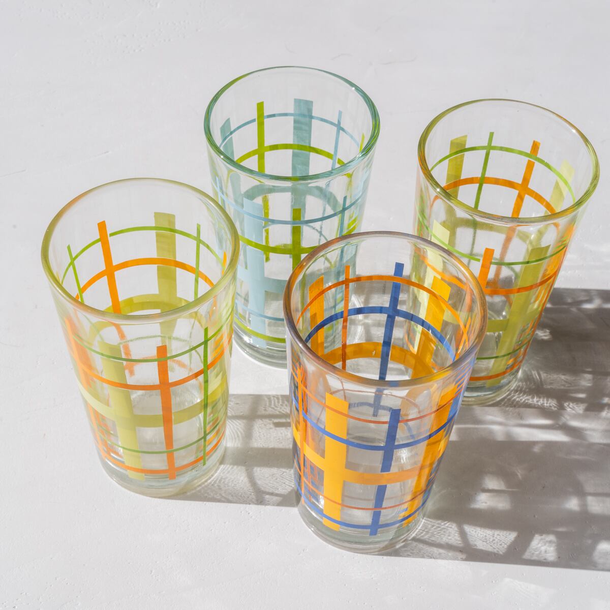 ホリデー気分満開のチェック柄のグラスはとても可愛らしくてレトロ。