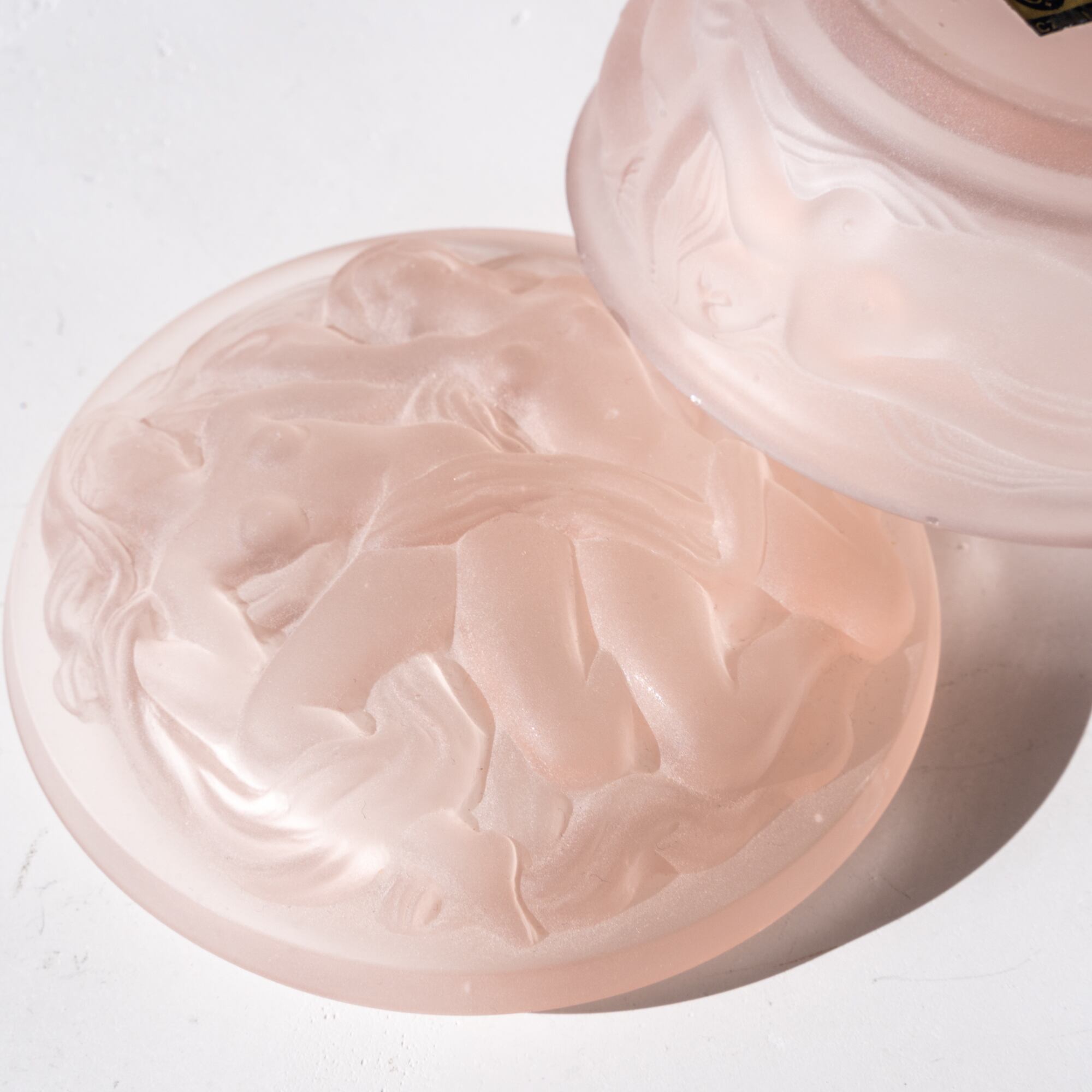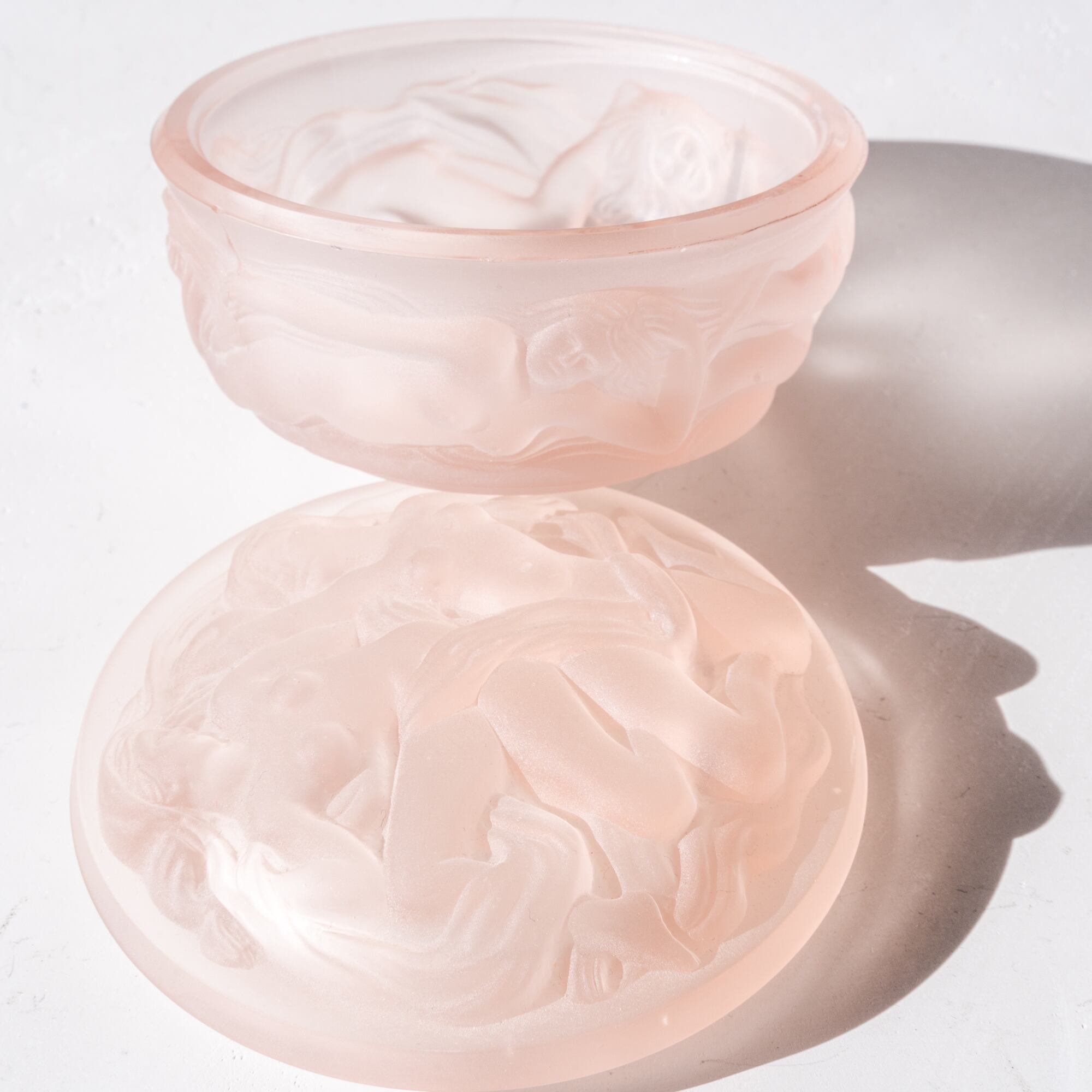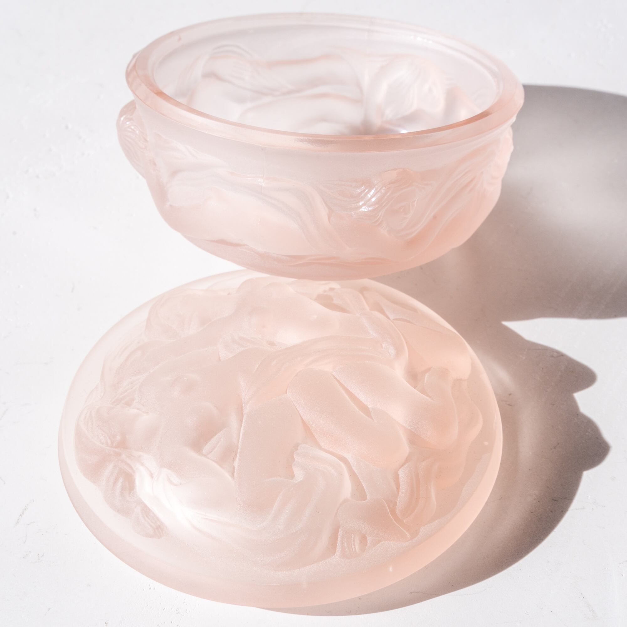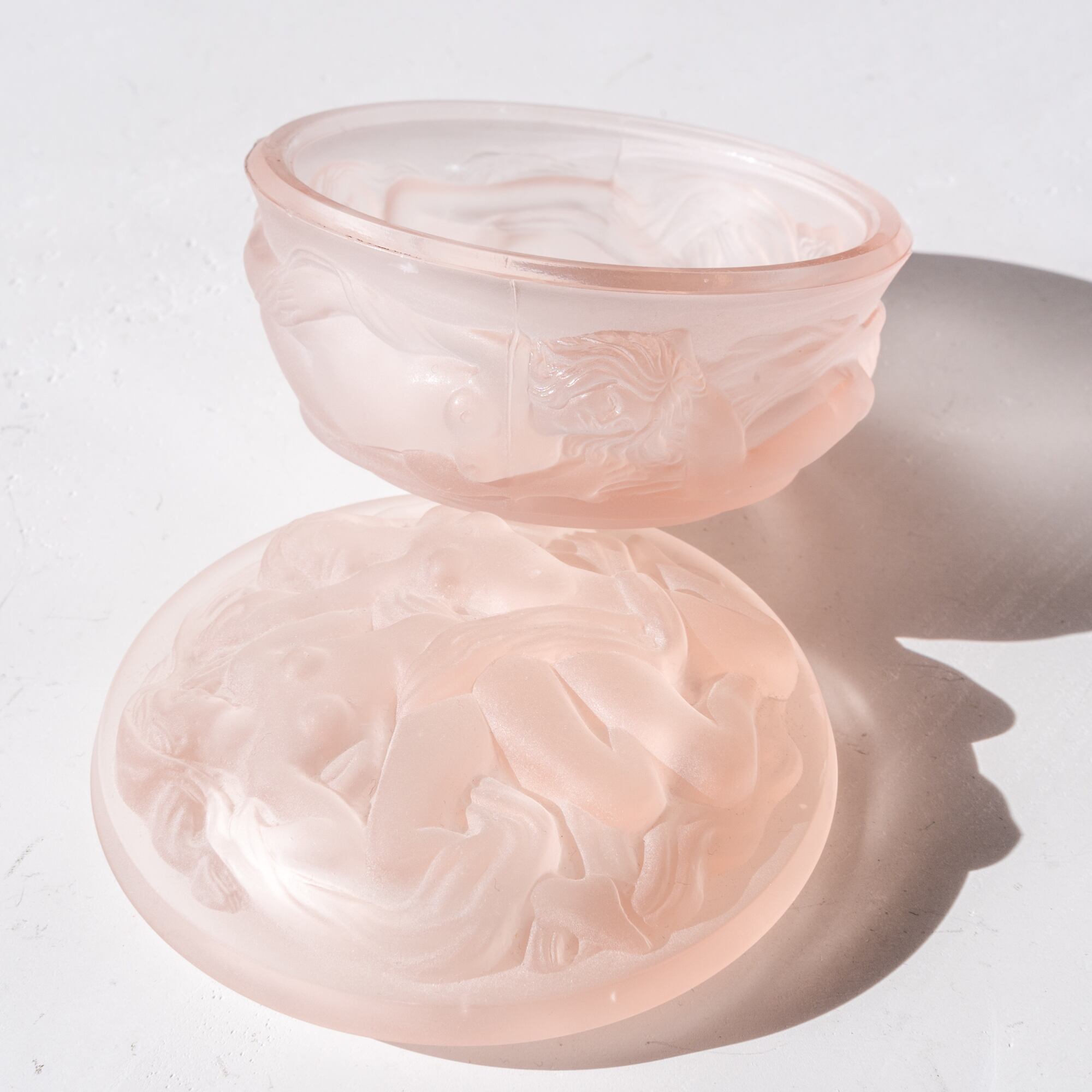 マットなピンクが愛らしく、全面に彫り込まれた装飾も魅力的。