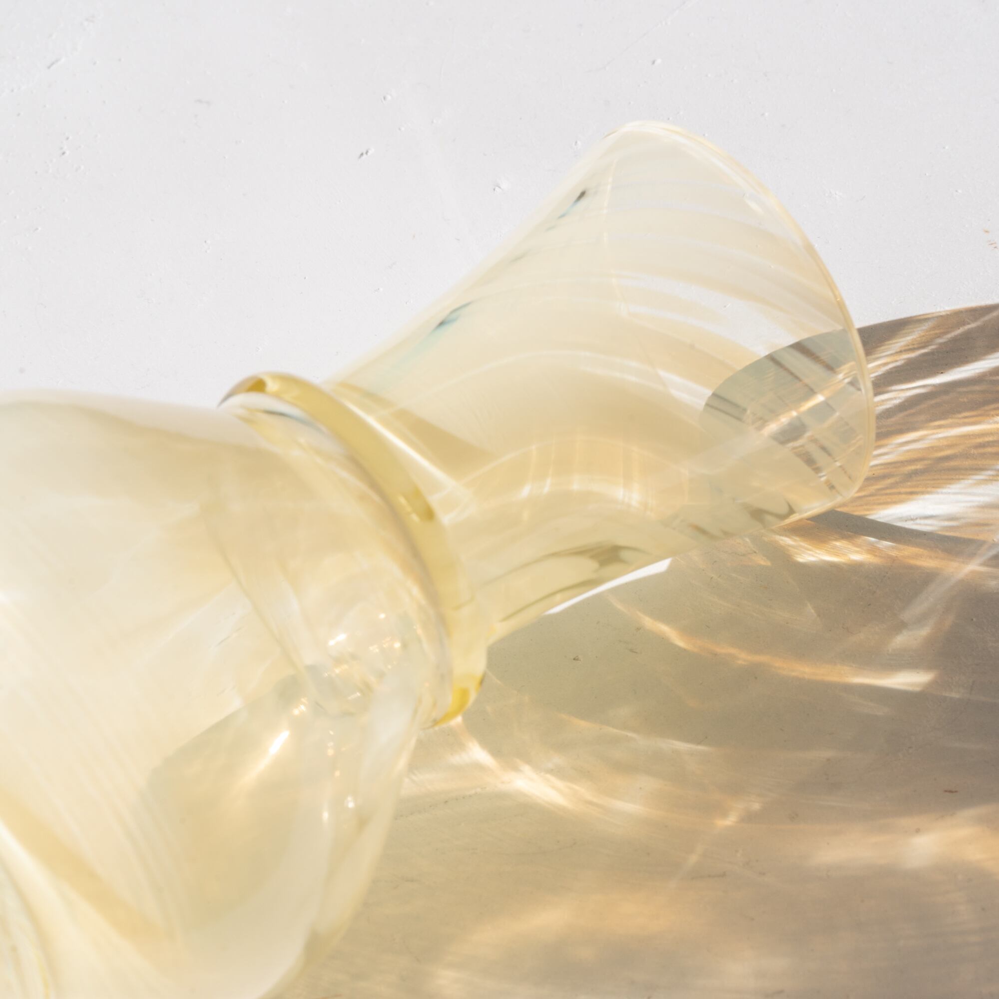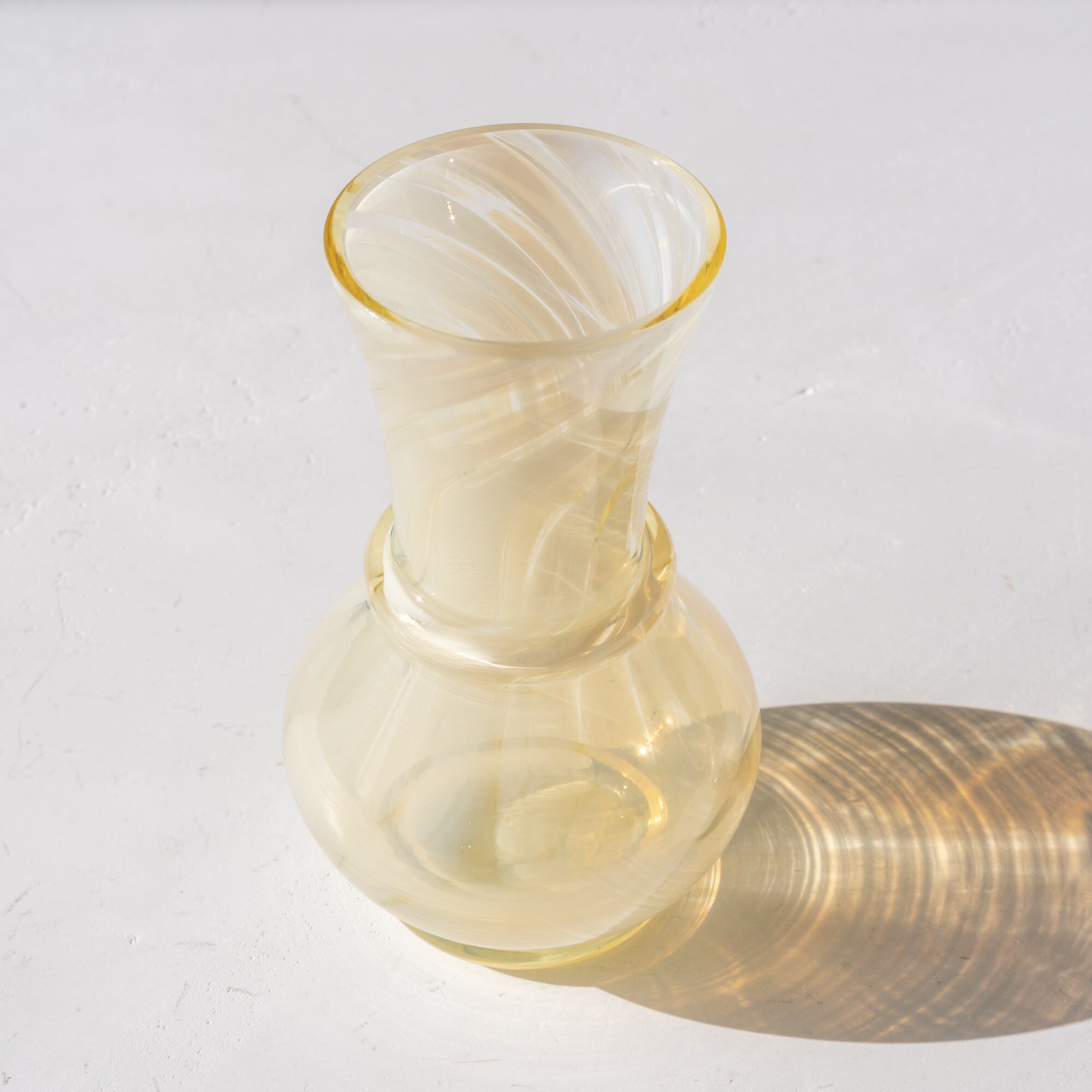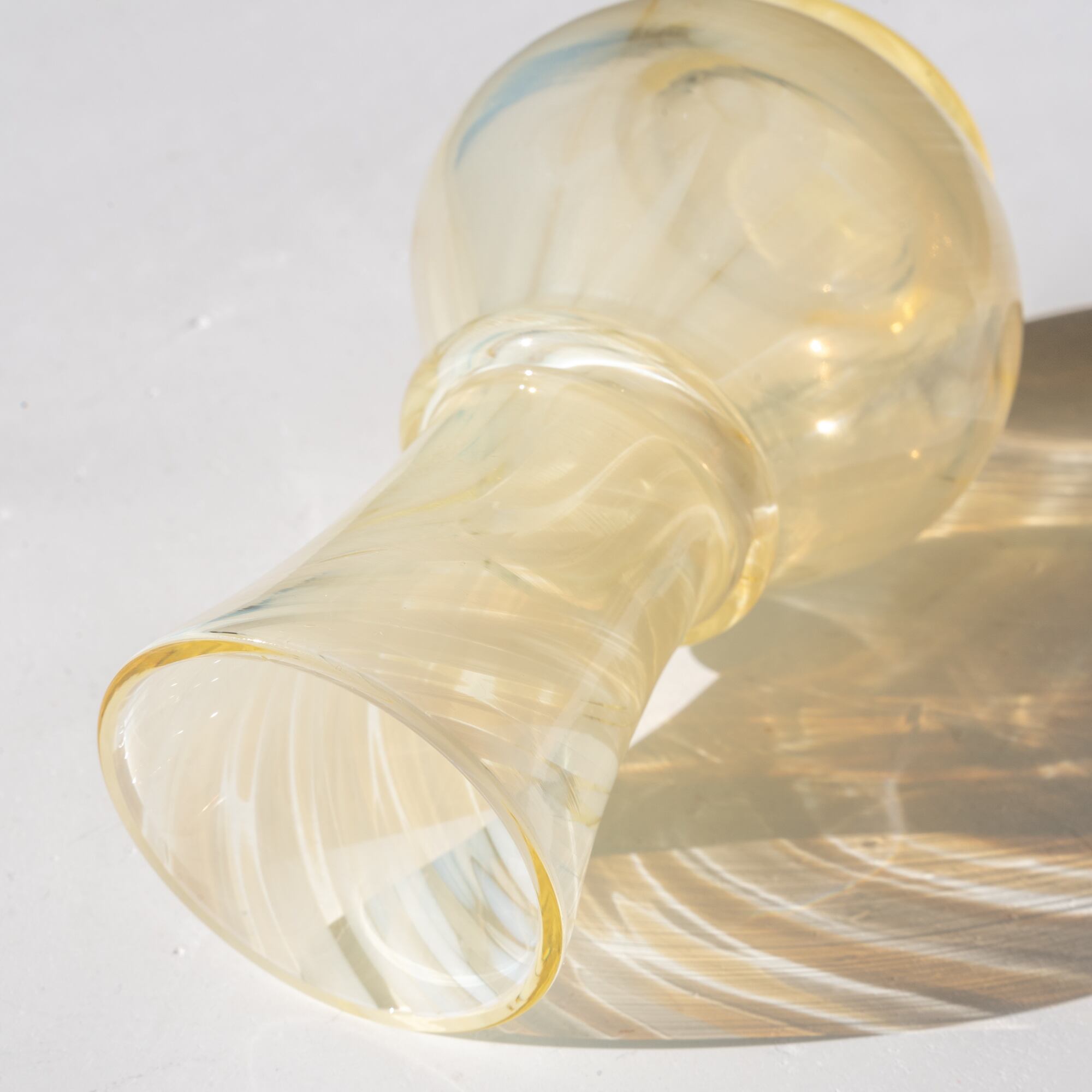 イエローがかったクリアなガラスに、ホワイトのマーブル模様が広がる美しいデザイン。