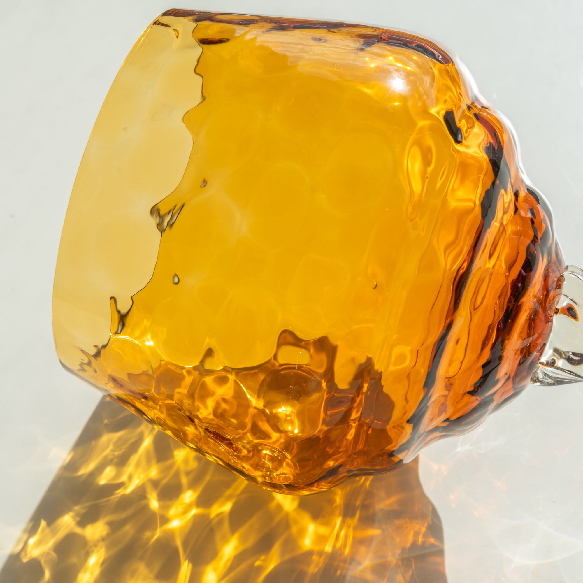 深いアンバーイエローの色味が美しく、編み物のようなガラスの凹凸が美しく影を落とします。