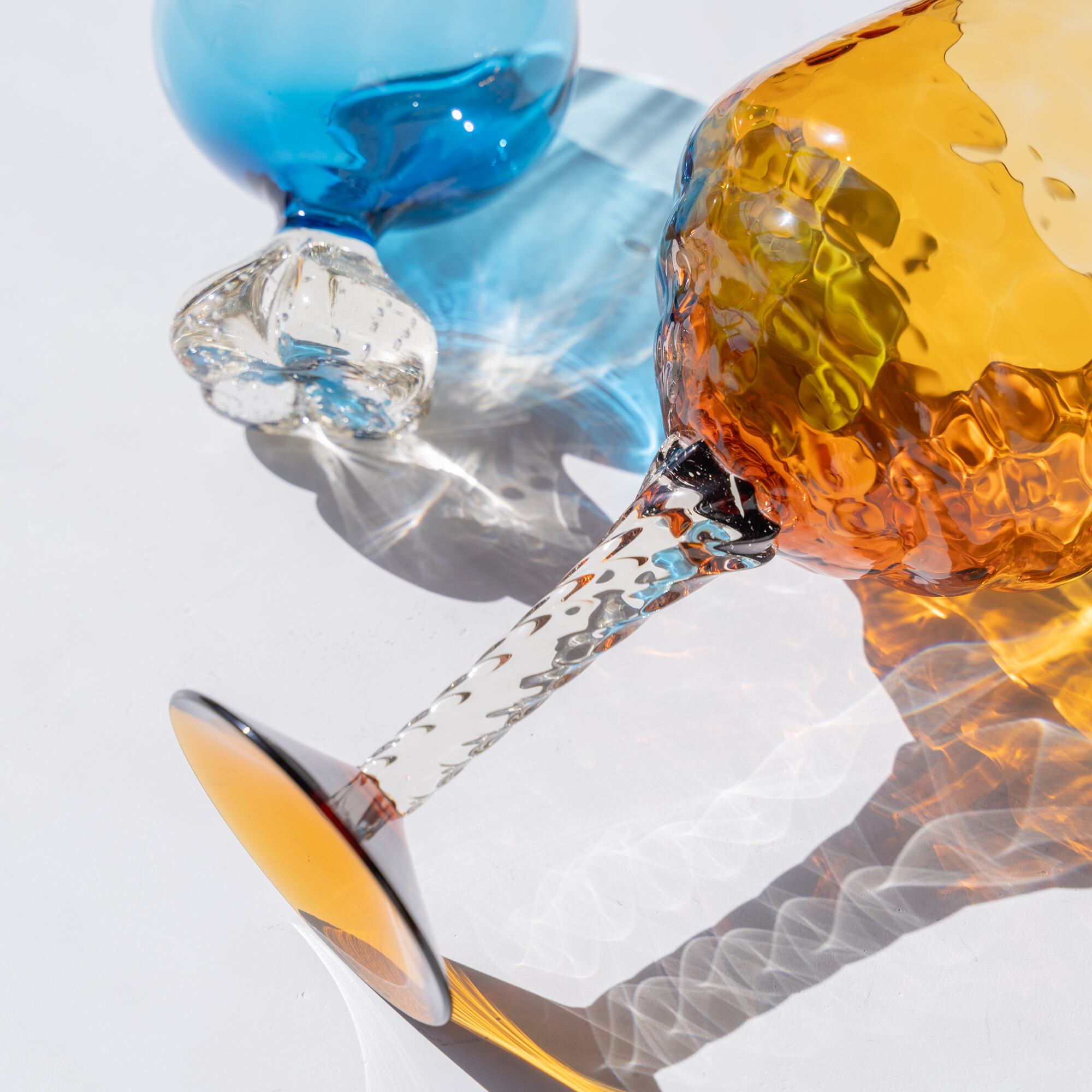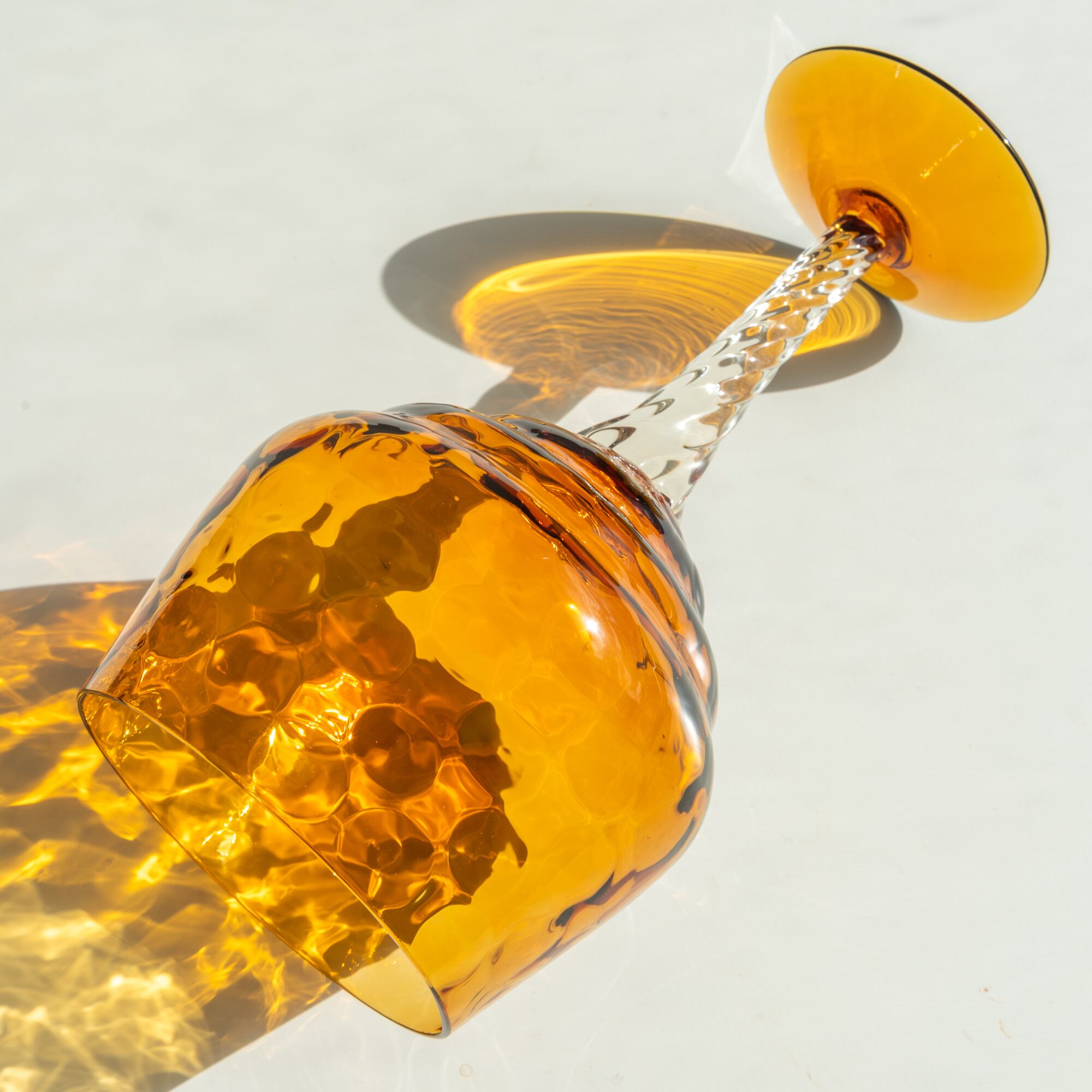 ステム部分のツイストしたガラス装飾は光をあつめて、きらきらと煌めきます。