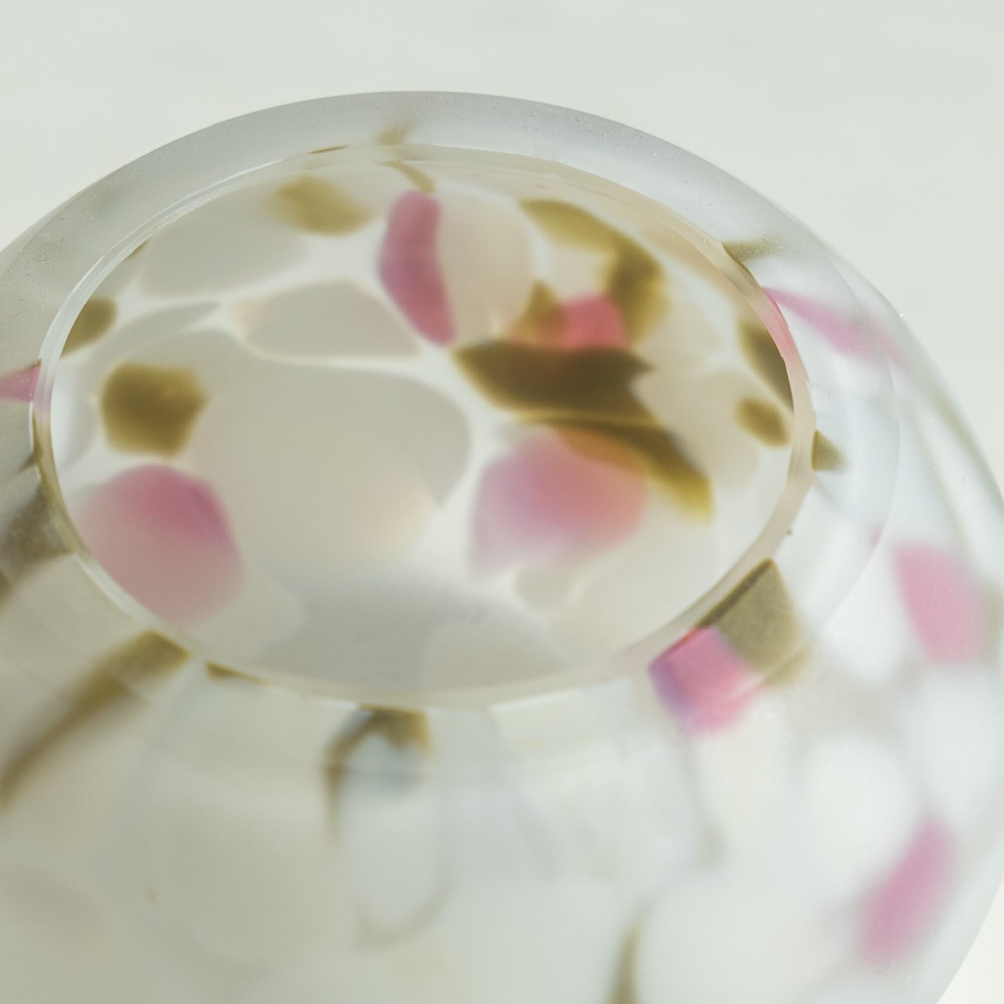 桜色・ピスタチオグリーン・ホワイトのパステル調のカラーリングで、マットな質感のガラスアートです。