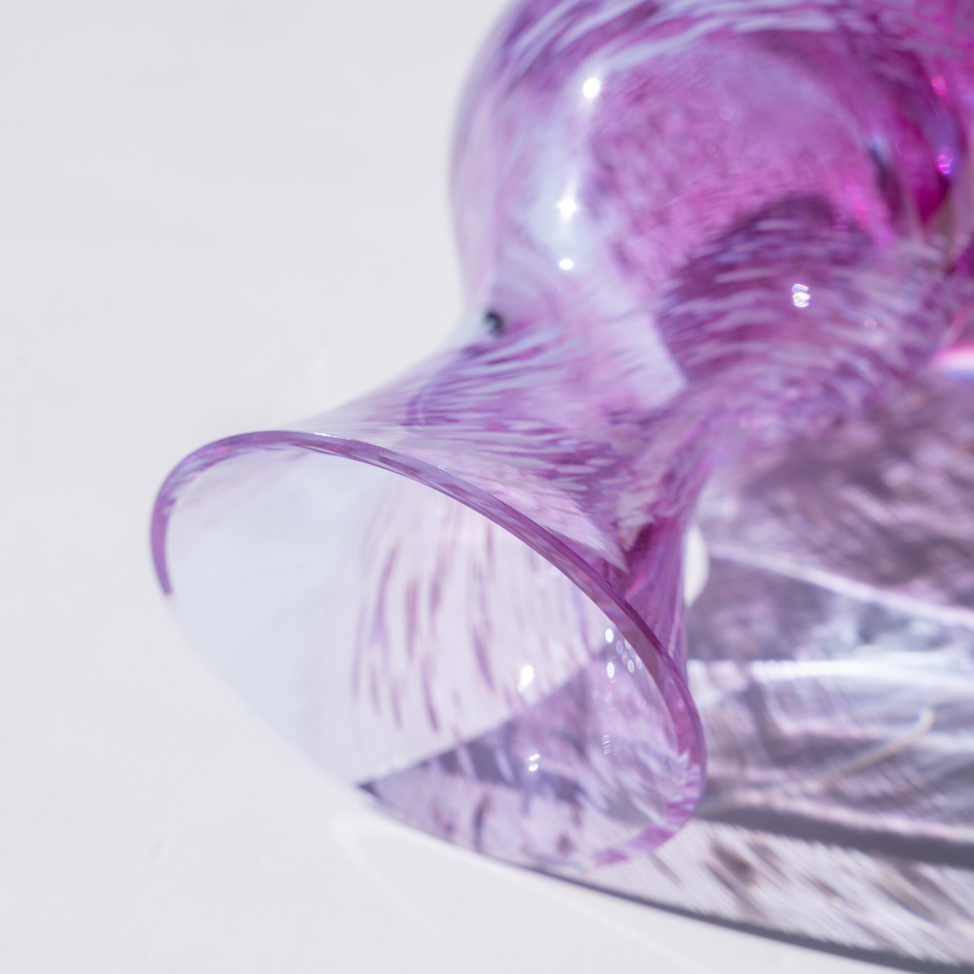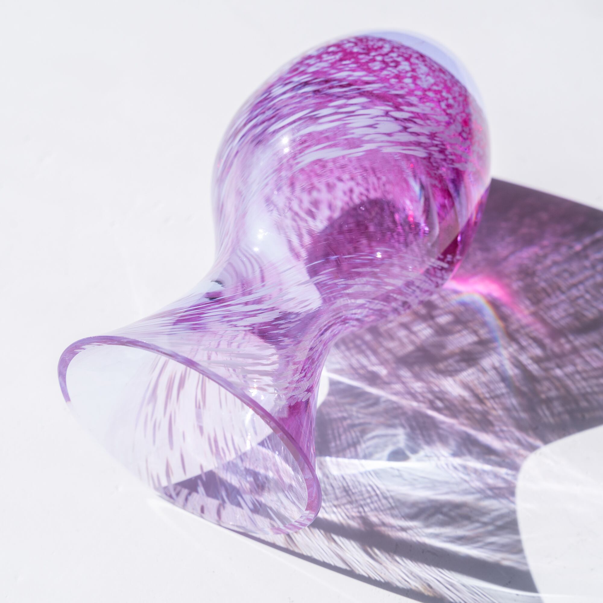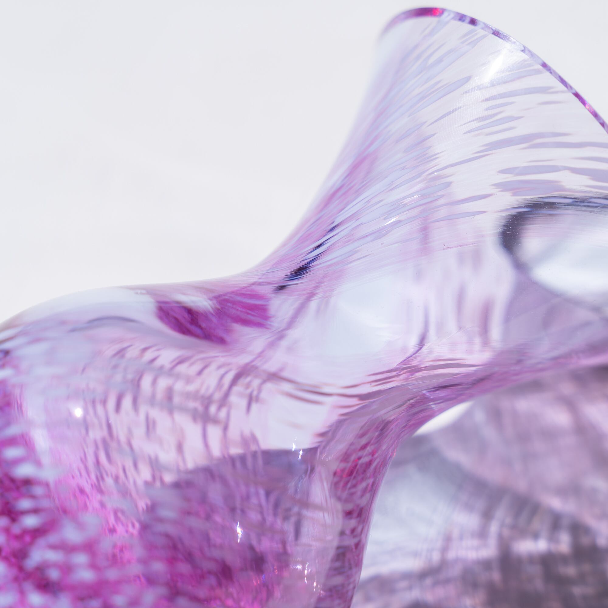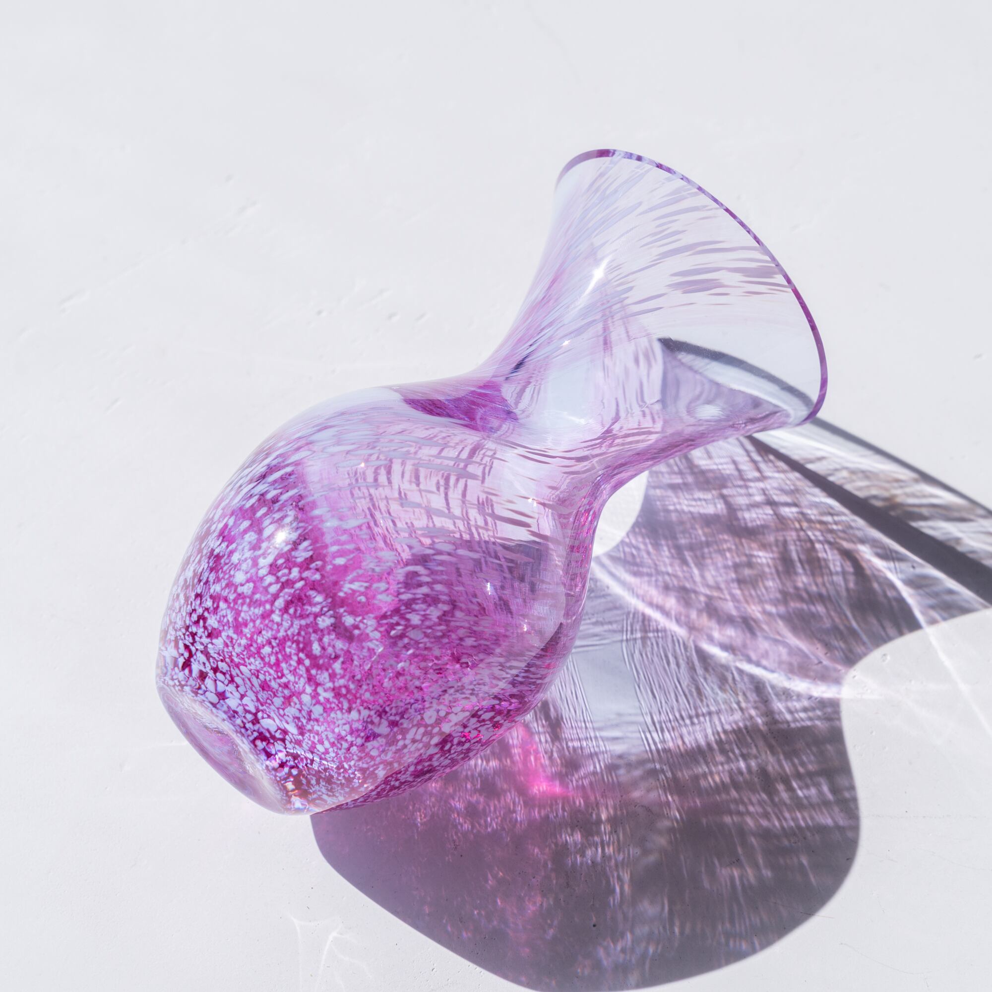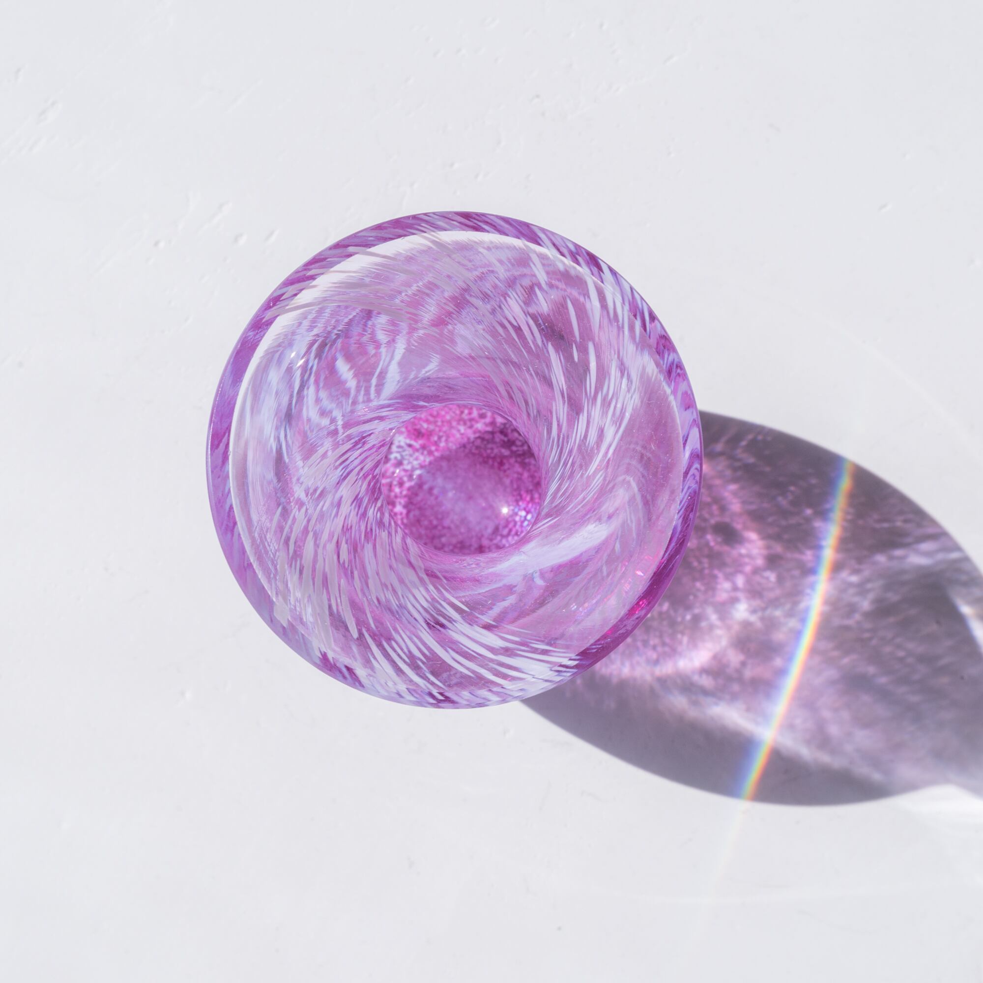 クリアなピンクのガラスに霜がおりたようなマーブル模様が美しい、ドリーミーなデザイン。