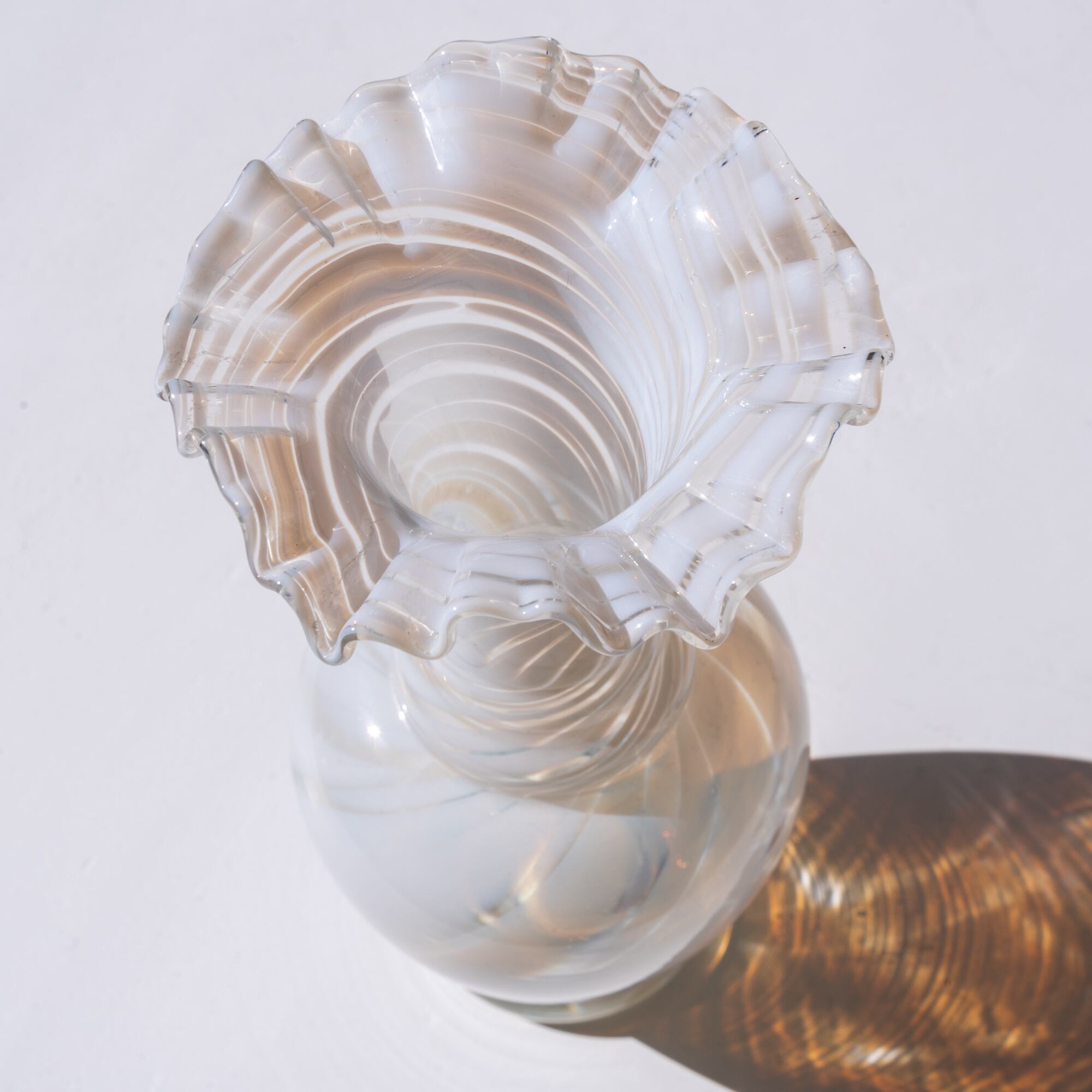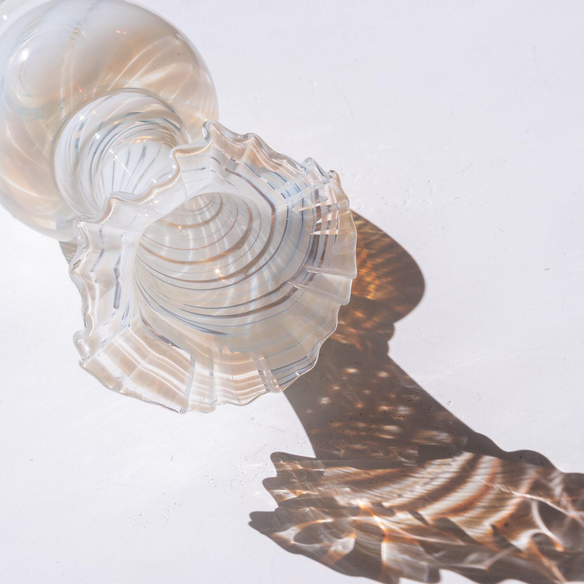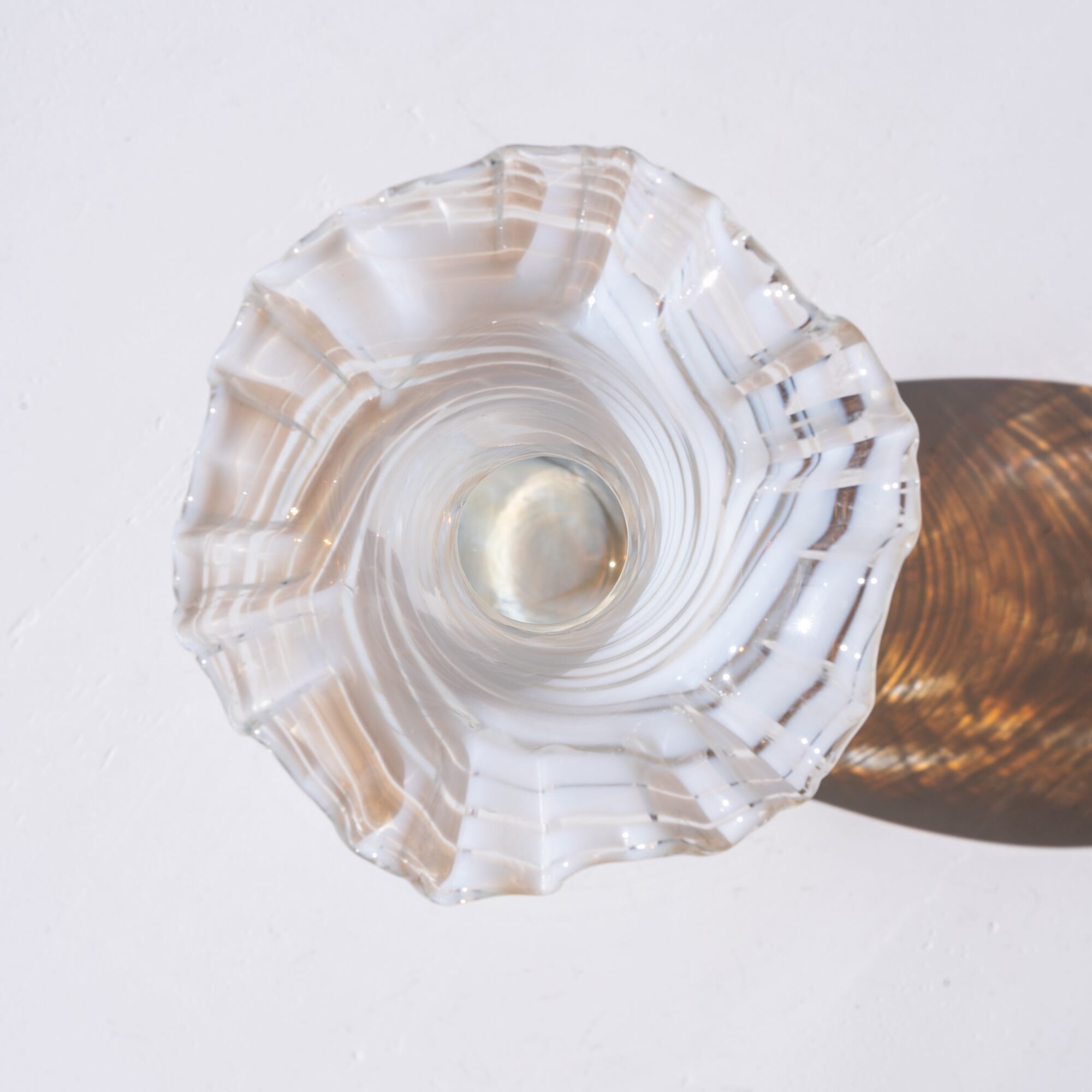 クリアなガラスに、ホワイトのマーブル模様が広がる美しいデザイン。